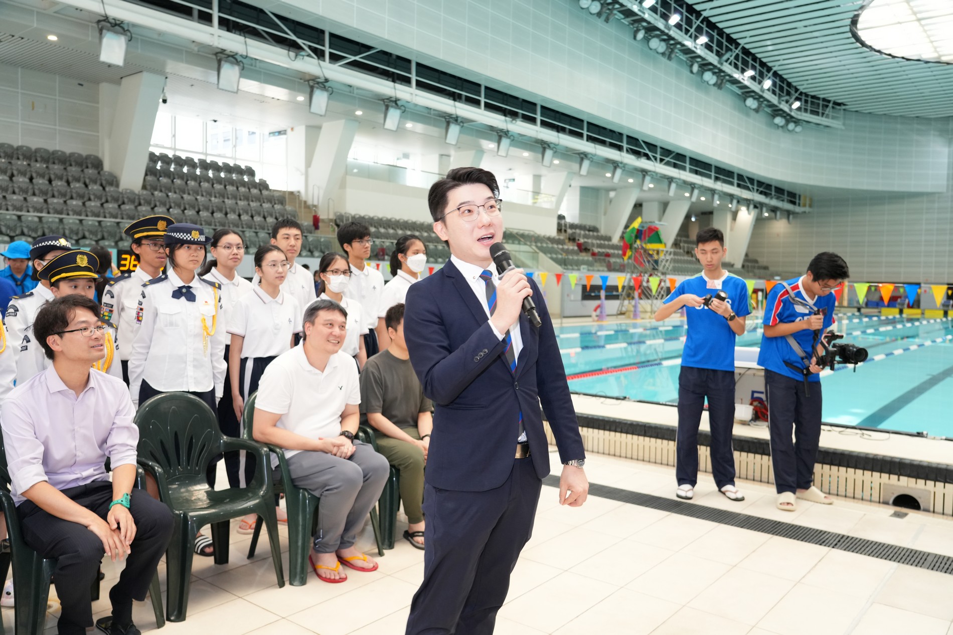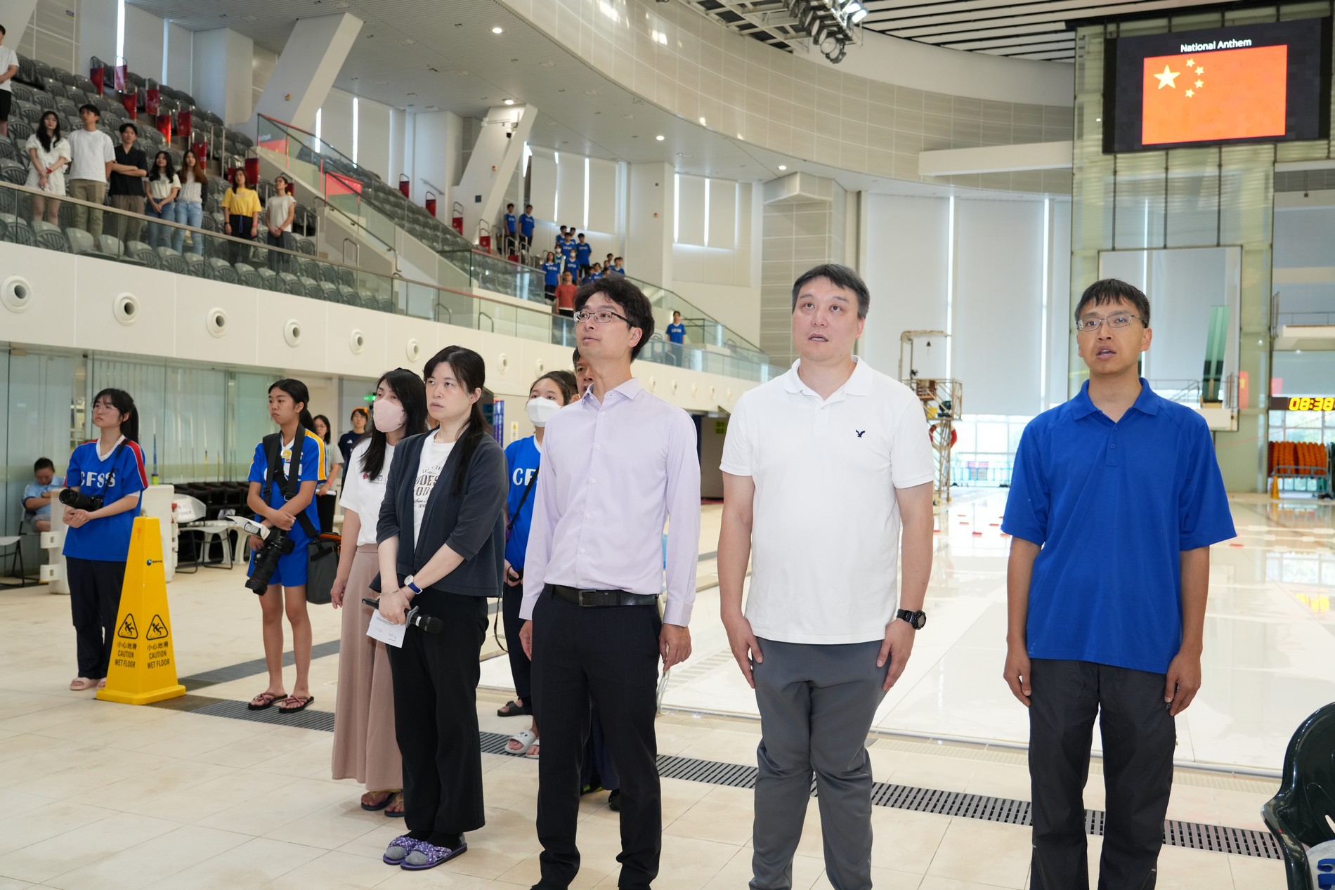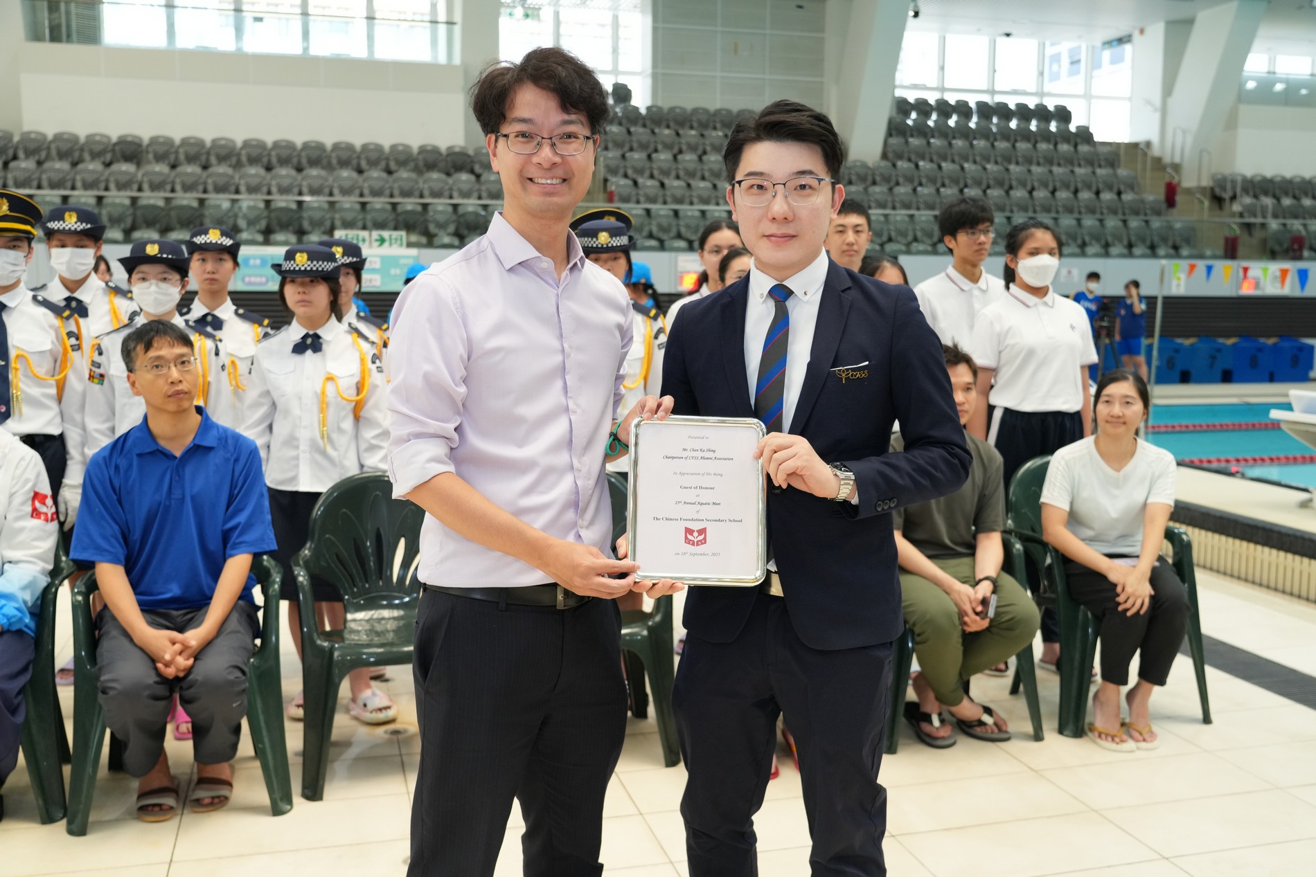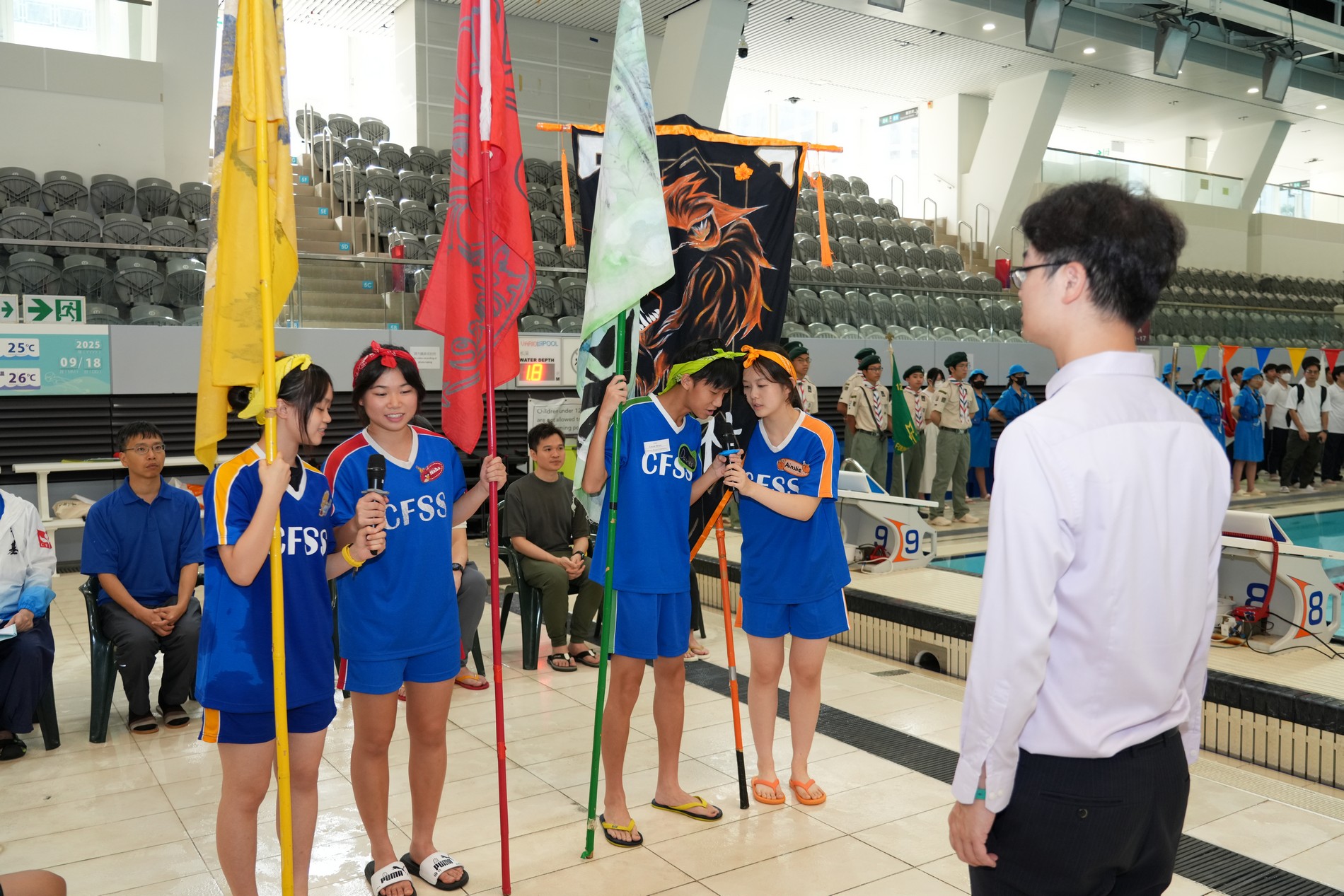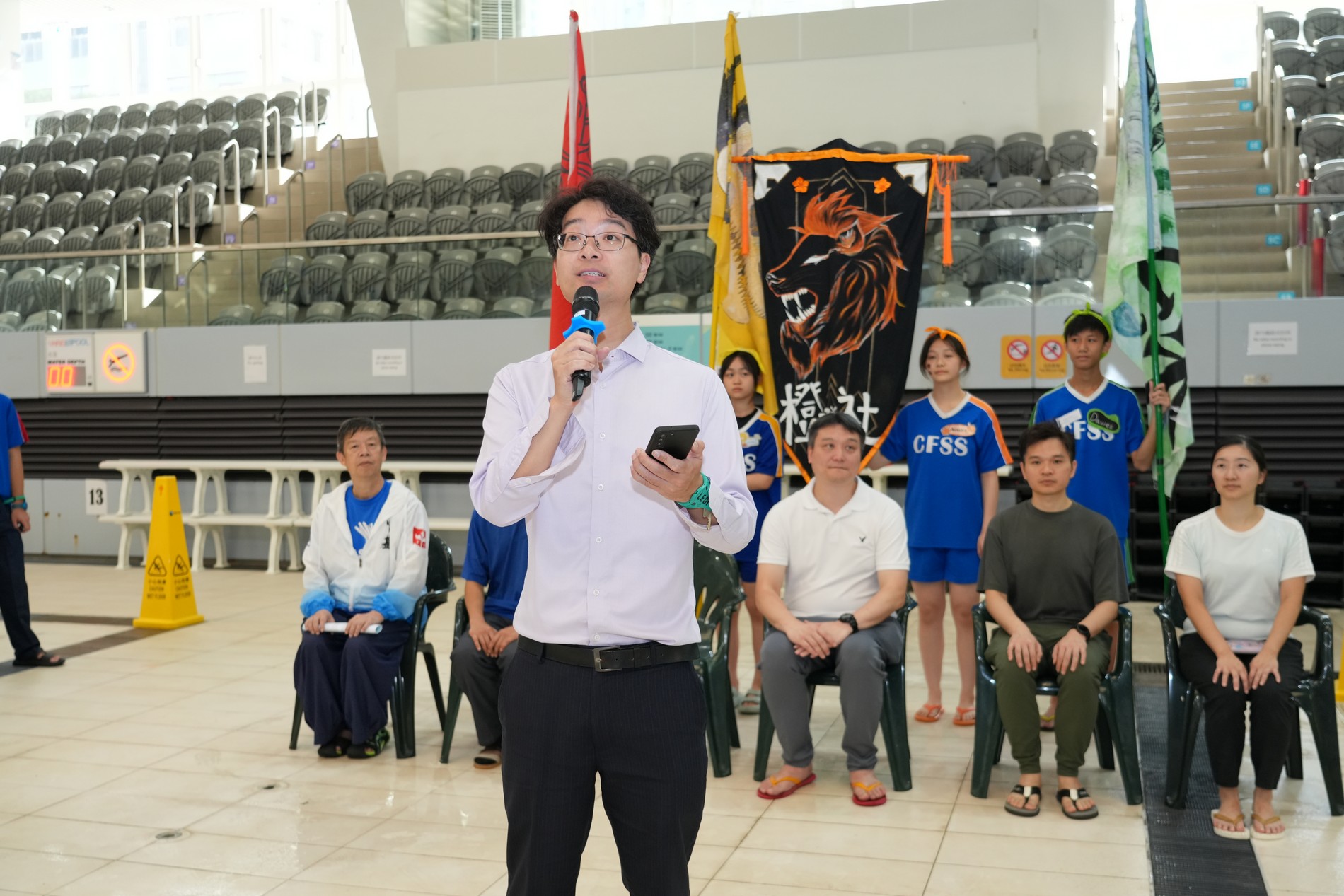 Subsequently, Principal Mr. Ho Tik Shun and Dr. Chan, together with the four House Captains, presided over the prize presentation, awarding winners of individual events and the overall champion house. The 25th Annual Aquatic Meet concluded on a solemn yet joyous note with the entire assembly singing the school song led by the Principal, the Guest of Honour, and the House Captains.