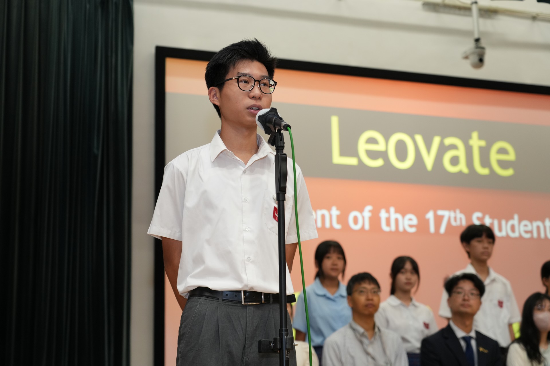 The 17th Student Council Election of The Chinese Foundation Secondary School was successfully held on September 29th. This year, three cabinets participated in the election, with LEOVATE emerging as the winning team. The inauguration ceremony took place on October 9th. Witnessed by the school principal, Chun To Cheng (5A) officially succeeded former president Kee Leo Cheuk Lai (6A) and was sworn in as the 17th Student Council President. He also delivered an inaugural speech outlining his visions and aspirations for the term. The ceremony concluded with a group photo of the newly elected cabinet and the principal.