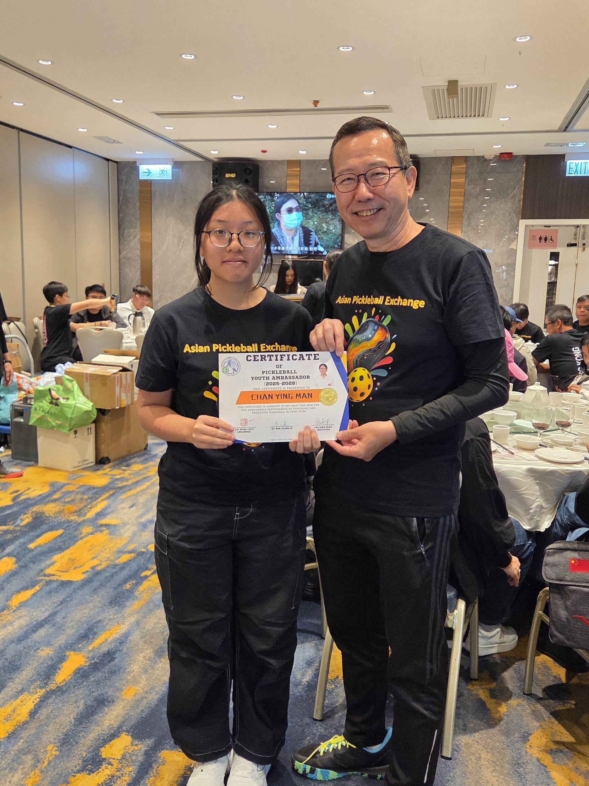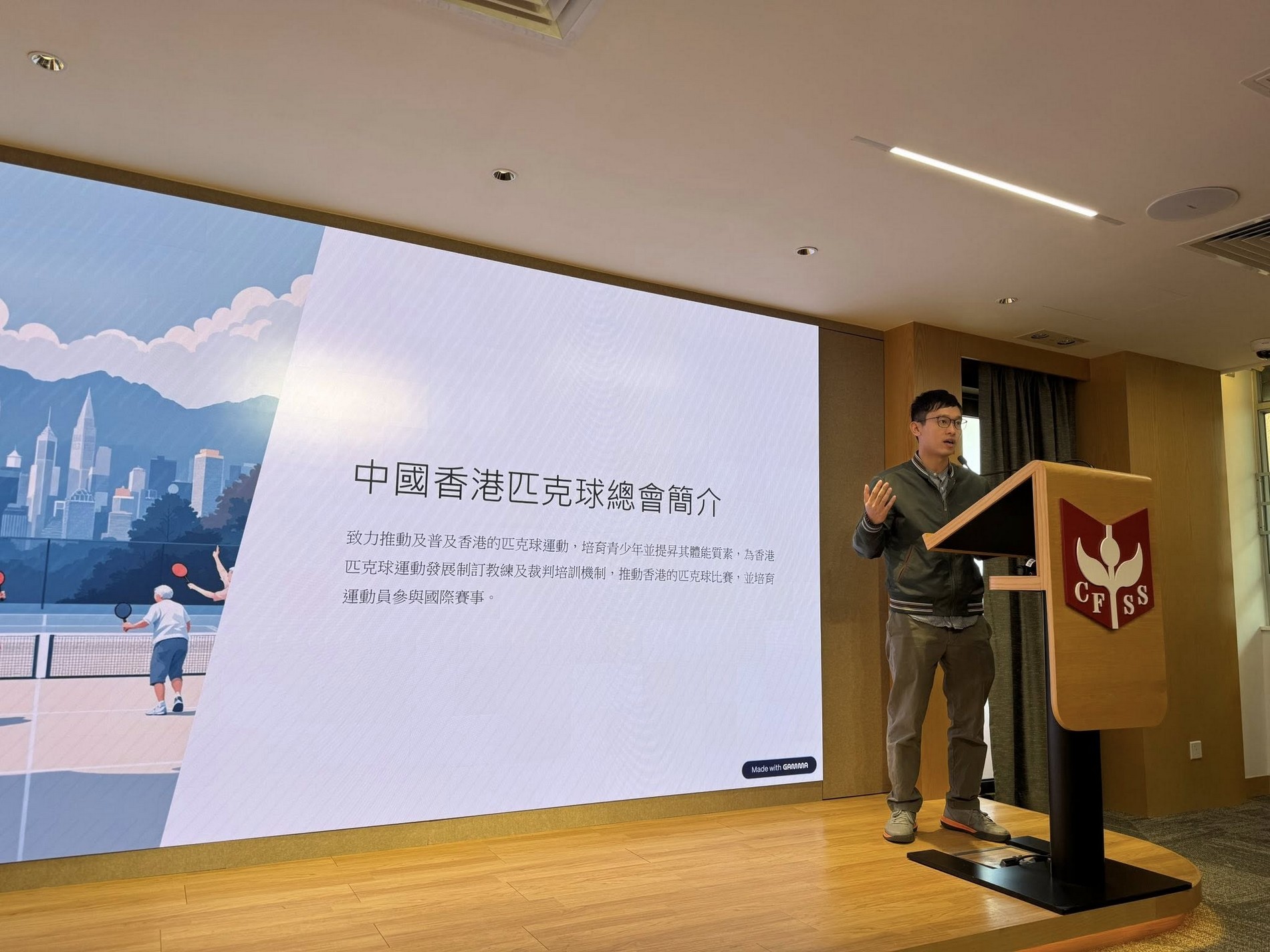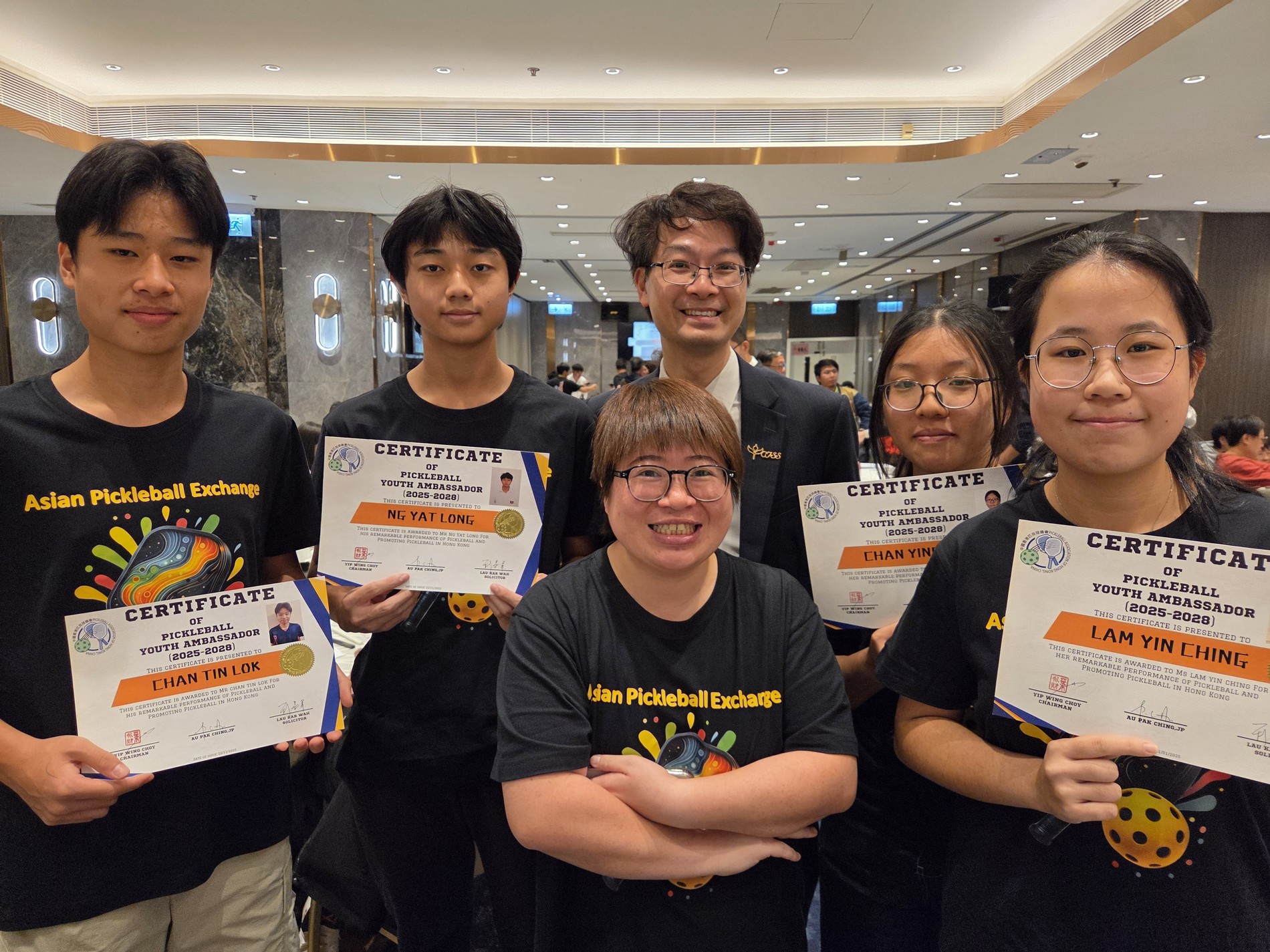 Our students Lam Yin Ching (S.6C), Chan Ying Man (S.5E), Chan Tin Lok (S.4B), and Ng Yat Long (S.4D) were recognized as Pickleball Youth Ambassadors. Additionally, School Principal Ho Tik Shun and Assistant Principal Leung Yue Shan Jennifer were appointed as Senior Advisors for the Belt and Road Pickleball Promotion Programme.