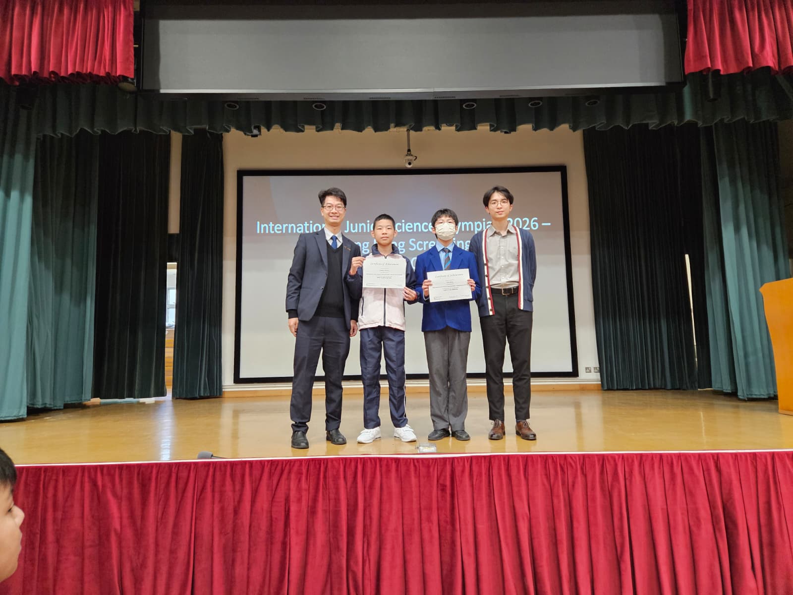 The International Junior Science Olympiad (IJSO) 2026 Hong Kong Screening, jointly organized by the Education Bureau (EDB), the Hong Kong Academy for Gifted Education (HKAGE), and the Hong Kong Association for Science and Mathematics Education (HKASME), aims to identify and nurture scientifically talented junior secondary students through advanced science training. S.3 Cheng Tianyou and S.2 Cao Zihao were awarded First and Third Class Honours, respectively. Additionally, Tianyou was invited to participate in a series of post-competition training sessions. Outstanding performance in these programs may earn students the opportunity to represent Hong Kong at the 23rd International Junior Science Olympiad in December 2026. The prize presentation ceremony was held on 19th November 2025.
