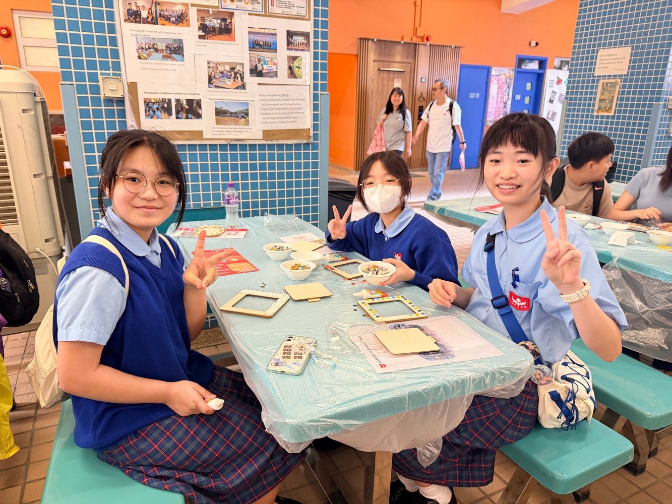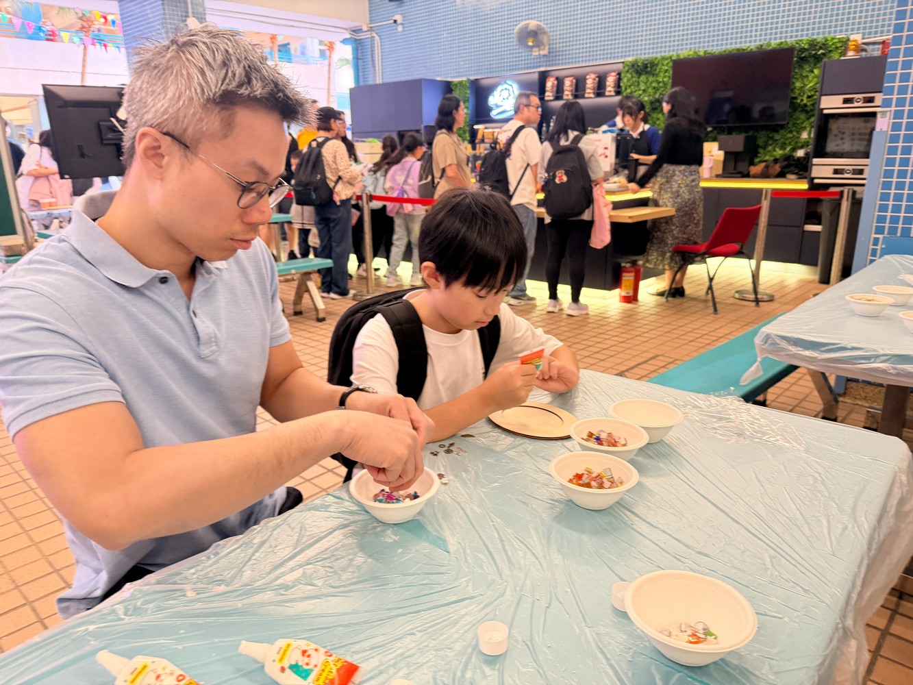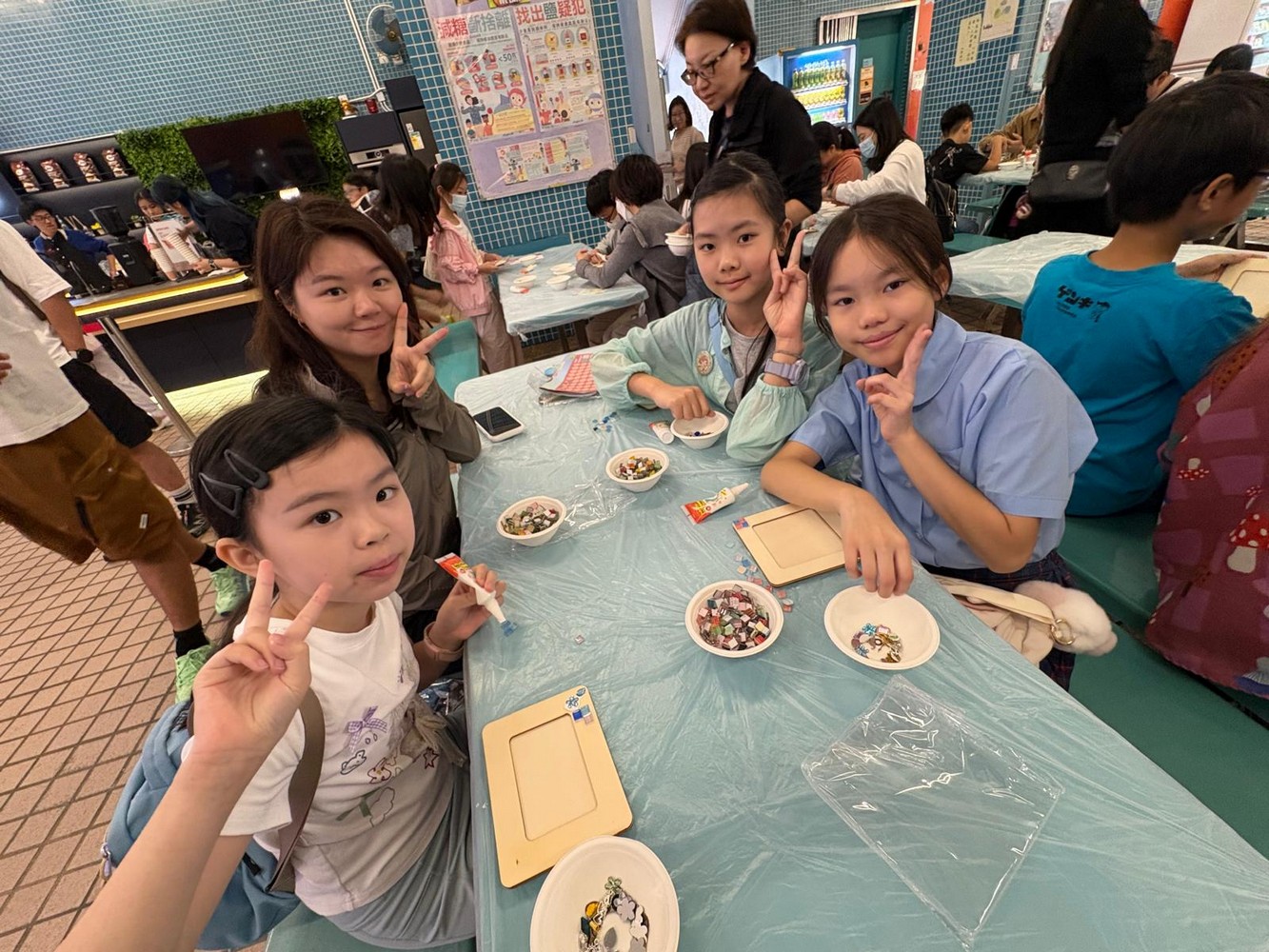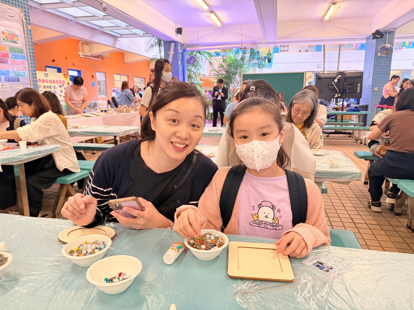 在現場佈置方面,我們首次以海報形式展示家教會的口號、工作坊成果及相關資訊,讓參加人士一目了然。工作坊活動深受學生和家長喜愛,許多訪校家長與孩子一起動手,運用色彩繽紛的馬賽克與各項飾品,包括機械齒輪,設計出獨一無二的相架。每位參與者創作的作品都別具風格,更有小朋友把相架視為畫框,不僅在相架邊緣貼上馬賽克,還以奶油膠在相框中央進行創作,打造出與眾不同的個人作品,別具創意。見到攤位如此受歡迎,我們既喜見成功,也心存感恩。