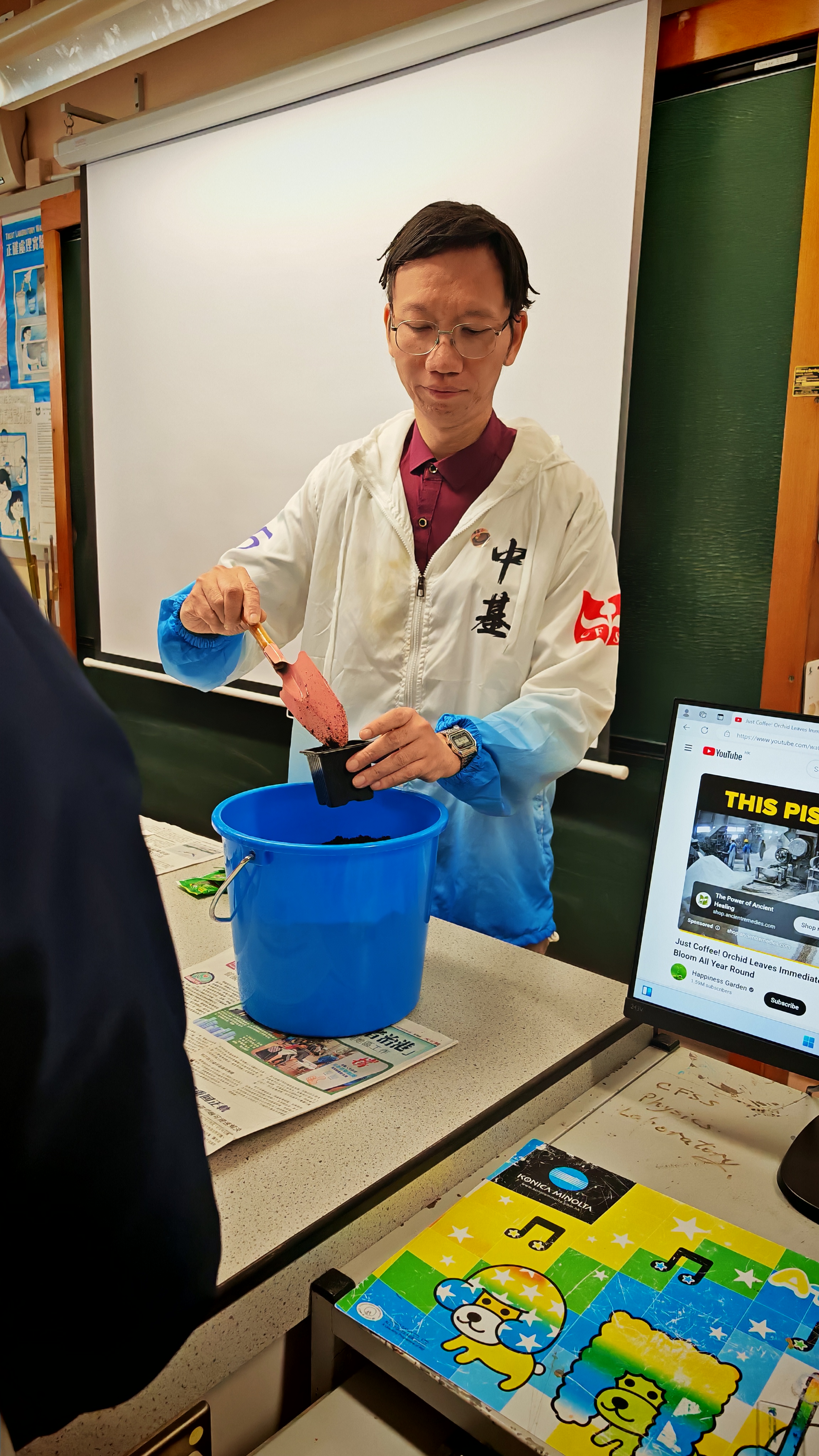家教會很榮幸再次邀請到唐敏中老師詳細講解養植過程中應該注意的要點。唐老師細心地先用短片和圖片詳細介紹《一串紅》生長習性及護理,再親自示範整個種栽過程,並細心提示同學回家之後的注意事項,令大家都能準確掌握種植技巧。