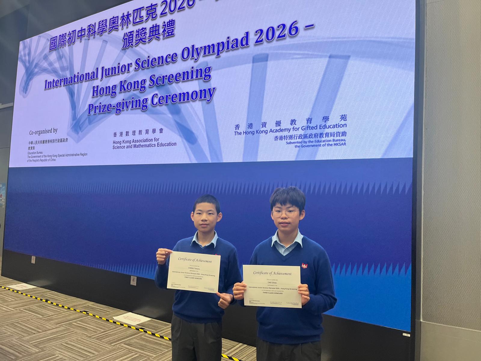 Students awarded First and Third Class Honours in The International Junior Science Olympiad (IJSO) 2026 Hong Kong Screening
