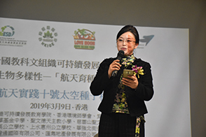 A Seed Planting Ceremony named "Education for Sustainable Development and Biodiversity: Space-Exposed Seed Nursery Programme" was launched by UNESCO(HK) in Ta Ku Ling Ling Ying Public School on 9 March 2019 (Sat). The seeds had been delivered into outer space by spacecraft Shijian-10. The Chinese Foundation Secondary School is one of the partner schools (Hong Kong Region) in this Nursery Programme. In the Ceremony, our S.5 students Wong Zee Meng, Tsin Sau Kiu, Chan Yuk Kie, Gabriella Bloom, Wu Hoi Man and Wong Hok Him shared their 4 years of experience on space seed nursery and intended deliverables of the project. They also showed how our school had been promoting biodiversity education and Sustainable Development through Popular Science, Citizen Science, Curriculum and Science Research. Our school representatives Assistant Principal Ho Tik Shun and two teachers, Ms. Leung Yue Shan Jennifer and Mr. Chung Cheuk Hung Vincent, received a new batch of space seeds from UNESCO(HK) Ms. Zhang Xin and The Aerospace Science Education Alliance Mr. Yu Yun in the Ceremony. Our green gurus had also worked out a plan for the next round of space seed nursery activities to be launched on campus in the coming future.