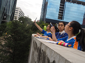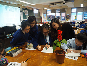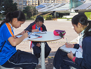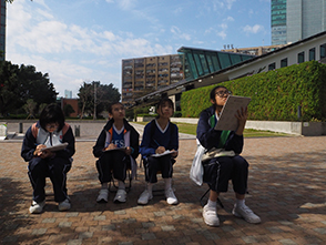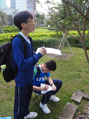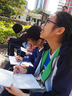 An interdisciplinary field trip to Zero Carbon Building (ZCB) was organized on 16 February 2019 in collaboration with Biology, Visual Art, Geology and Information & Communication Technology Department. To let students well-equipped with related skills for the trip, a pre-trip workshop was launched on 15 February 2019 as well. On 16 February 2019, a total of more than 30 teachers & students bounded for Zero Carbon Building (ZCB) in Kowloon Bay. The field study took place in groups. Students utilized Apps to measure and analyze environmental parameters in the surrounding, including noise level, traffic flow, wind speed and building density, doing investigation on the topics of urban planning and development. A woodland cultivated with Hong Kong Native Plants at the periphery of ZCB was good for students to learn urban plant biodiversity through mobile learning. Students also made sketching on the native plants on their own. The field study was led by senior pioneers, supervised by teachers, so that their younger schoolmates collected data and analyzed findings on-site in groups.