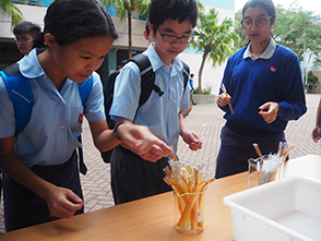 Green Gurus of our school launched the “No Straw Movement” Signature Campaign on 25 Oct 2018 (Thu) on campus to raise students’ and teachers’ awareness of environmental conservation by stopping using plastic straws. In the signature campaign, up to 600 students and teachers promised to support “No Straw Movement” by giving signatures, joining hands to reduce waste at source. Green Gurus advocated “No Straw Movement” once again on 20 Nov 2018. Besides encouraging schoolmates to support “No Plastics”, glass straws were presented to students in recognition of their support in the campaign.