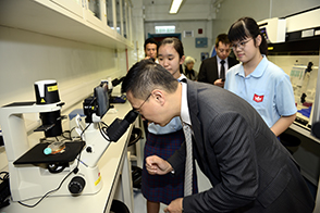 Mr. Kevin Yeung Yun Hung, JP, Secretary for Education, visited CFSS on 13th November 2018. After a brief introduction to our school’s major developments in STREAM Education, Education for Sustainable Development and Cultural Enhancement, Mr. Yeung toured around the school campus for a close contact with our advanced hardware such as scanning electron microscope and inverted microscope. He offered high praise for our effort in facilitating students’ self-directed learning with ample resources. The visit was warmly concluded with Mr. Yeung’s talk to our students. Of different levels and with different duties, students were encouraged to strive for their goals in all their endeavors for the sake of the society in the future.