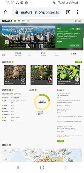 The City Nature Challenge (CNC) 2020 is a global 4-day-long activity that citizens can log the most species in to gather more data on urban and rural biodiversity in their communities in the period of 24 Apr (Fri) to 27 Apr (Mon). Due to the new coronavirus pandemic, CNC is no longer a competition but a citizen science learning activity this year so that everyone can contribute to global biodiversity surveying of their household districts. Our school participated in the event and promoted citizen science by locating species in Chai Wan and Siu Sai Wan districts to facilitate global species data collection.