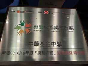 Our school has joined the Hi-Five Student Engagement Award Scheme 2018/19 which is organized by Baptist Oi Kwan Social Service and co-organized by Education Bureau and The Education University of Hong Kong. Out of the 44 participating schools, CFSS stands out to be awarded with Hi-Five Student Engagement Award Scheme Intellectual Engagement Special Award, in recognition of her great efforts to boost students’ learning incentives, inspiring students as active learners through curriculum design and planning. We would like to express our heartfelt thanks to Counselling Team and Academic Committee for leading our school throughout. Principal Ho Tik Shun received the award plaque on behalf of the school in the award presentation ceremony. We would continue to strive for excellence in providing youngsters with student-centred quality education.