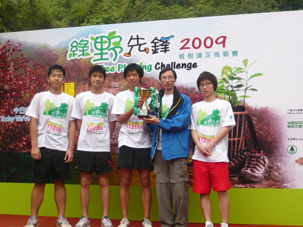 Tree Planting Challenge 2009, organized by Friends of Earth, is a unique environmental activity that combines tree-planting, hiking and a challenge of self-endurance. We are pleased that our students (Kwan Long Ki, Lau Wai Kan, Li Wing On and Tse On Ho of 4D) participated in this meaningful event and get the 1st runner-up in the Youth Team.