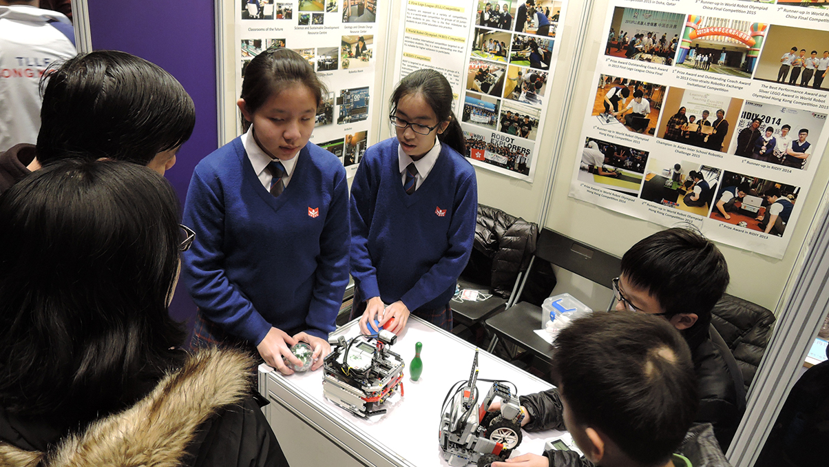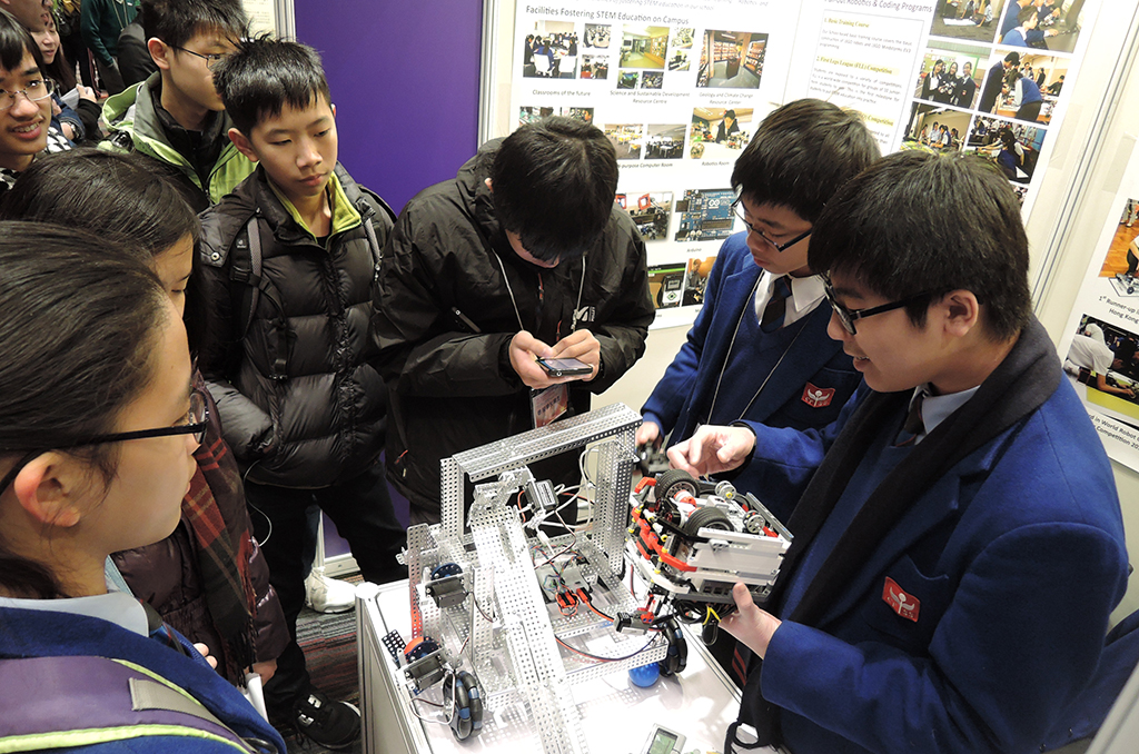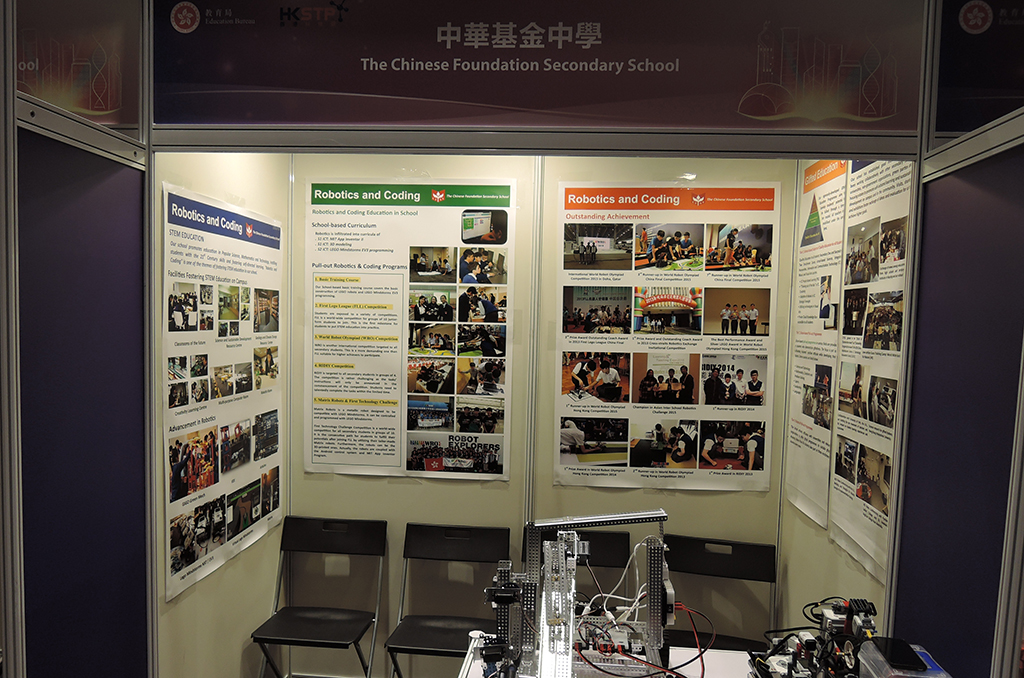 The event is jointly organised by the Education Bureau and the Hong Kong Science & Technology Parks Corporation. It aims to showcase and celebrate a wide range of student achievements on Science, Technology, Engineering and Mathematics (STEM) related areas. Our school is one of the 80 participating primary and secondary schools, together with more than 10 tertiary institutes and organizations, displaying their exhibits to promote STEM education through workshops and seminars at the HK Science Park Convention Center 3. We have displayed VEX robots and MATRIX robots driven by apps written by our students, demonstrating how our School fosters Popular Science Education and Self-directed Learning. Many past and current students visited the venue to support. With heartfelt effort from students, our School has fortunately received the Outstanding Booth Presentation Award.