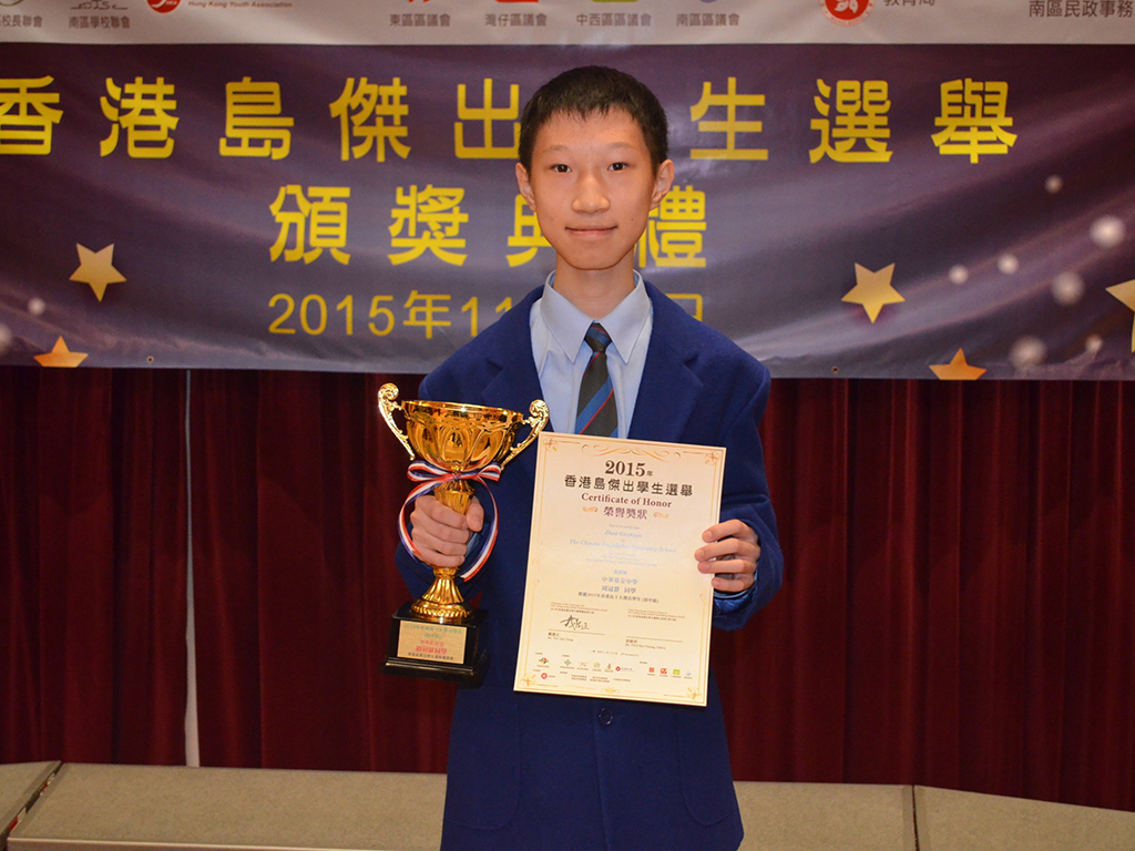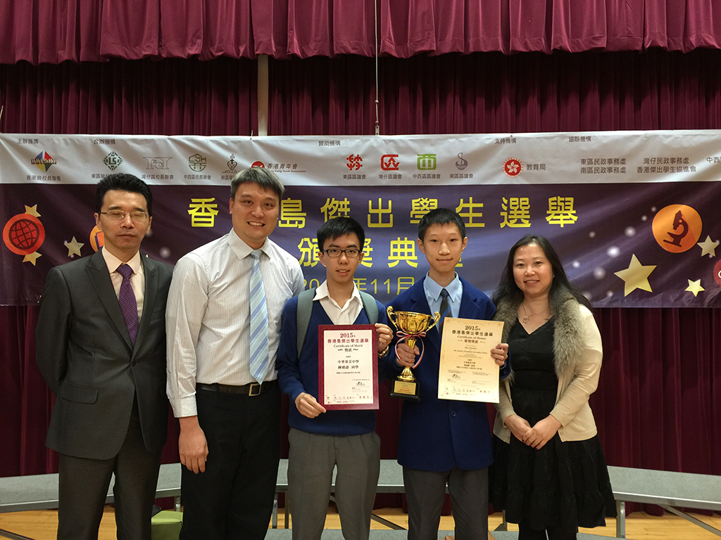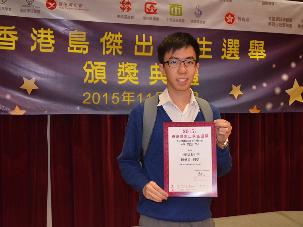 Hong Kong Island Outstanding Student Award aims to give recognition and appreciation to those secondary school students who are responsible and make outstanding contribution to the school and the community. After several rounds of interview, our junior student, Zhou Guanqun, and senior student Chan Nai To are received the Hong Kong Island Outstanding Student Award (Junior Form) and Commendable Student Award (Senior Form) respectively on 28 November 2015. They will participate in a study trip during summer. We hereby congratulate once again for their effort being recognized.