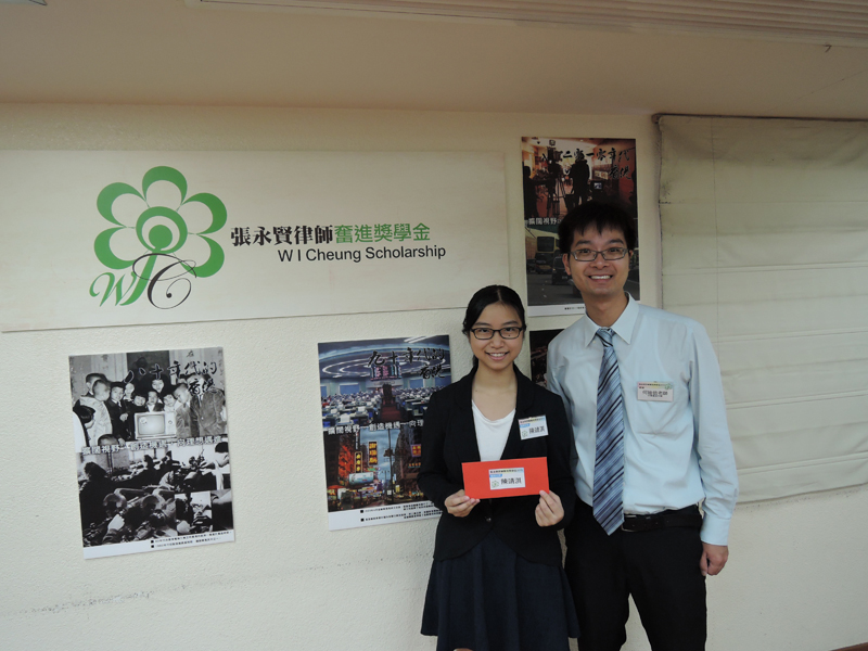 Chan Ching Ki Receiving W I Cheung Scholarship in Recognition of Her Excellent Performance in Social Service