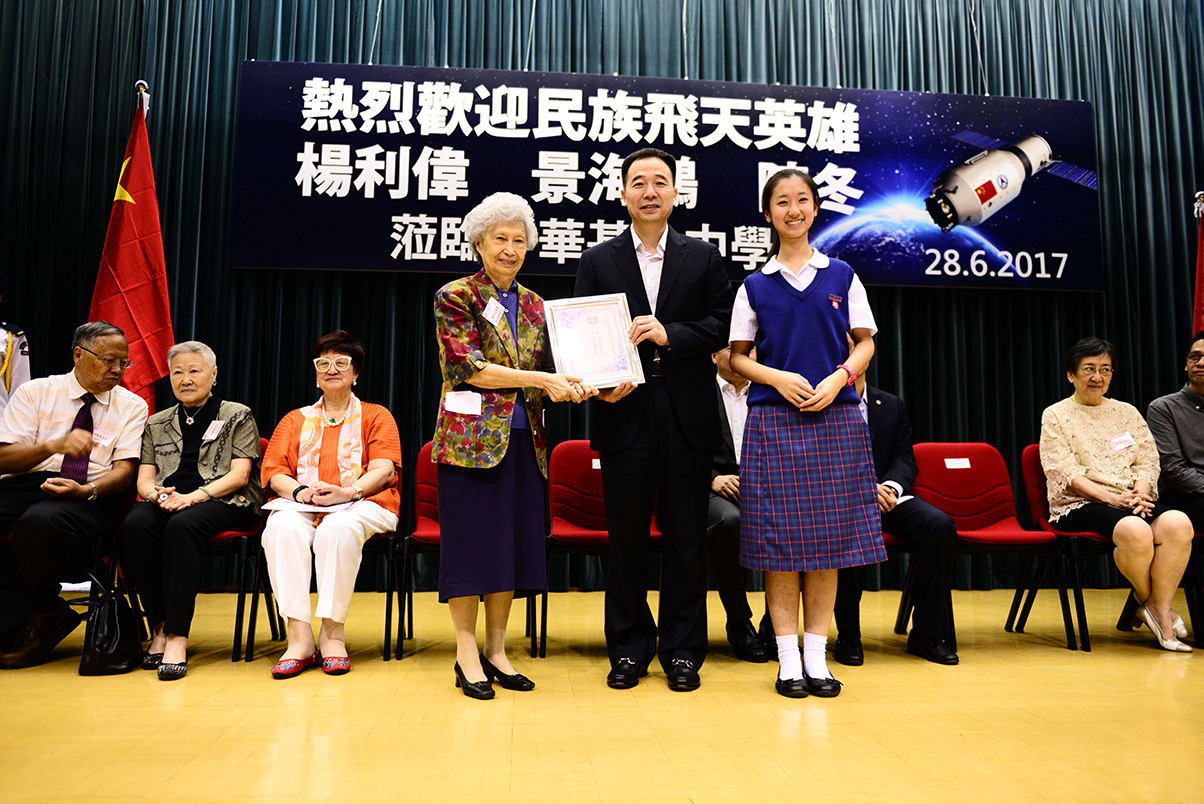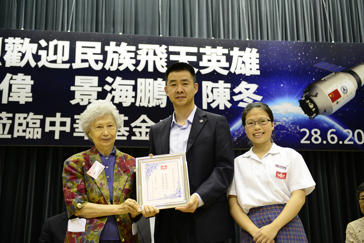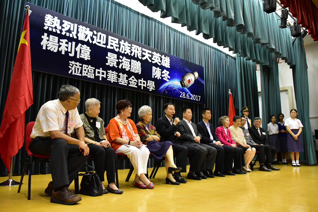On 28th June 2017, three Taikonauts – Dr. Yang Liwei, Mr. Jing Haipeng and Mr. Chen Dong visiting our school and sharing their experiences in aerospace to students from 27 different primary and secondary schools. They shared their experience working in the spacecraft and how to do their space experiments. Besides, a tree-planting ceremony is also held at the Environmental Trail Garden and our students introduces the space seed nursery garden to them after the ceremony.