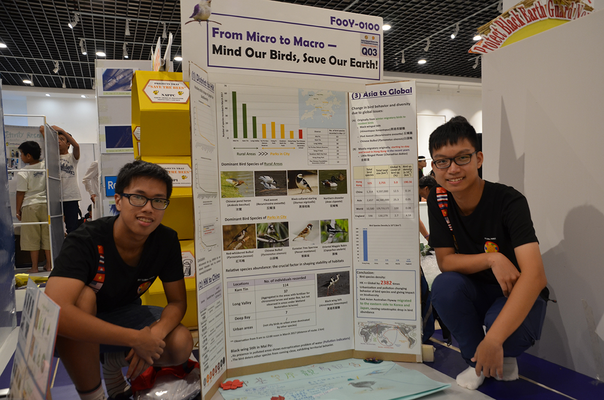 Two students, Law Chung Hin Henry (S.5C) and Chan Chun Ming (S.5C), with their investigation project titled “Mind Our Birds, Save Our Earth”, obtained the Silver Award and the Kenneth E. Behring Regional Award in the Global Natural History Day 2017 – Global Finals (Chongqing) in July 2017. Our school hereby congratulates the two students for their outstanding performance.