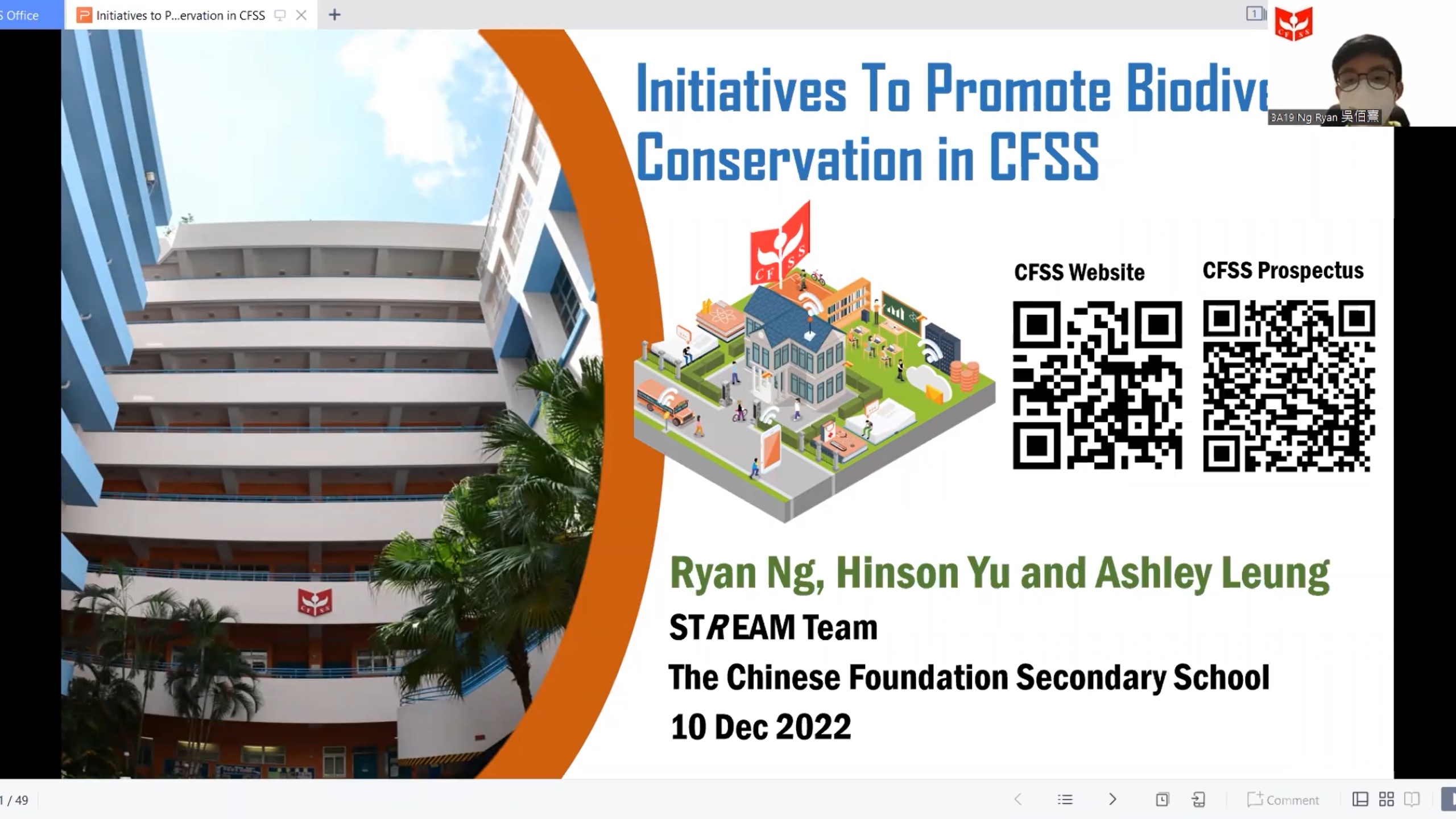 On 10th December 2022, 13 students took part in the online Youth Biodiversity Forum organized by The China Biodiversity Conservation and Green Development Foundation. The students presented the school-based approaches in biodiversity education and conservation from three main perspectives: