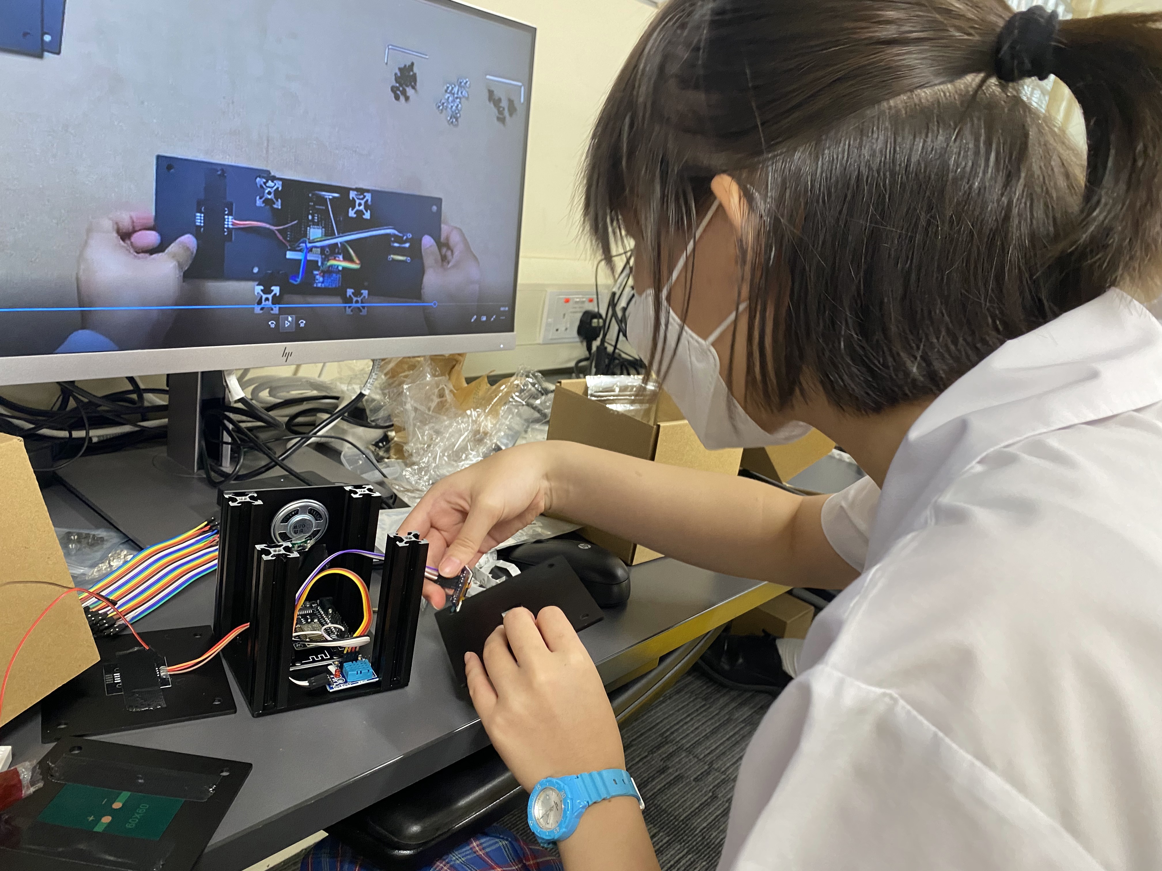 On November 12, some of our senior form students took part in the online aerospace course conducted by The Chinese Society of Astronautics. Students followed the steps introduced by the lecturers online to build the prototypes with use Arduino boards and sensor kits. The prototype is used to simulate the space environment fraught with automation. On top of acquiring knowledge of aerospace technology, the online course also gives students a preliminary experience of acquiring computer science and engineering at University levels.