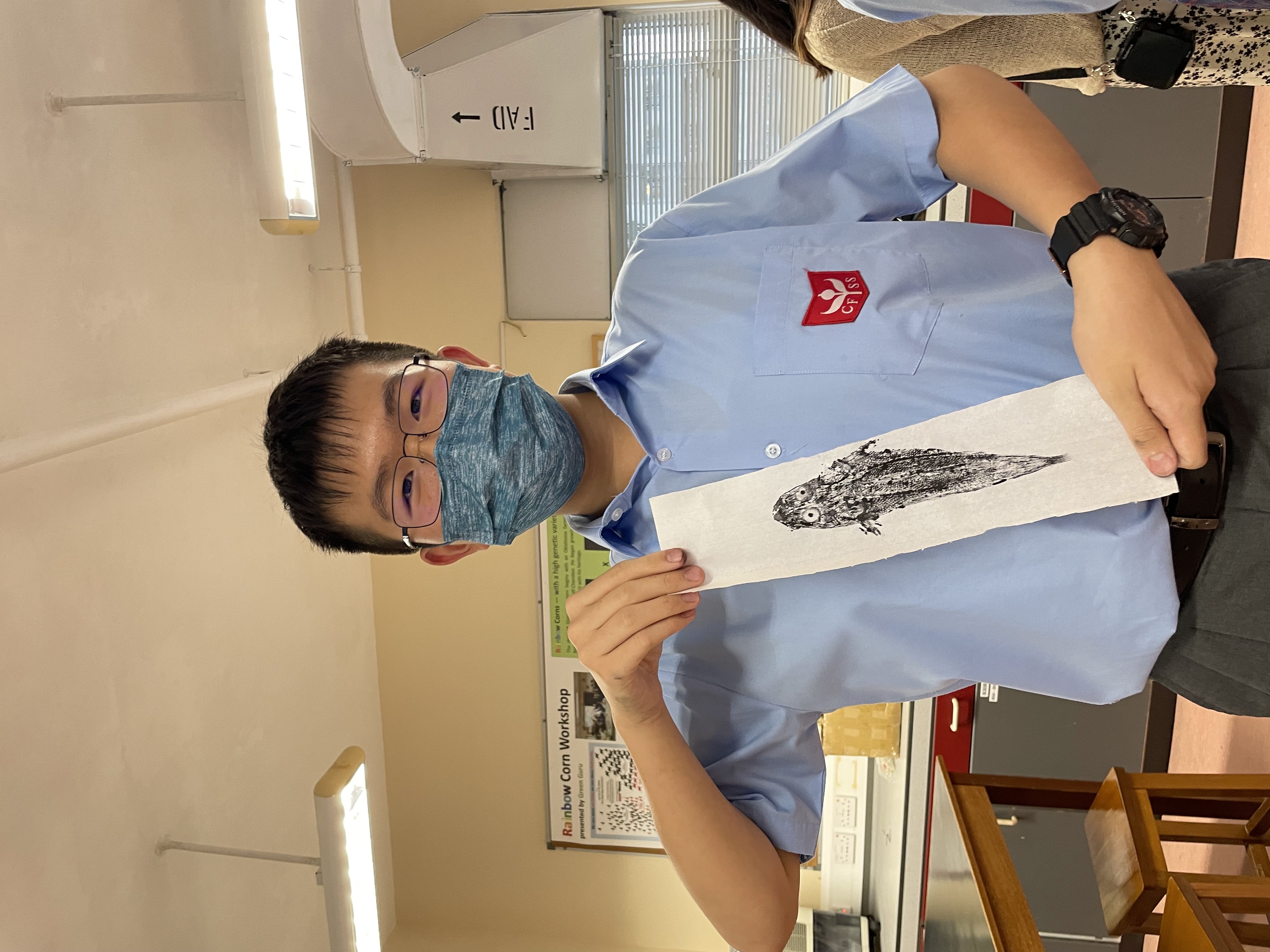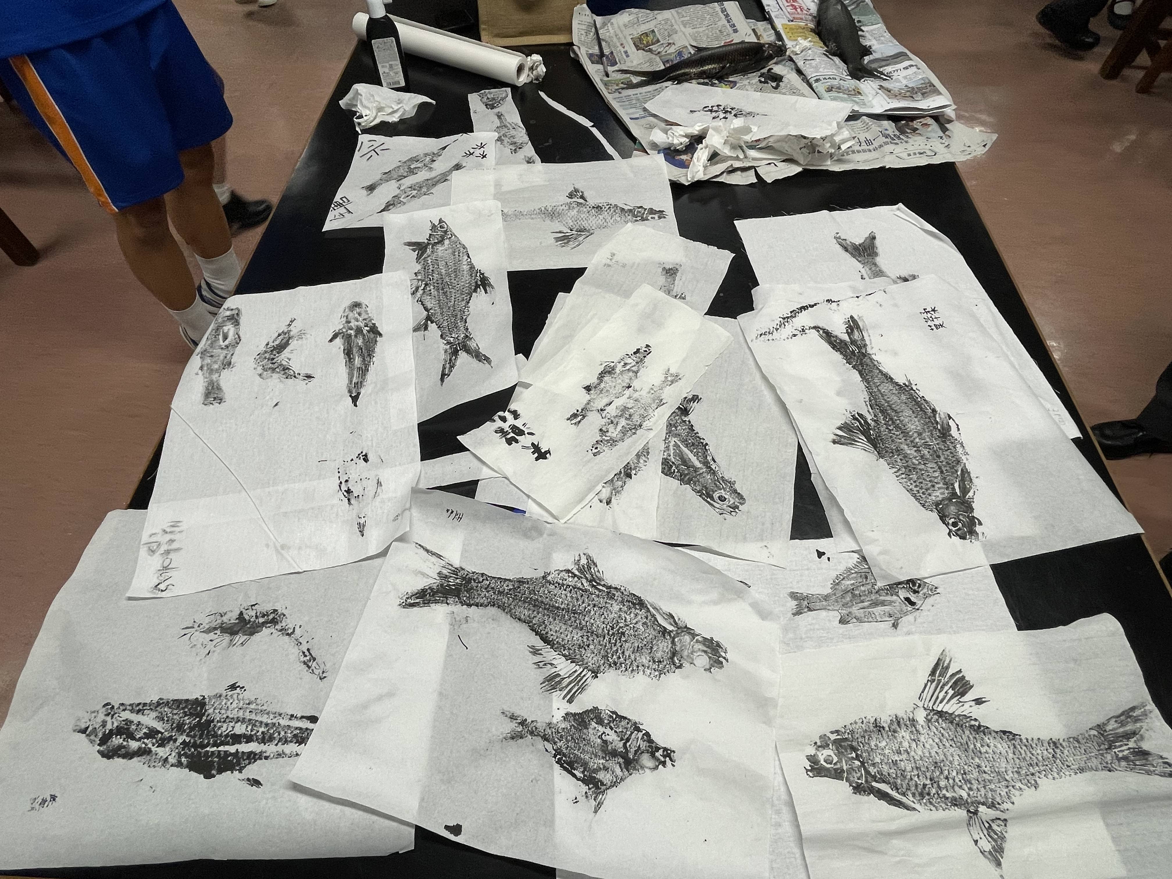 20 students had learnt the history and cultural value of the traditional art of Gyotaku. Through the workshop, students had learnt the importance of sustainable fishery and various fishing method. Several species of fishes were provided to demonstrate the diversity of fish morphology. Students had made their fish printing on cloth and xuan paper as a bring-home art piece.