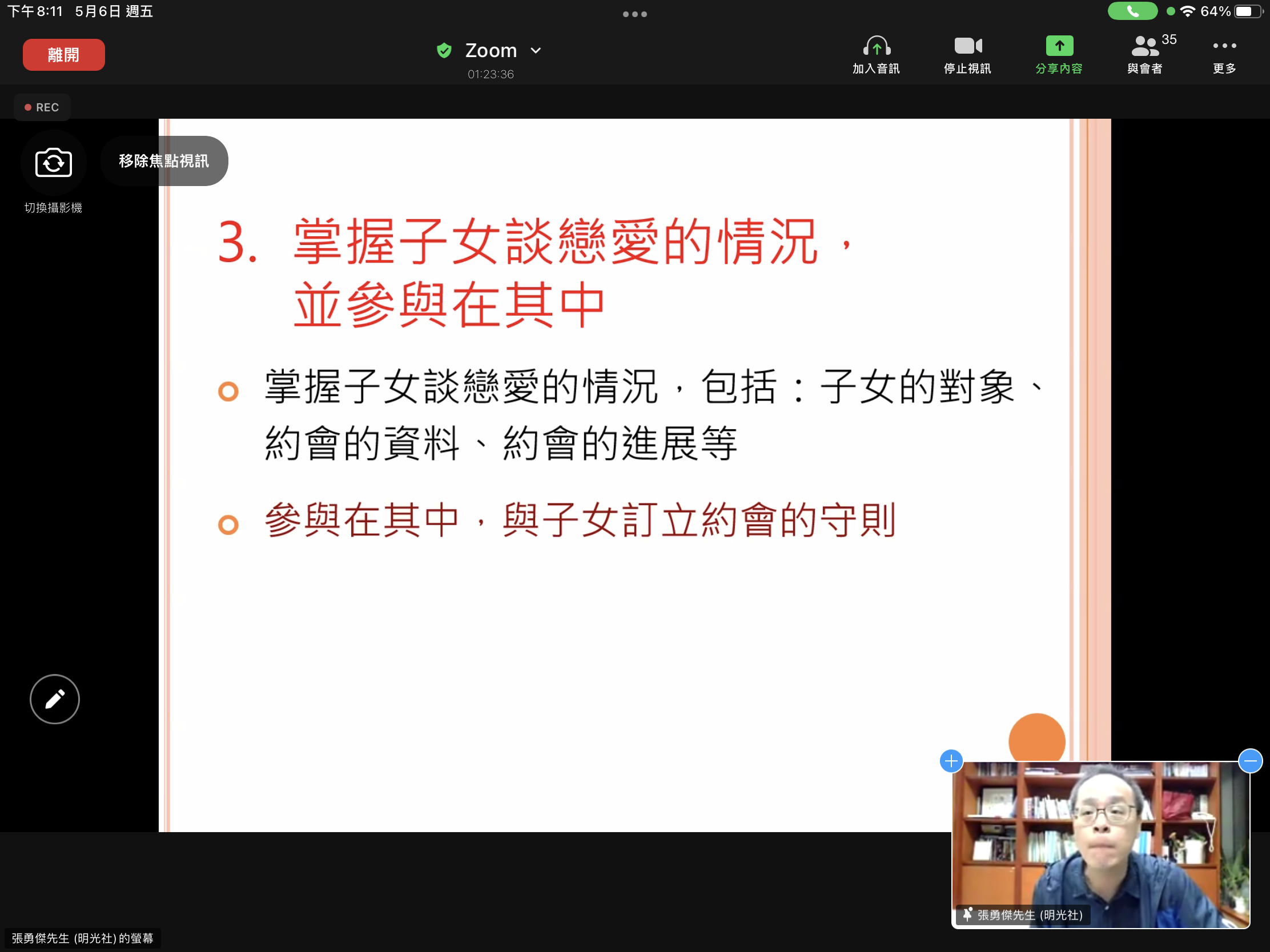 The Fourth Parents’ Talk with the theme “Parenting on Sex Education” was successfully conducted online via Zoom videotelephony platform on 6 May 2022 (Friday). Mr. Cheung Yung-kit, the social worker from Society for Truth and Light gave a practical and fascinating talk on Sex Education to the participating parents. Mr. Cheung first defined and elaborated on the terms, for instance, gender, relationship, sexuality, pornography, and Values Education. The positioning of Sex Education by the society, school and family can be very different. He then claimed that parents should instill proper values through sex education to their children rather than avoiding it. More than 30 parents joined the talk that night. Many parents showed their support by giving prompt responses in the interactions with the social worker. The face-to-face “SoulCollage Workshop” will be held at school in the morning of 25/6/2022 (Saturday). Parents who are interested in the workshop please fill in the Google Form (https://forms.gle/RmxqYHeHWj6Zm2sm7) with their parent’s school webmail account (p2020xxxx@cfss.edu.hk).
