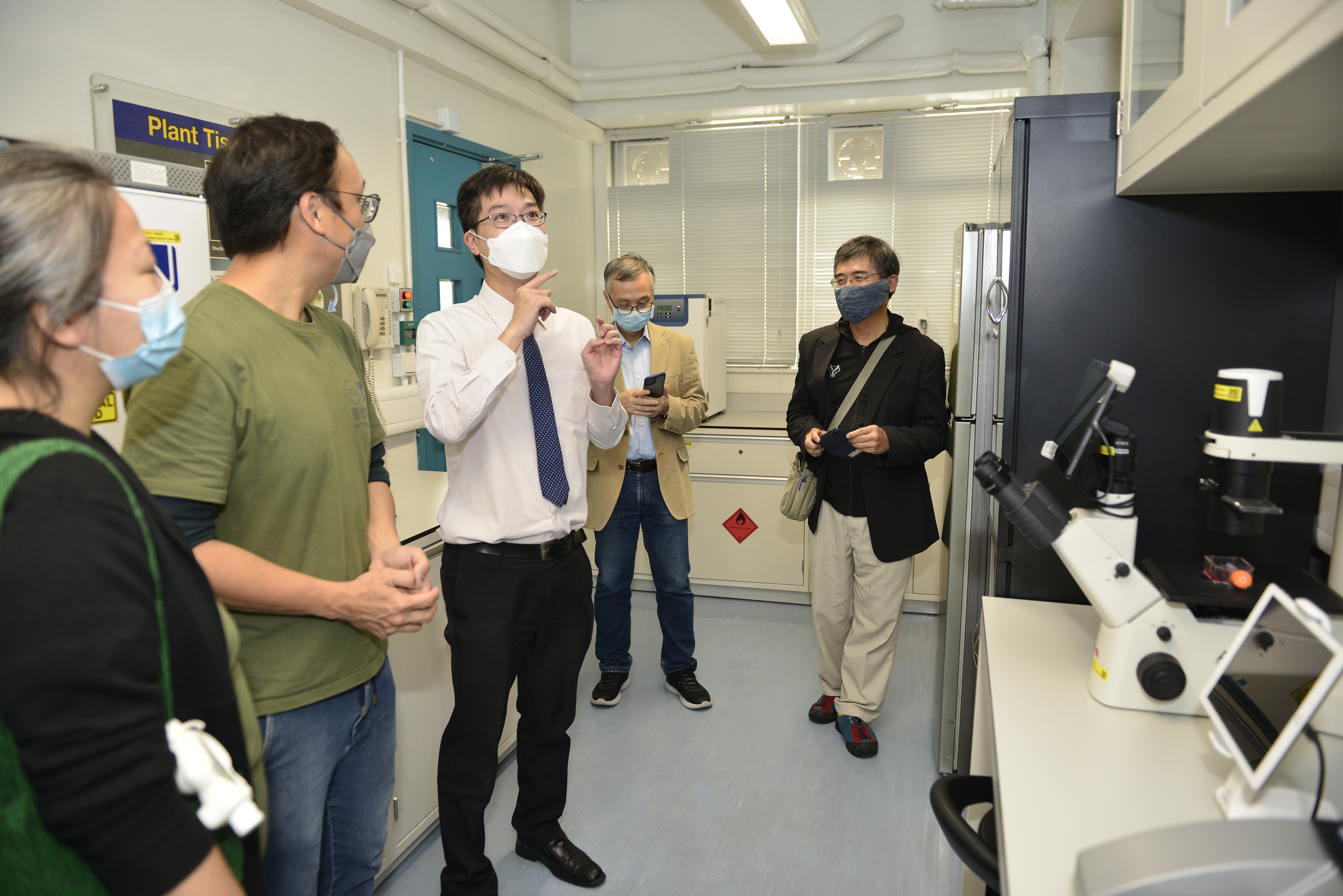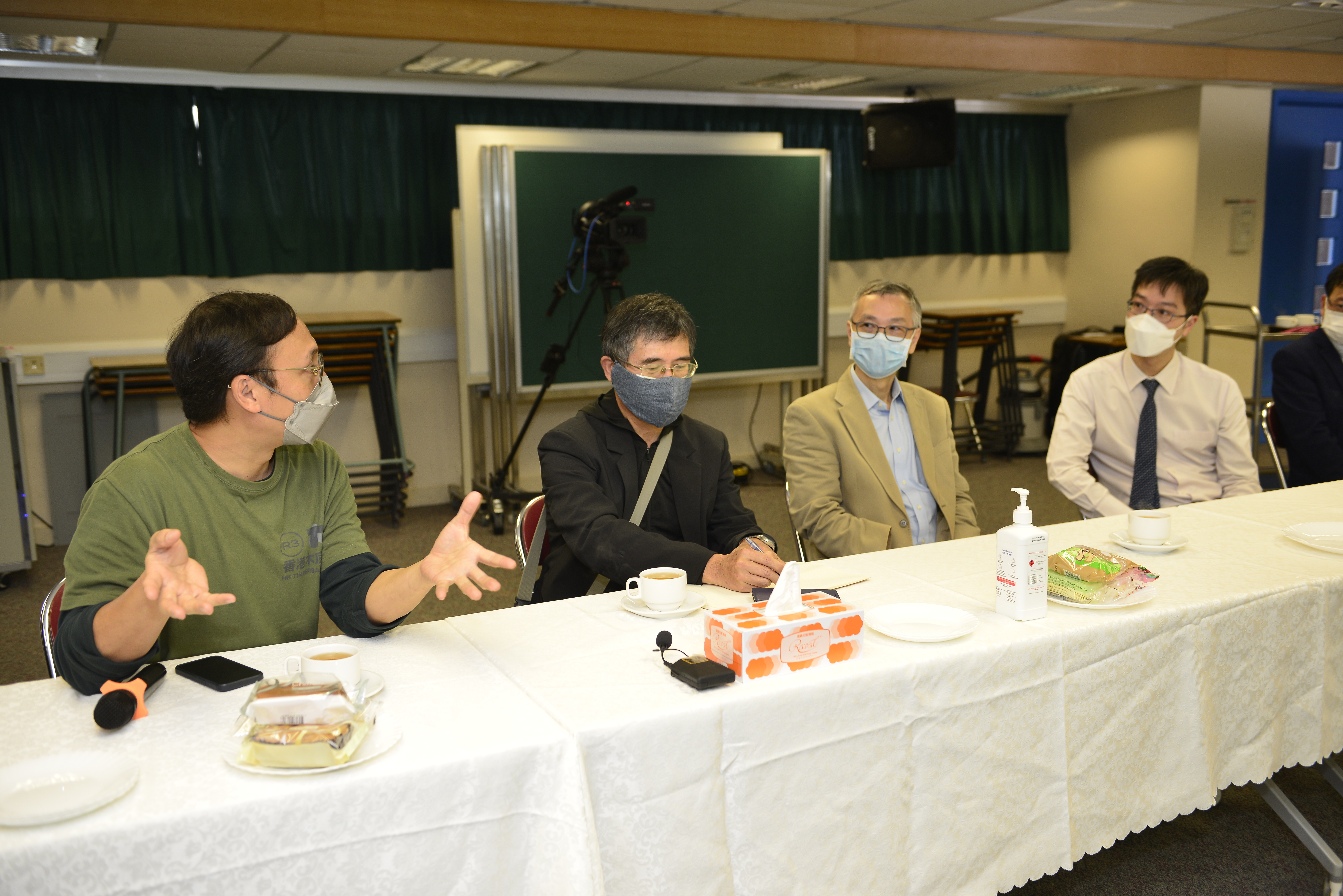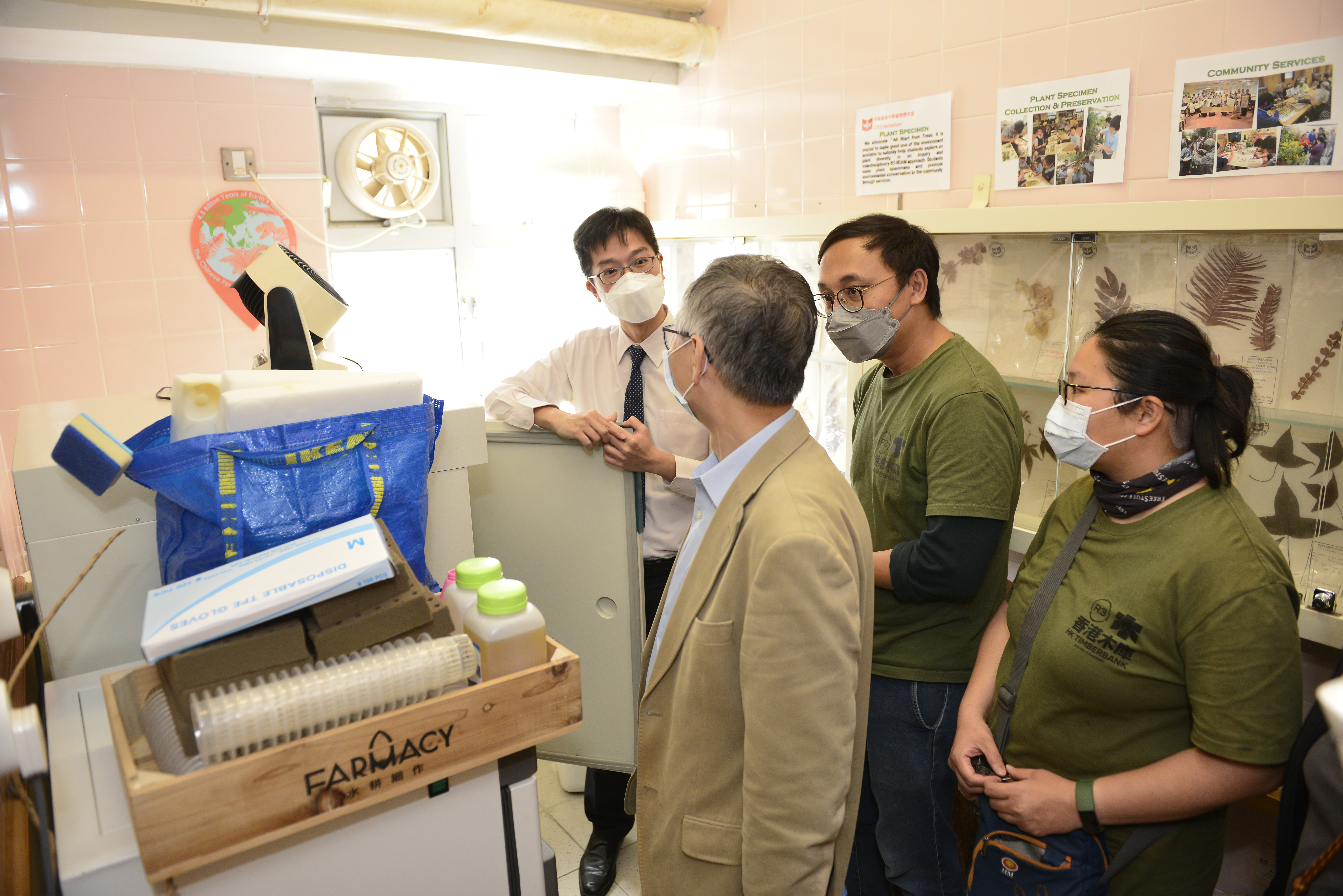 A panel of professionals, including Prof. Lam Hon Ming (Professor of Life Sciences of CUHK), Mr. George Jor (Founder of Grateful Green Group), Mr. Ricci Wong (Founder of HK Timberbank) and Mr. Fritz Pang (Registered Educational Psychologist), visited CFSS on 20 April 2022 (Wed). A discussion session and a campus tour were launched to understand the endless effort of CFSS in promoting Biodiversity Education in the past years.