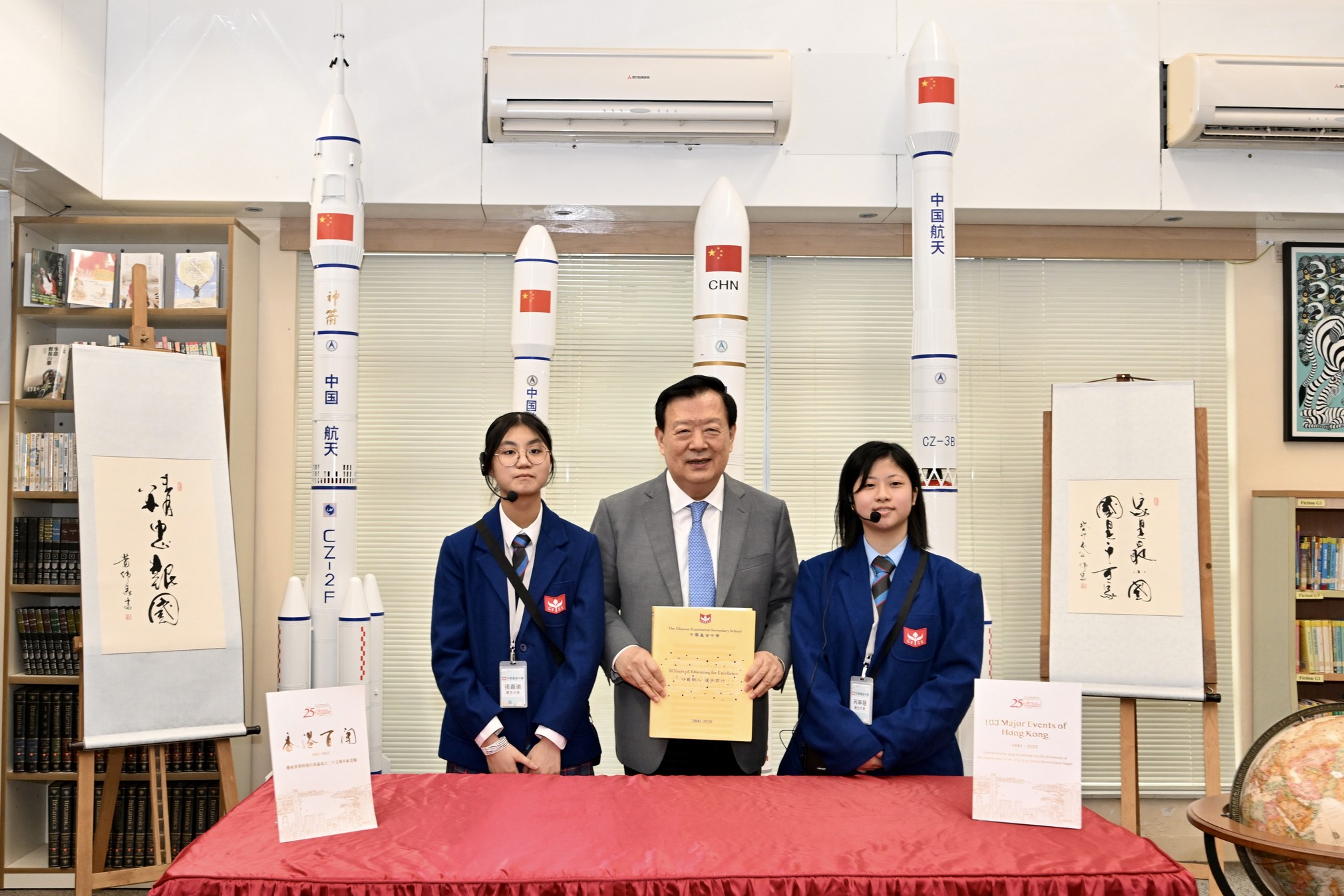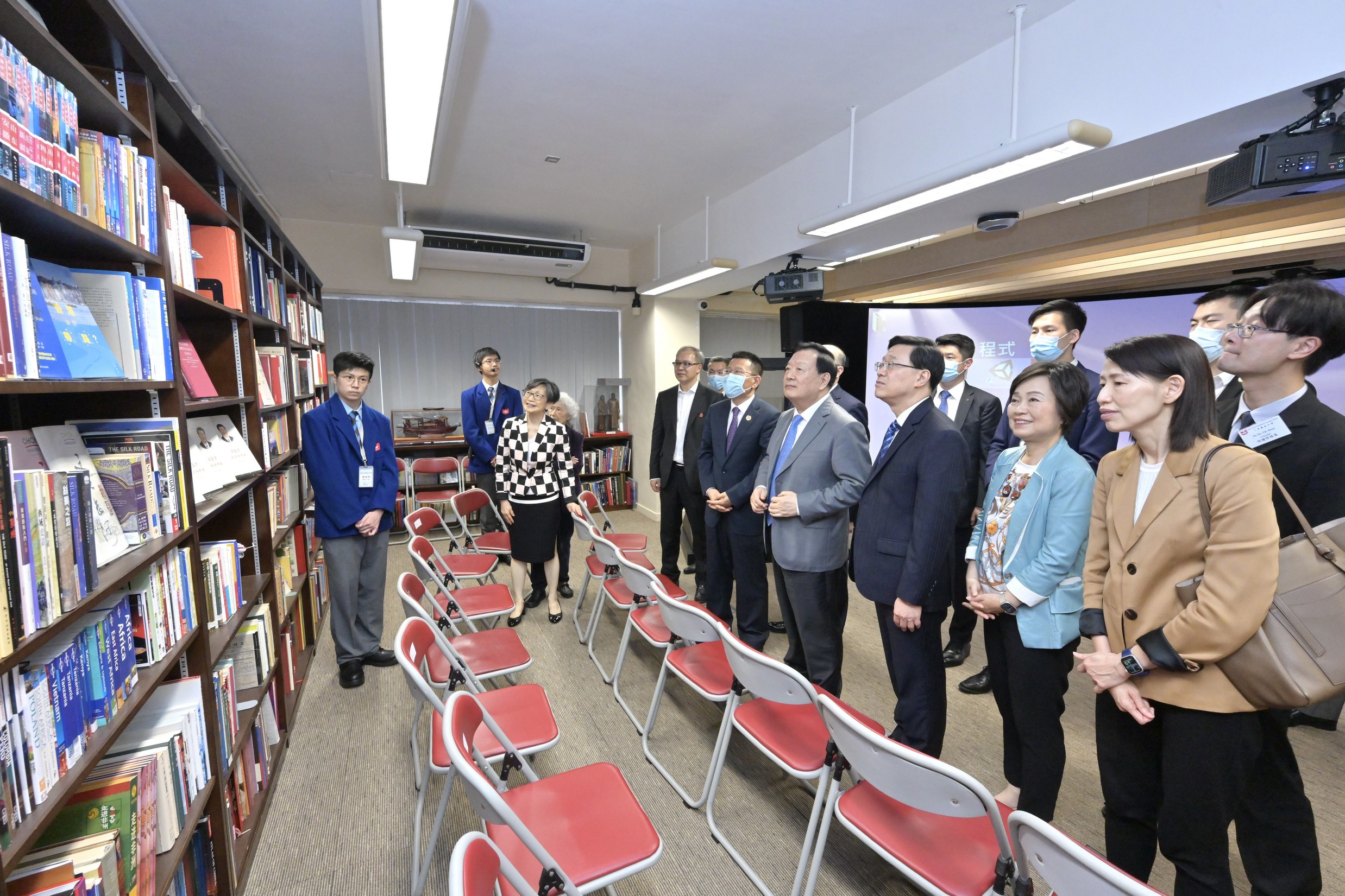 The Vice Chairman of the 13th Chinese People's Political Consultative Conference (CPPCC) and Director of the Hong Kong and Macao Affairs Office of the State Council, Mr. Xia Baolong, accompanied by the Chief Executive, Mr John Lee, and the Secretary for Education, Dr Choi Yuk-lin, visited The Chinese Foundation Secondary School on 18 Apr 2023 (Tue). He learned about the progress of the implementation of national education and national security education, and the promotion of national awareness in our school, as well as the work of our school in nurturing students through different subjects.