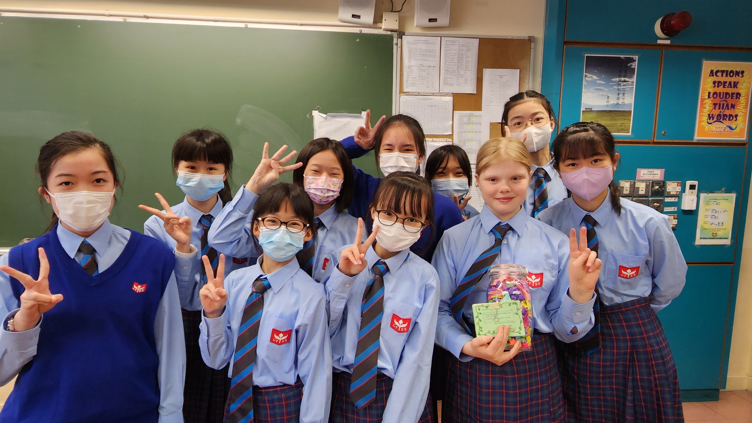 An Icelandic student conducted a one-week exchange programme in CFSS in early March. She had lessons with our 1E students. Besides academic exchange, our students also interacted with the Icelandic student happily through learning each other’s languages and teaching her to play badminton.