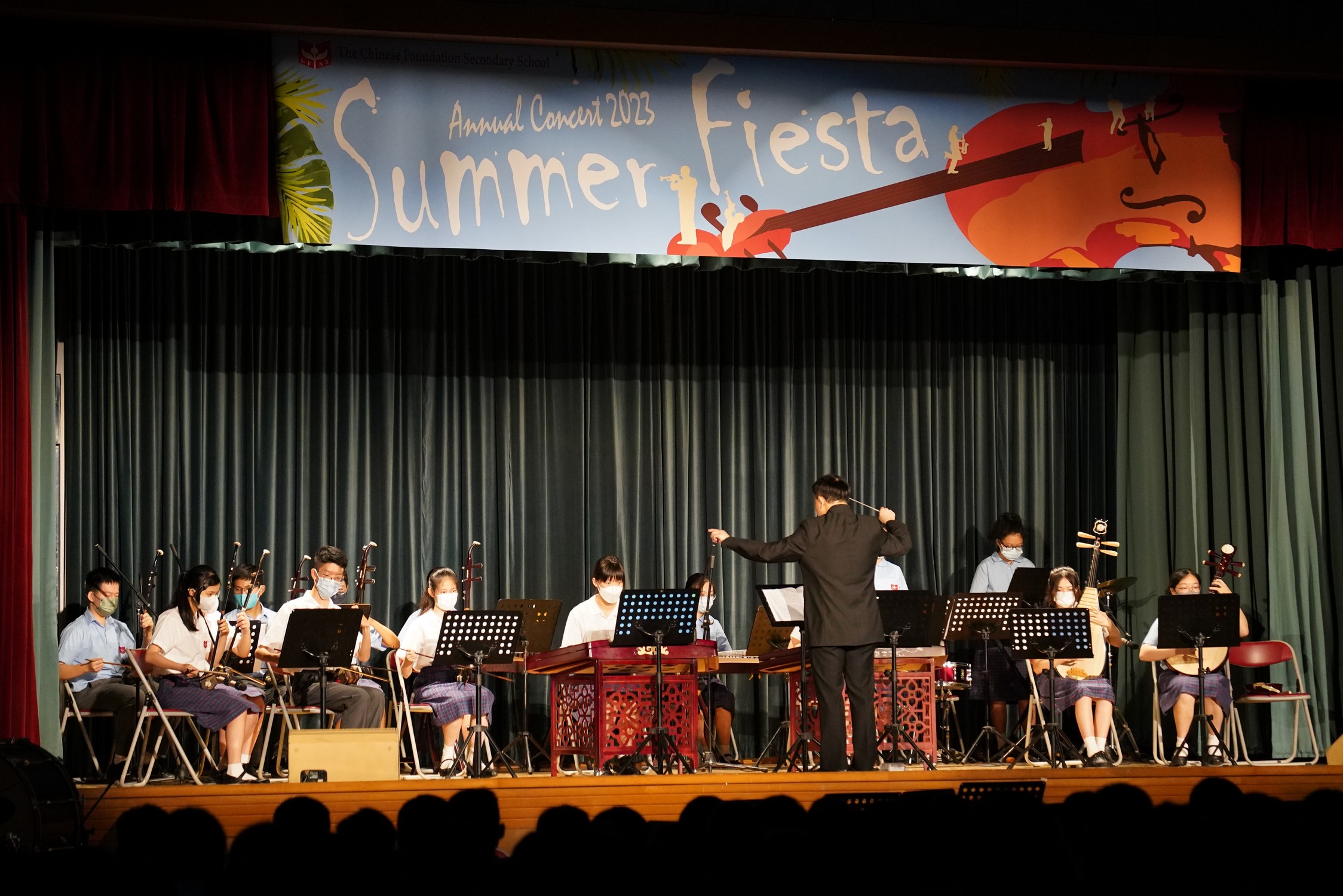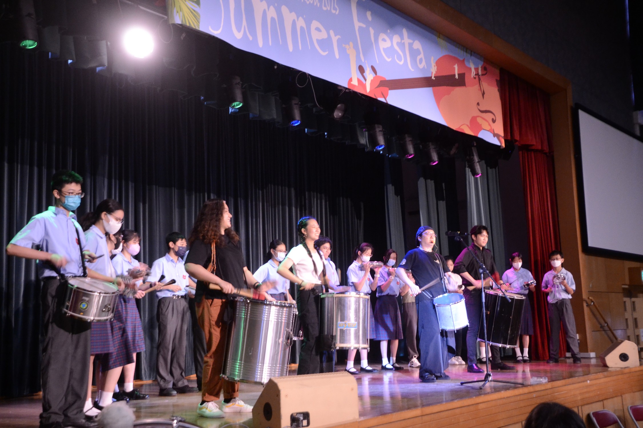 On 30th June 2023, more than 700 parents, teachers and students attended our Annual Concert. Under the theme "Summer Fiesta", Chinese Orchestra, Orchestra, School Choir, Chinese Dance, Jazz Dance, Drama, etc. delivered their outstanding performances. The Samba Drums Show certainly stole the limelight as all S.1 students together performed different percussion, adding to the joy of summer.