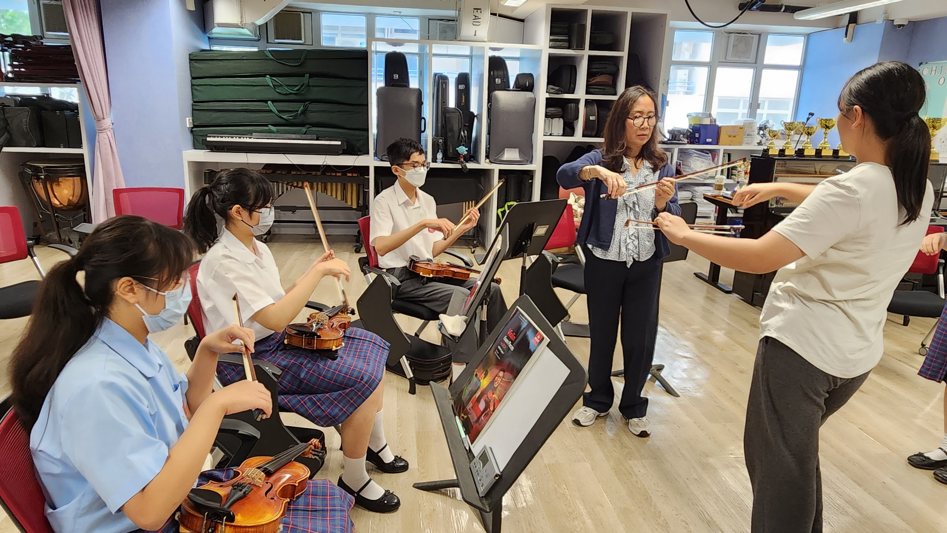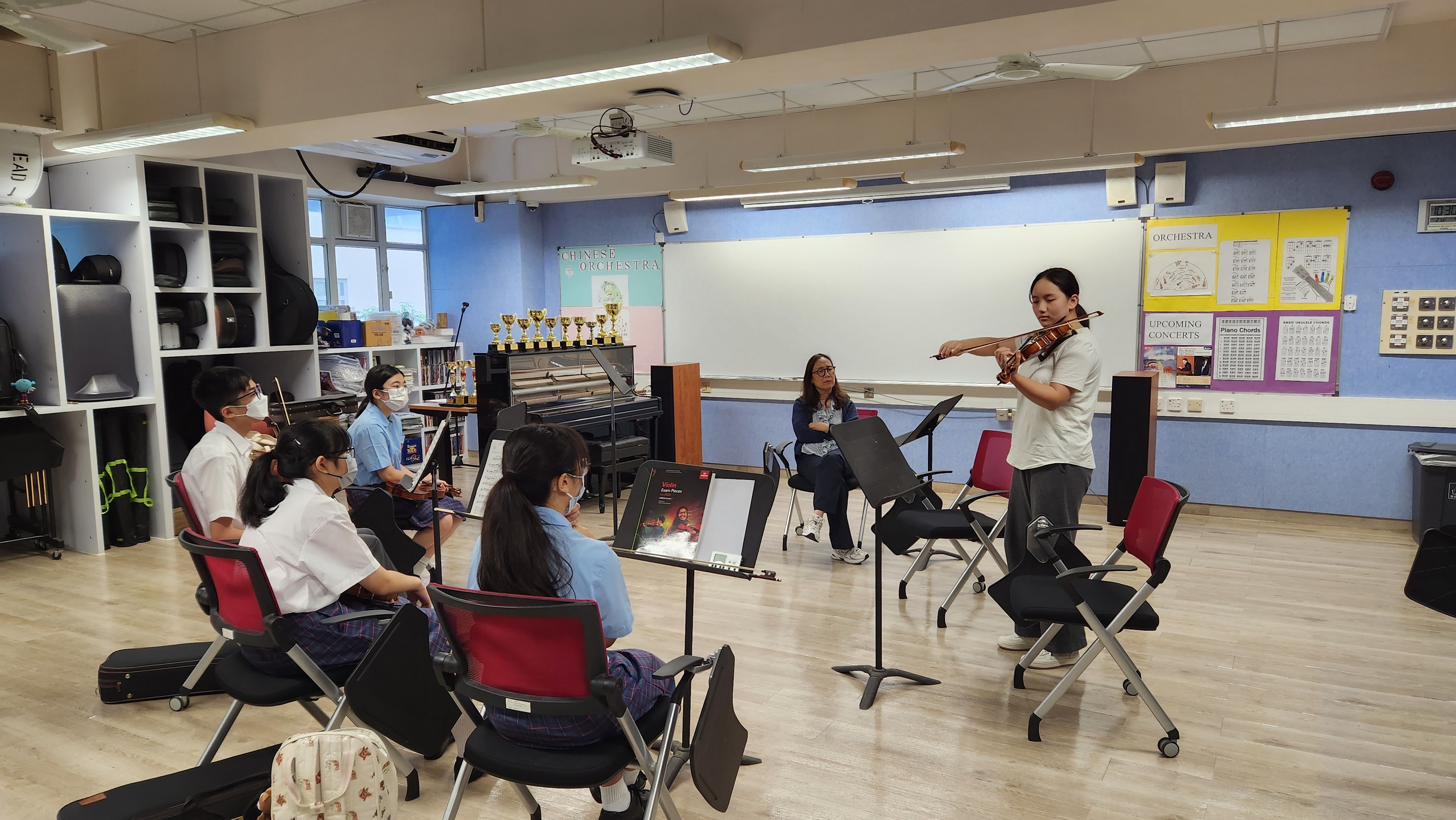 Ms. Lin Wei has served as concertmaster and violin teacher in many different countries. She gave a master class to our students who are promising in playing violin on 28th August, 2023. In the class, students played their own selected piece, and Ms. Lin gave the comments one by one patiently. She also led the students to play some songs together. The students were benefited by Ms. Lin’s encouragement to discover the music, but not to be fed by the others, and enjoy the music by knowing the meaning of the songs.
