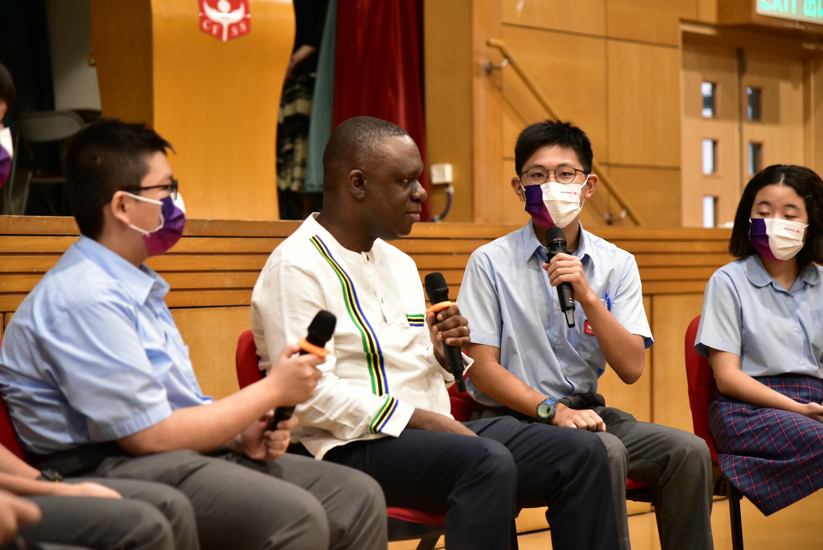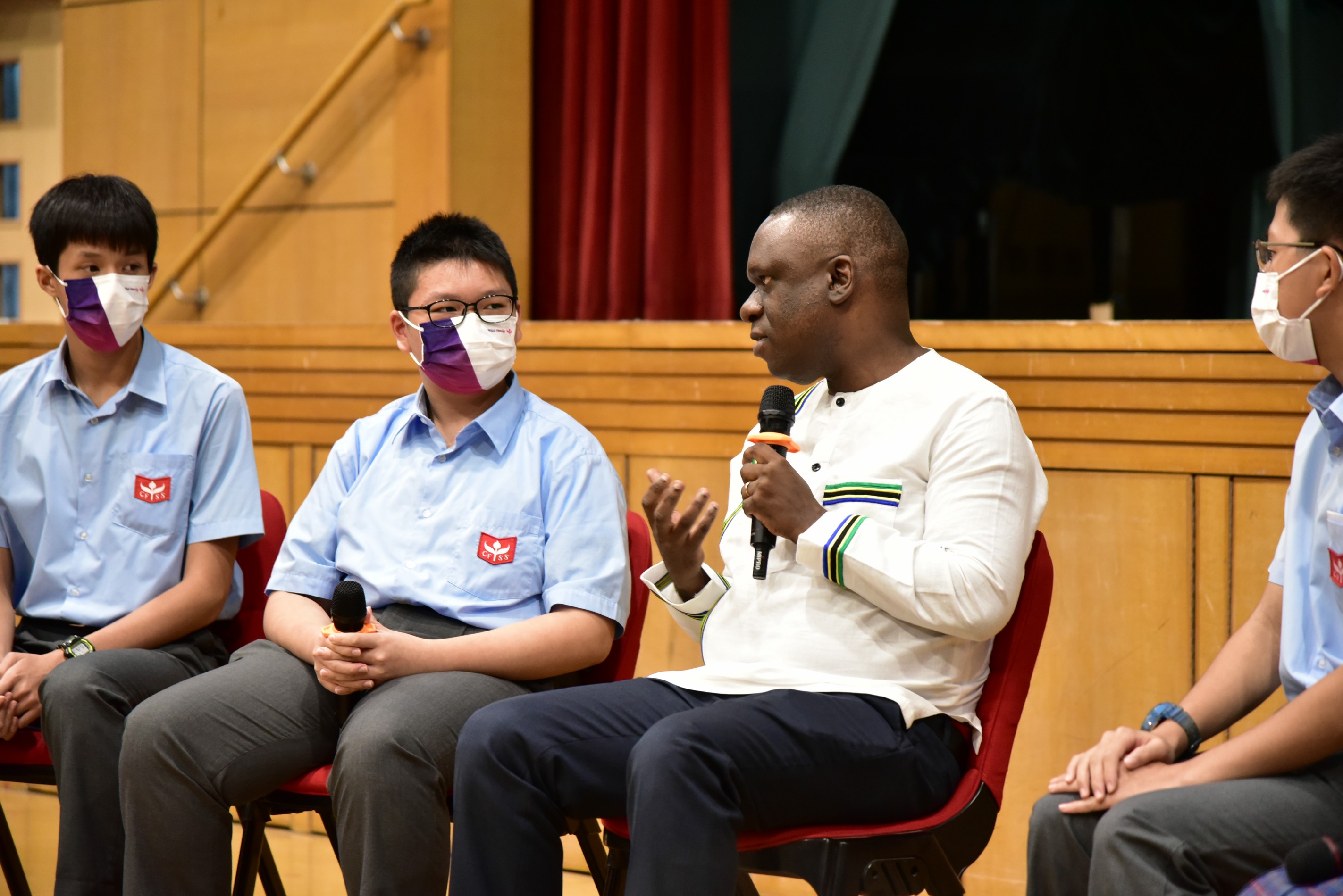 Ambassador Mbelwa Kairuki worked in Embassy of the United Republic of Tanzania for more than 6 years, and now will leave Hong Kong for his new position as the High Commissioner of Tanzania in UK. He visited our School again on 12 September 2023 and took photos with the plant "Snow Rose" which he planted in February. The visit was filled with African drum music. Our students also treasured his fruitful sharing on his experience as an ambassador, places worth visiting in Tanzania and even his way of effective time management. We wish Ambassador Mbelwa Kairuki every success in future endeavours.