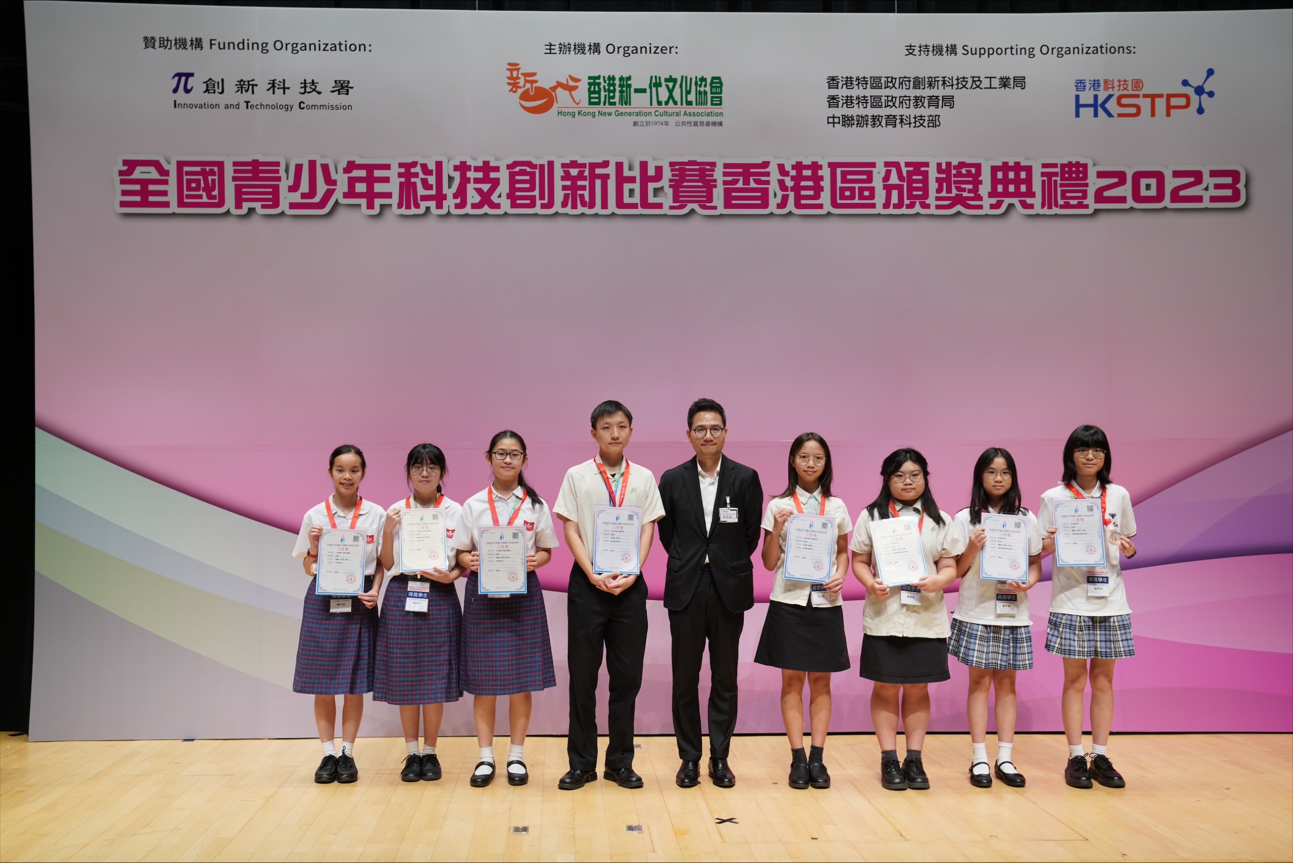 On October 7, 2023, the Hong Kong New Generation Cultural Association has arranged a prize presentation ceremony for the Hong Kong Representatives who had received awards in national competitions, which includes The 2nd National Youth Space Innovation Competition and China Adolescents Science & Technology Innovation Competition". Our school has received multiples awards in the events. Details are as follows,