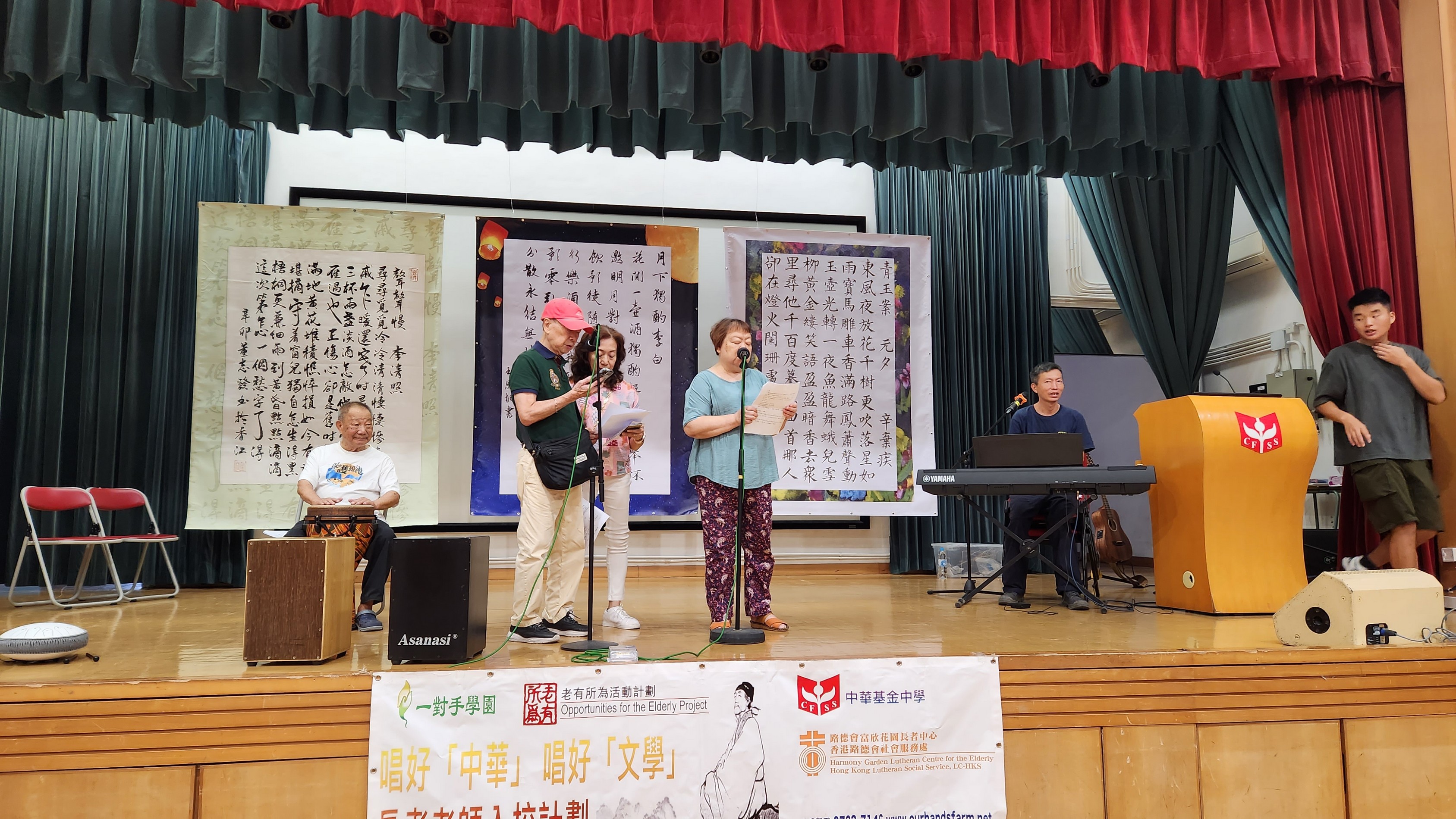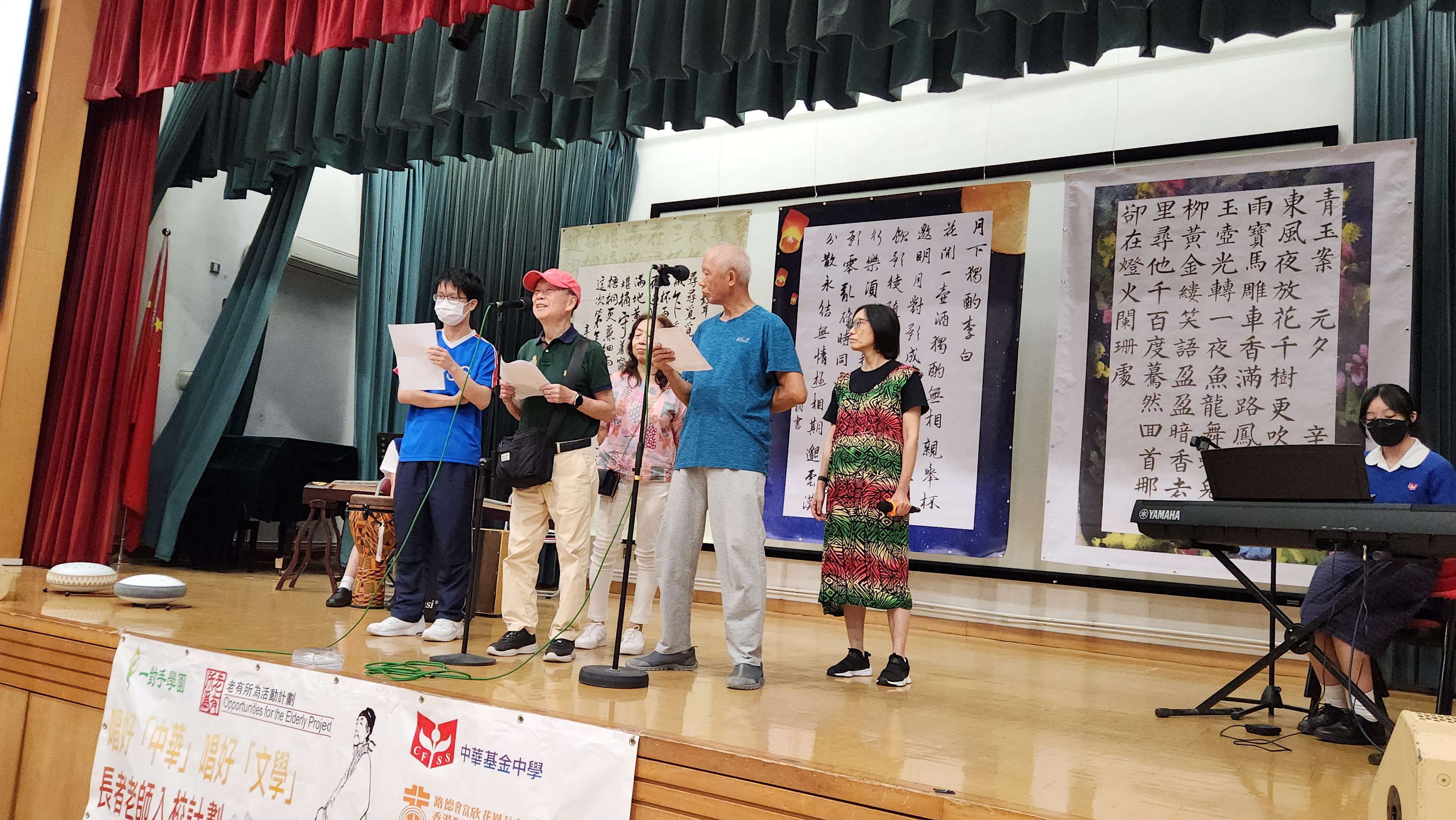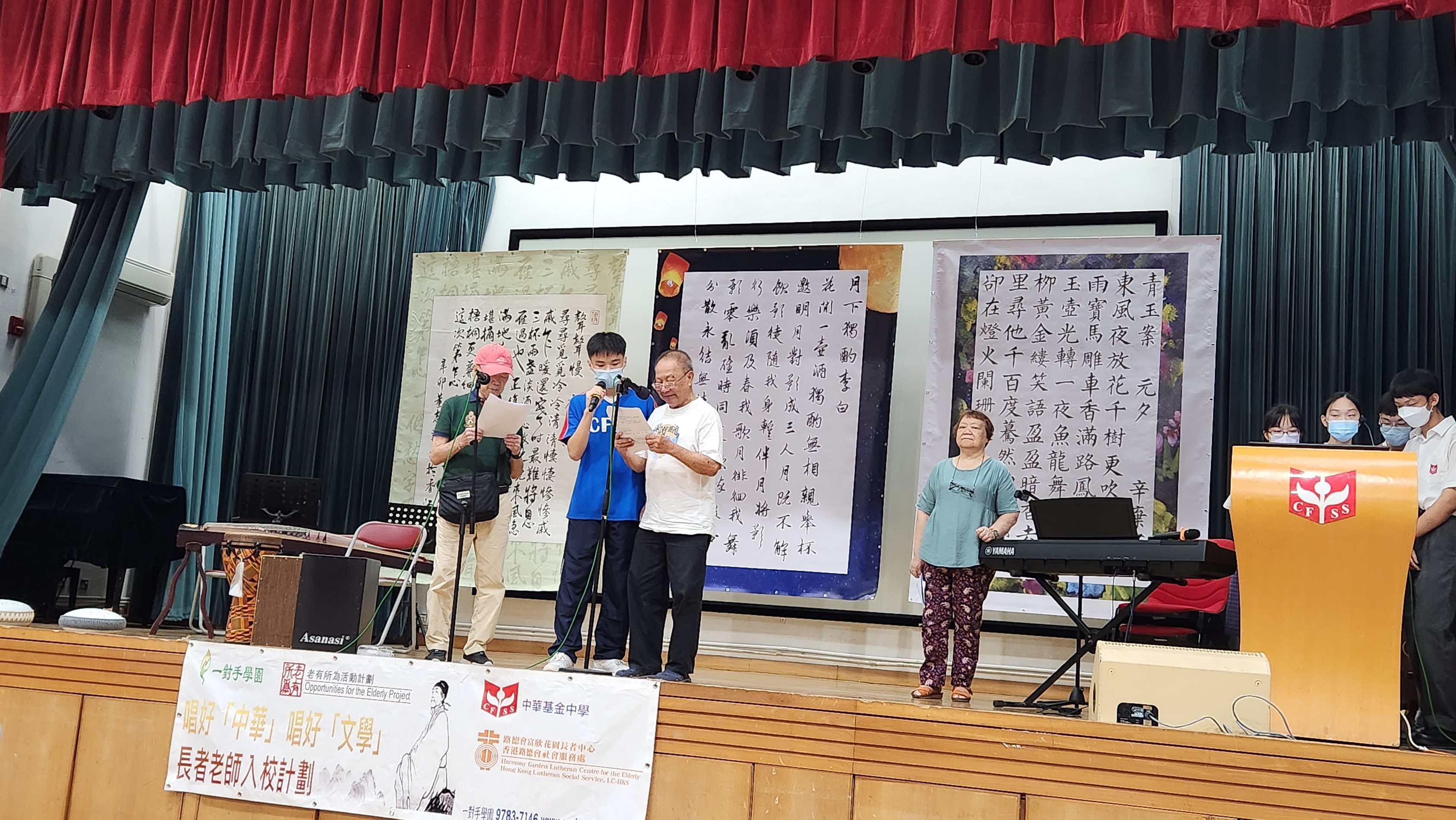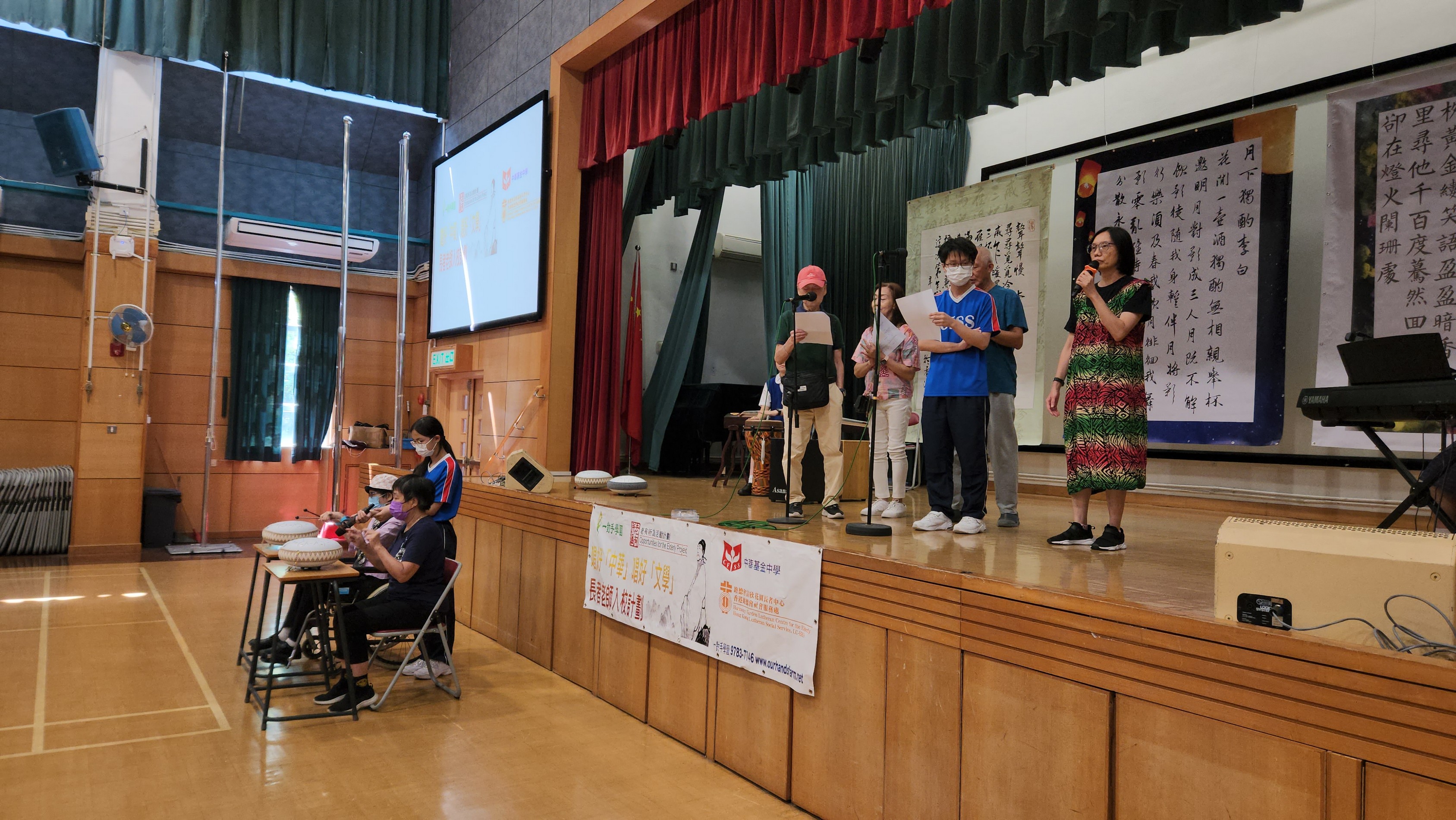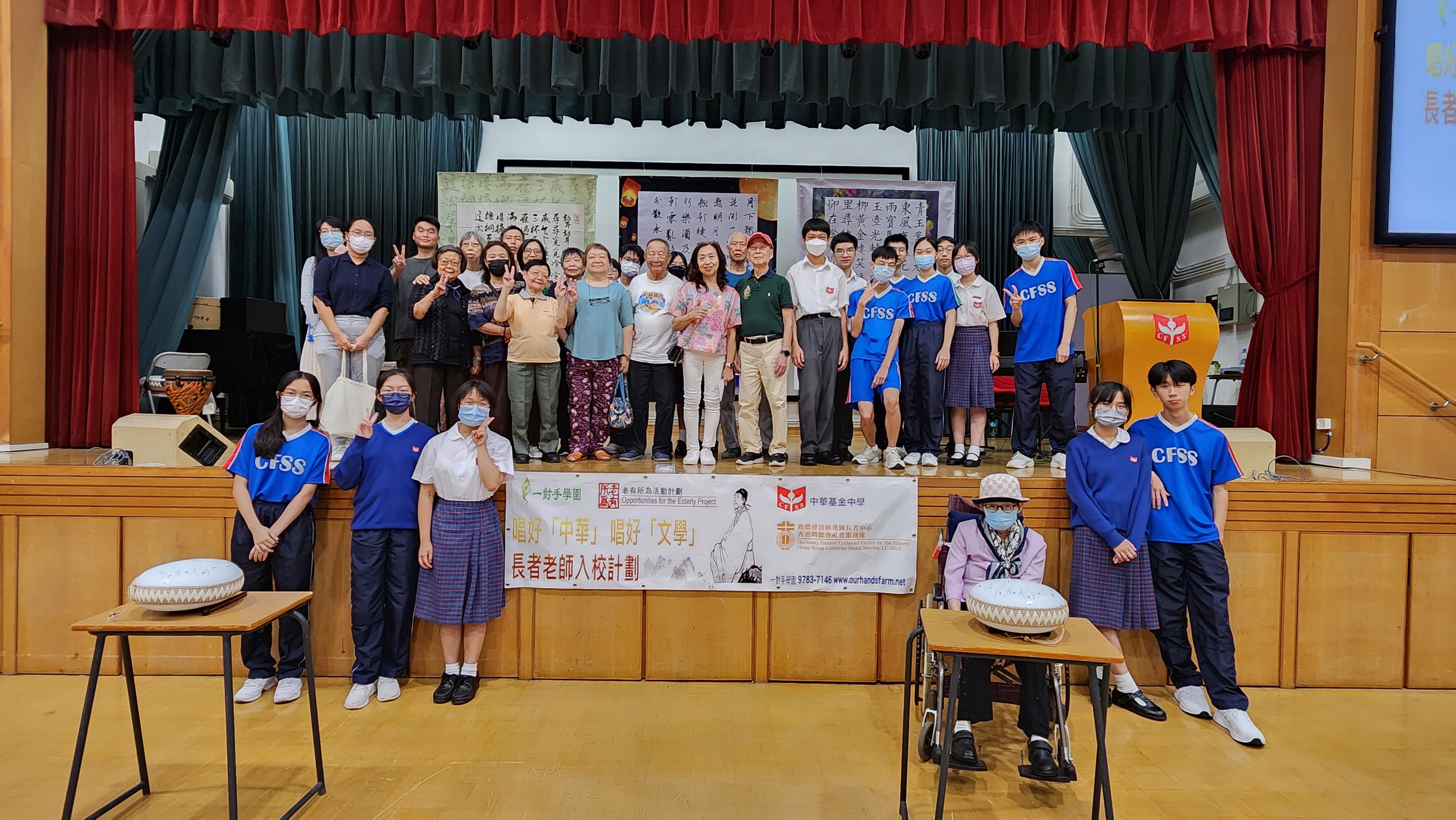 In order to promote a sense of worthiness among the elderly, our school, Our Hands Farm cooperated with Harmony Garden Lutheran Centre for the Elderly. Some Senior Form students collaborated with the elderly to present the Chinese articles from HKDSE syllabus in the form of recitation, singing, and instrumental performances. They performed for the Secondary 1 and Secondary 2 students on the eve of the Mid-Autumn Festival so as to build up a sense of competence and identity of the elderly as well as promote the Chinese culture to the students. The senior form students who participated in the program not only developed their strengths, but also had fun with the elderly.