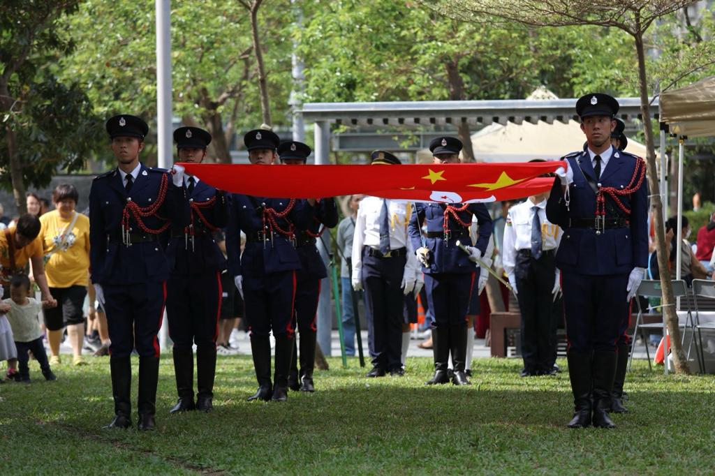 The Home Affairs Department (HK Eastern) has launched the "Eastern District Fire Safety Carnival" in Aldrich Bay Park on 29th Oct, 2023. The Carnival aimed to raise public awareness towards fire safety through diversified activities such as stage performances, exhibitions and game booths. Our School's National Flag Team was cordially invited to participate in the Flag Raising Ceremony to officiate the Opening Ceremony. We are grateful for The Fire Services Department to offer our students the precious chance to serve and devote to society.