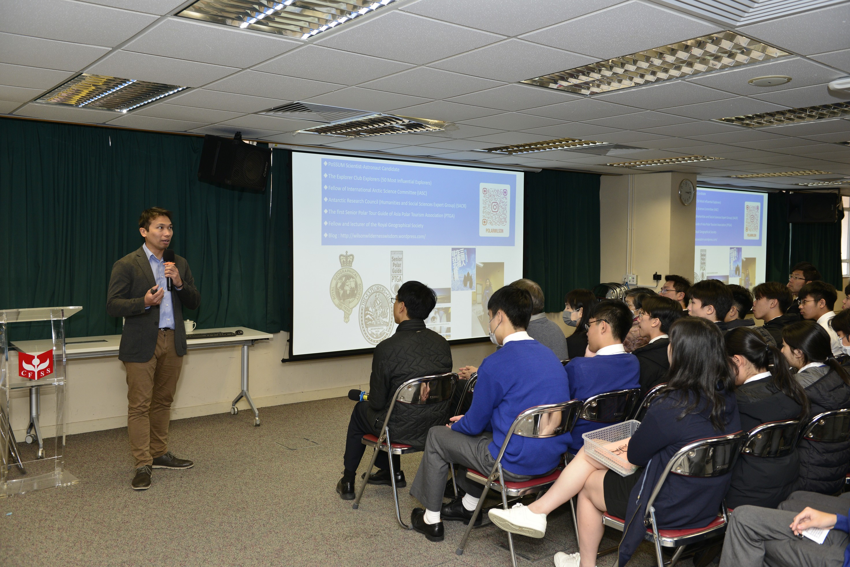 Mr. Cheung Wai Yin is the world's first Chinese-born Polar Expedition Guide. We were honored to have him come to CFSS to share his polar career and research with our S.5 students. The students were very interested in his glacier research and marveled at the polar scenery. He also promoted environmental awareness to the students and presented them with postcards of polar landscapes created by him as an encouragement.