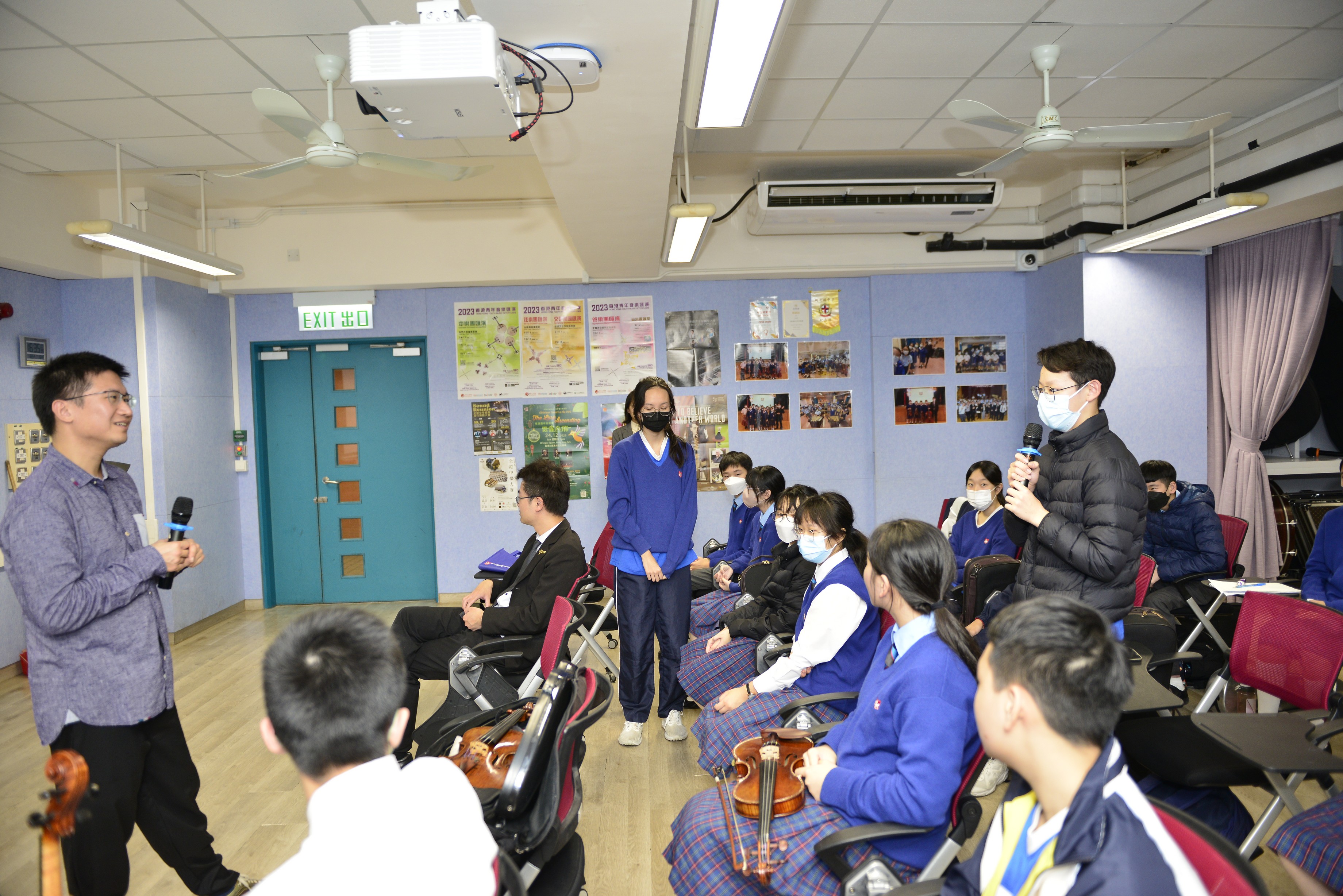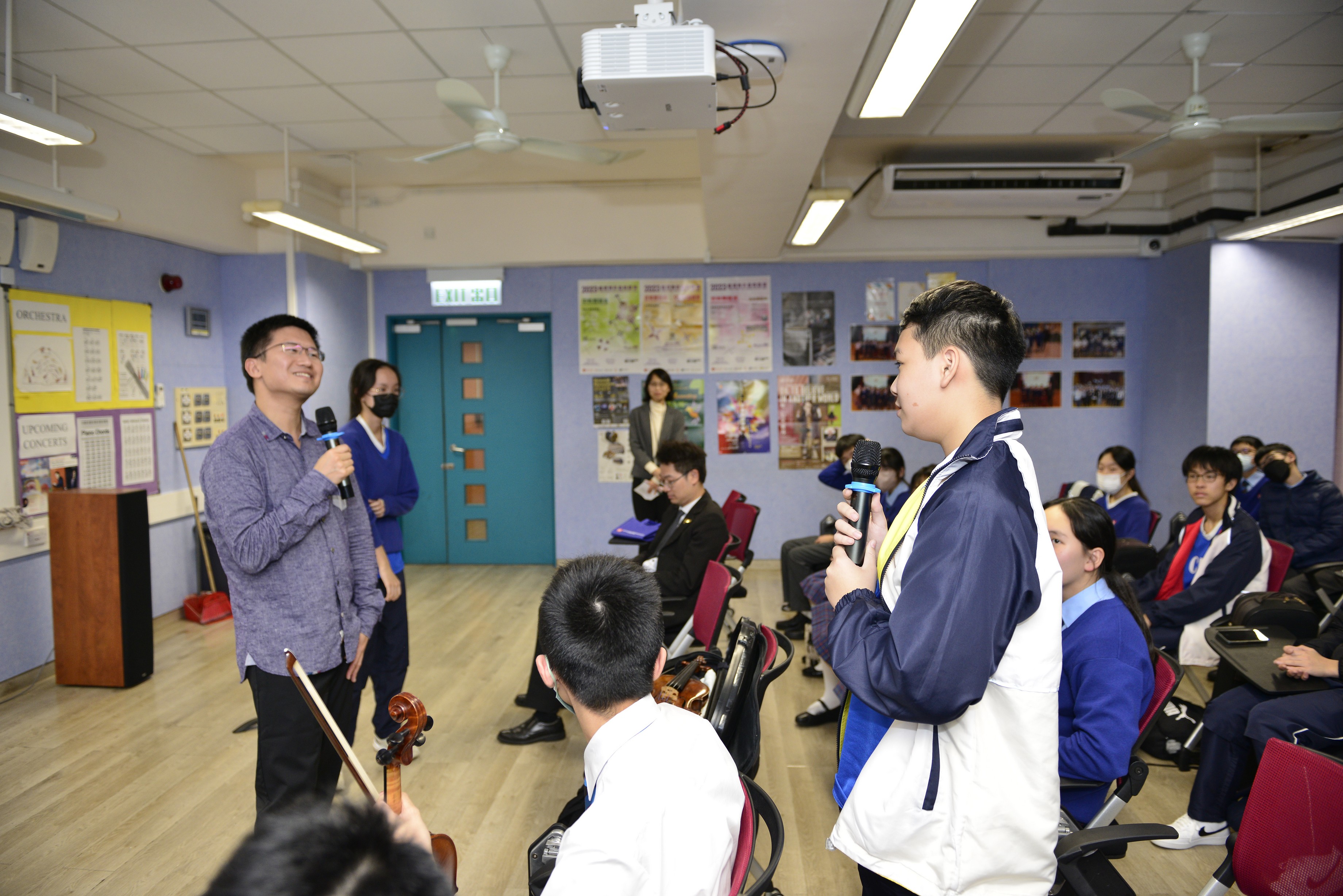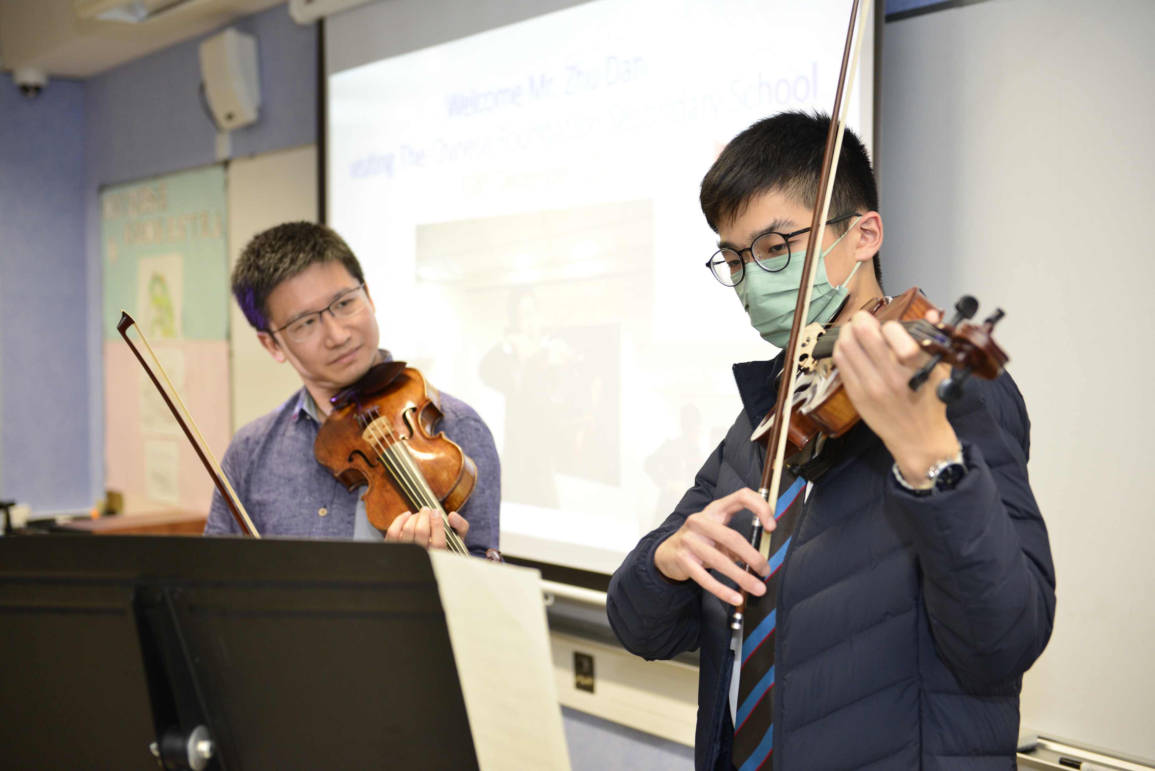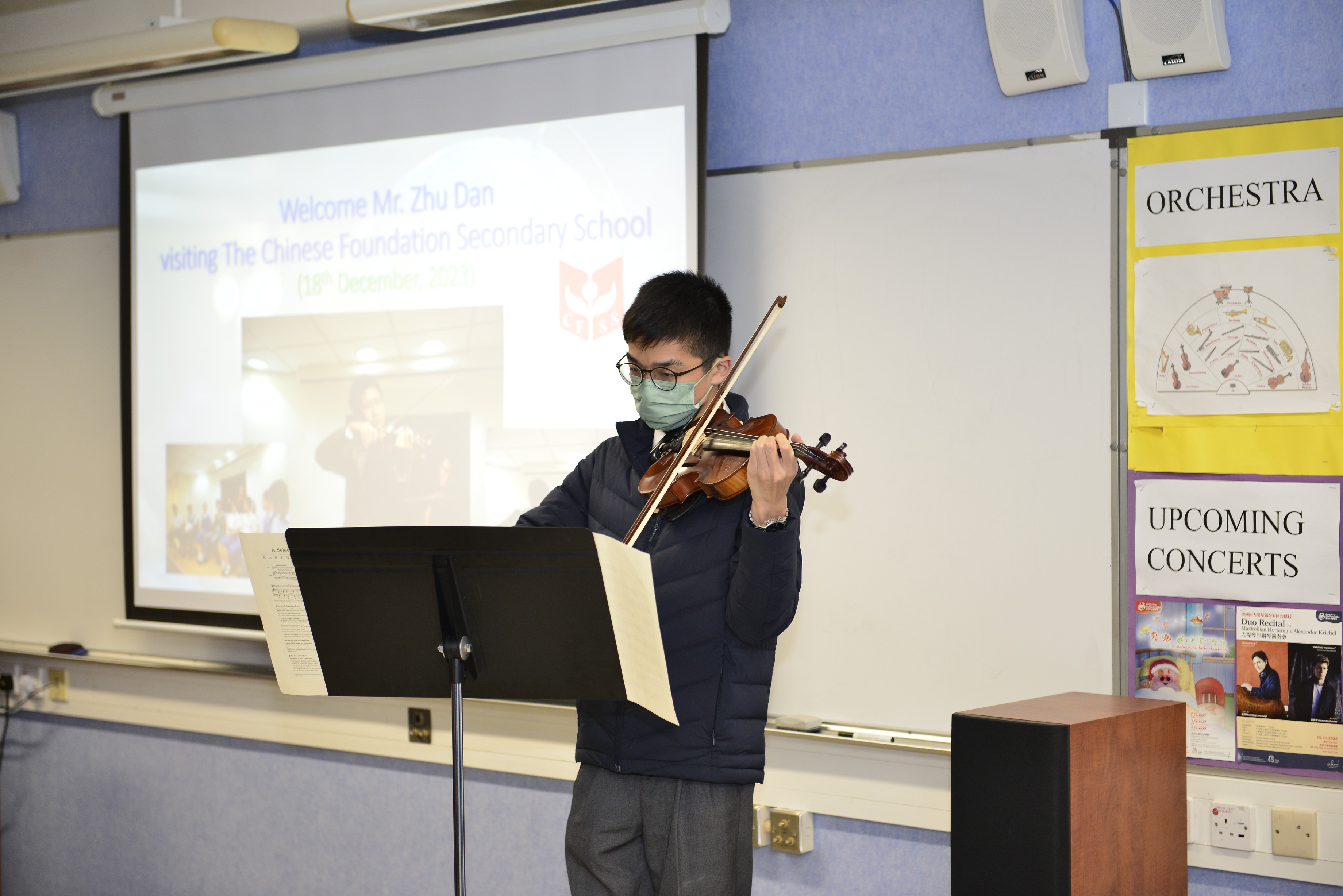 Mr. Zhu Dan is widely recognized as one of the leading musicians of his generation, performing internationally in North America, Europe and Asia. We are grateful that he came to our School on 18th December, 2023 and gave a sharing to our String Orchestra members. Our students played some pieces during the session, Mr. Zhu gave guidance for them to improve their skills. He also reminded students that music should tell its stories, and encourage students to enjoy music.