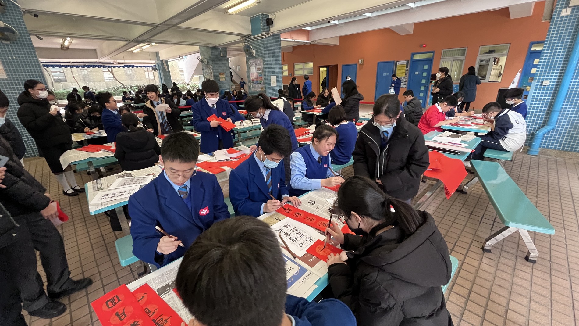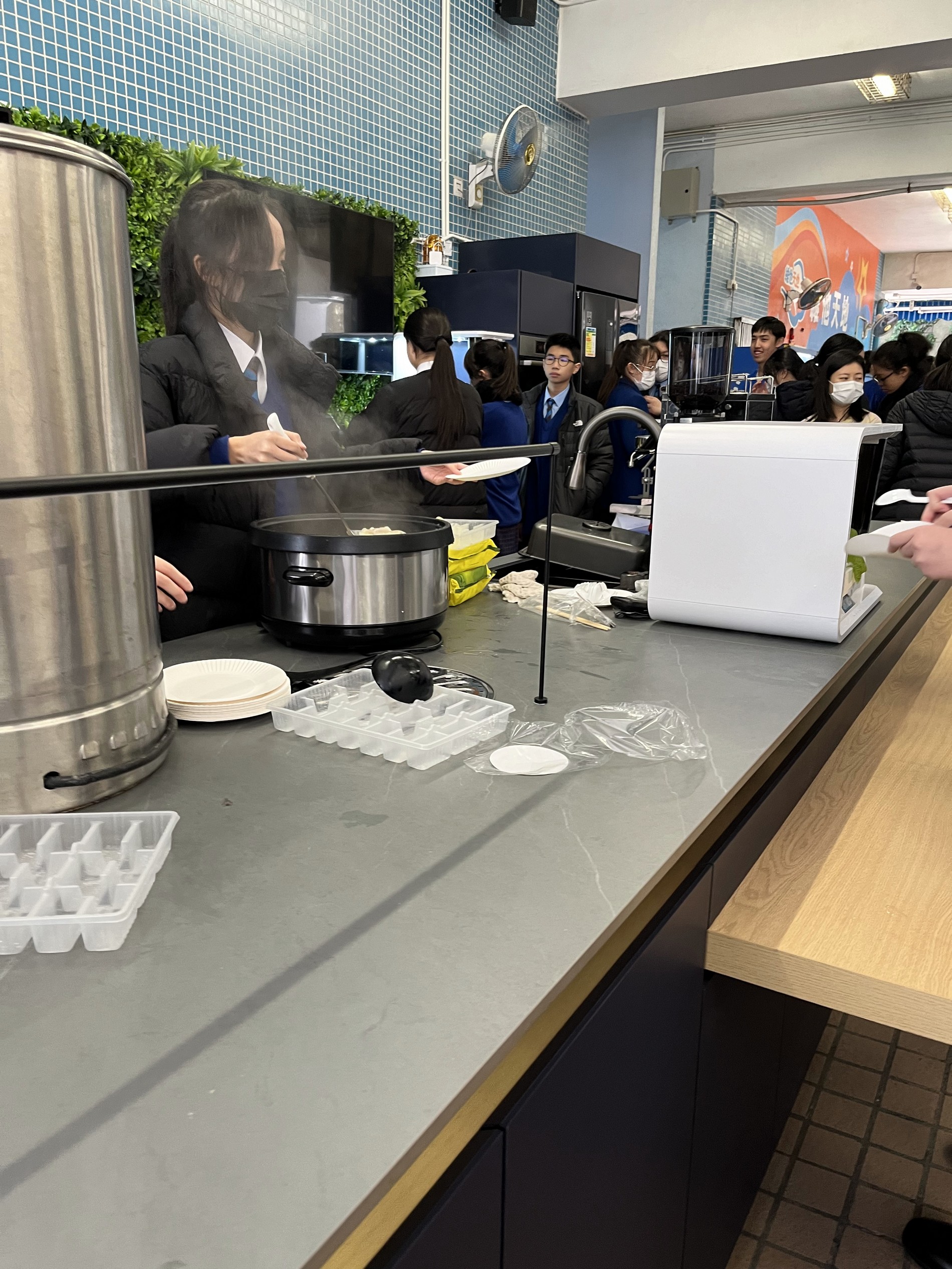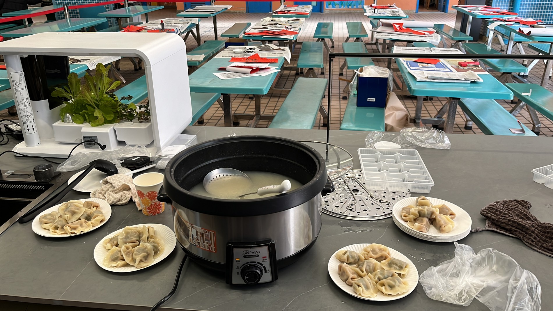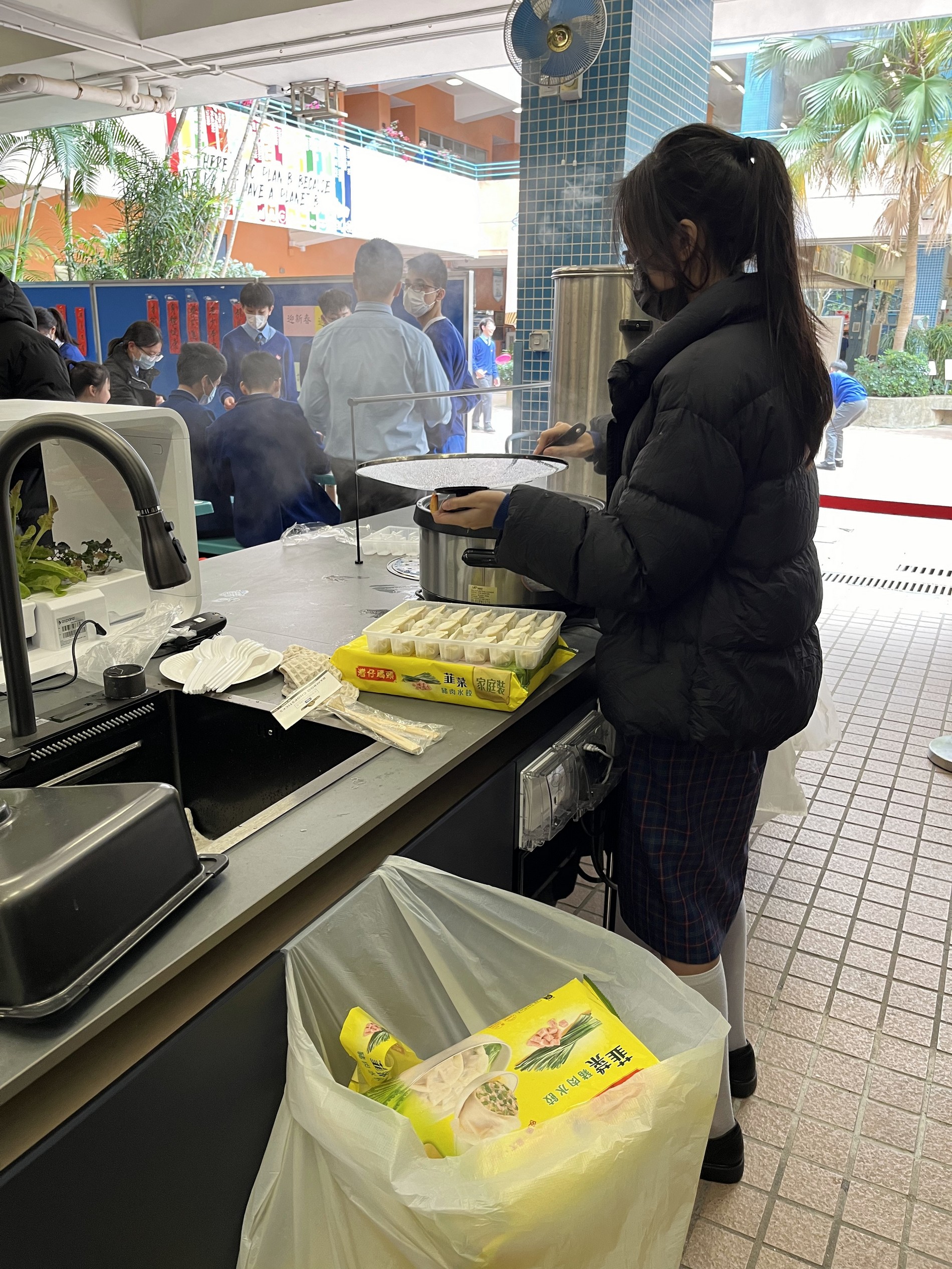 Putonghua Club and Chinese Society jointly organized a Lunar New Year lunch celebratory event at the Smart Kitchen on 26th January, 2024 (Friday). All the teachers and students wrote New Year greetings to one another. In addition, everyone was served with hot dumplings and sweet-scented Osmanthus glutinous rice dumplings with longan and wolfberry in brown sugar and ginger sauce. The cold weather could never stop everyone’s laughter. Mencius said: "It is better to have fun together than to have fun alone." Here are the highlights of the activities:
