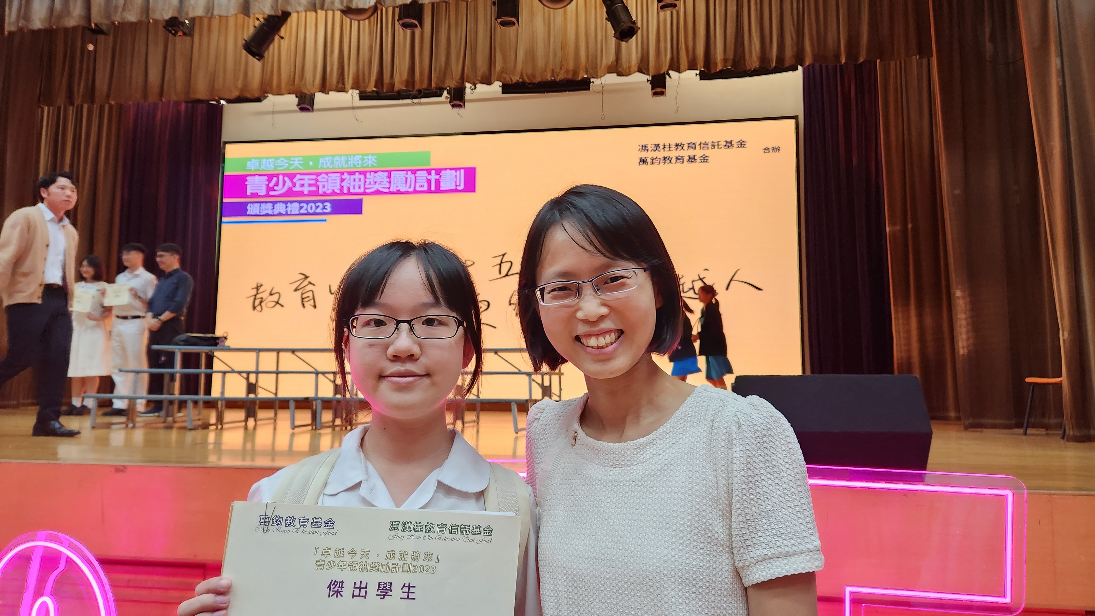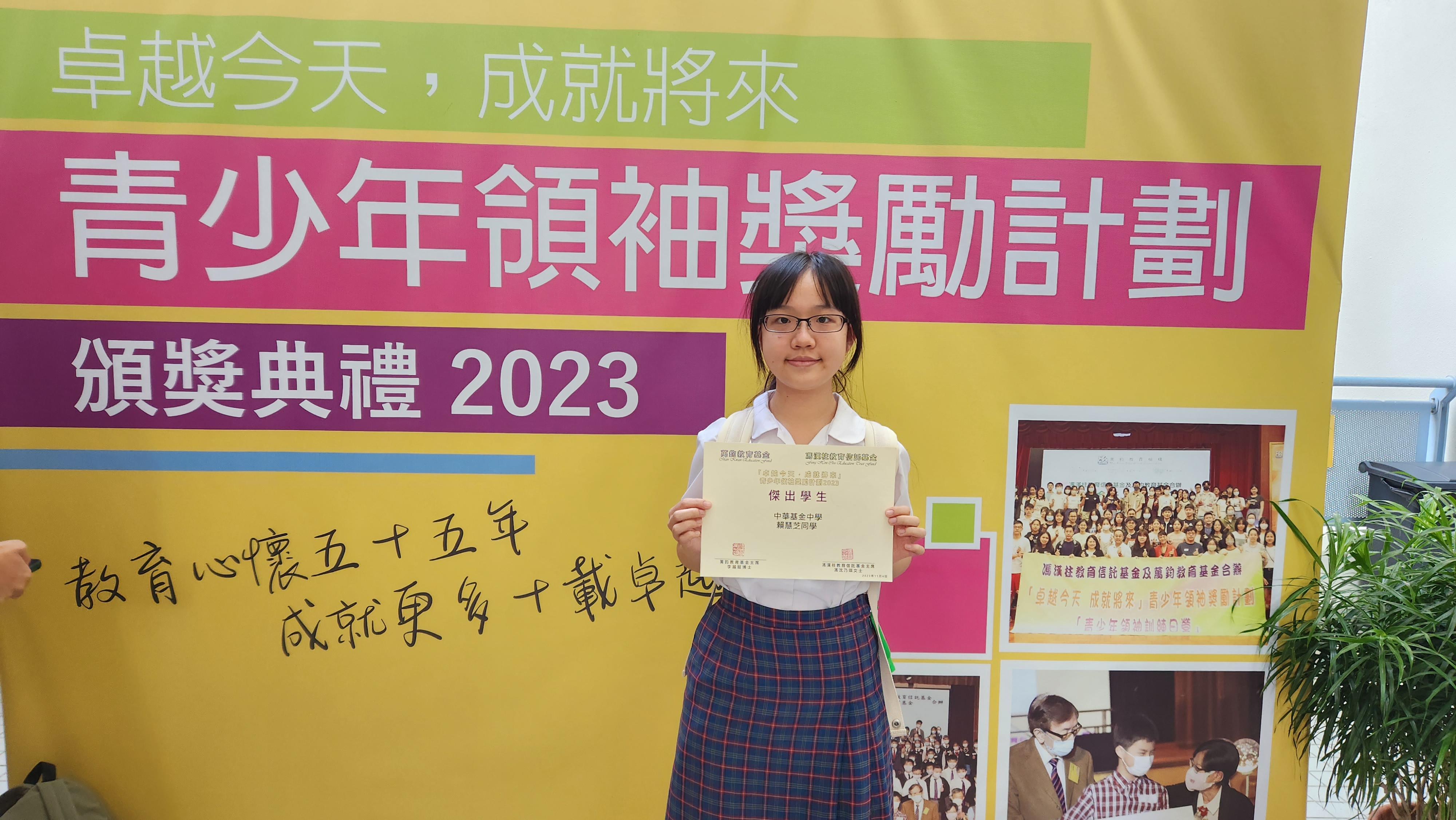5A Lai Wai Chi was awarded 10th Pursuing Excellence and Beyond Youth Leaders Award Scheme and Scholarship organized by Fung Hon Chu Education Trust Fund and Man Kwan Education Fund. Award to recognize her devotion in extra-curricular activities and leadership.