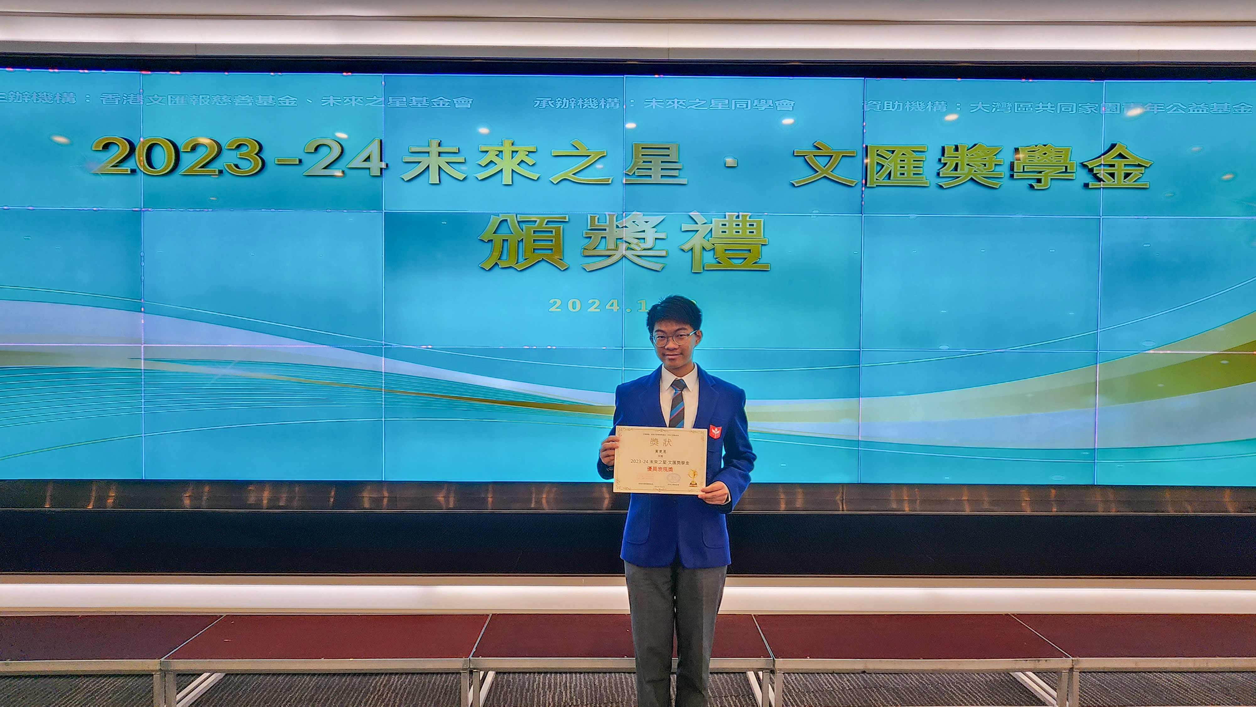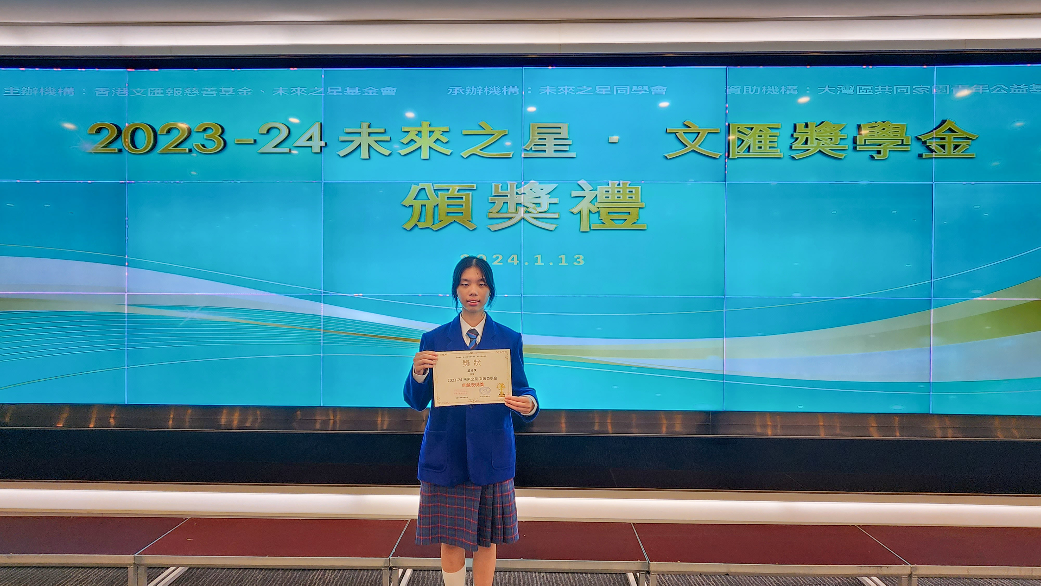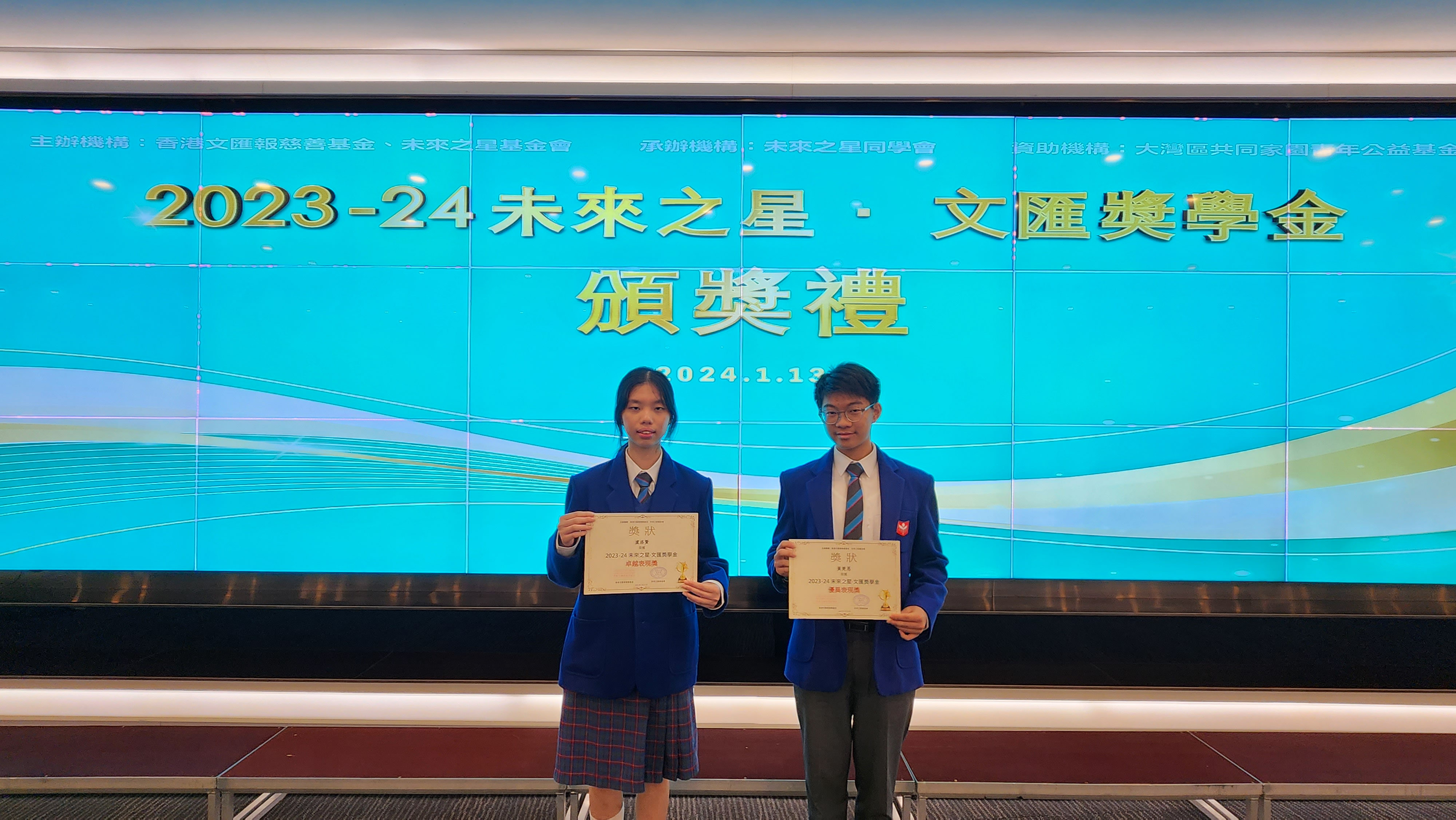 4A Wong Cho Yan and 5B Cheung Ka Yu Shana were awarded 2023 Future Star.Wenwei Scholarship to recognize their academic result, leadership and social service contribution.