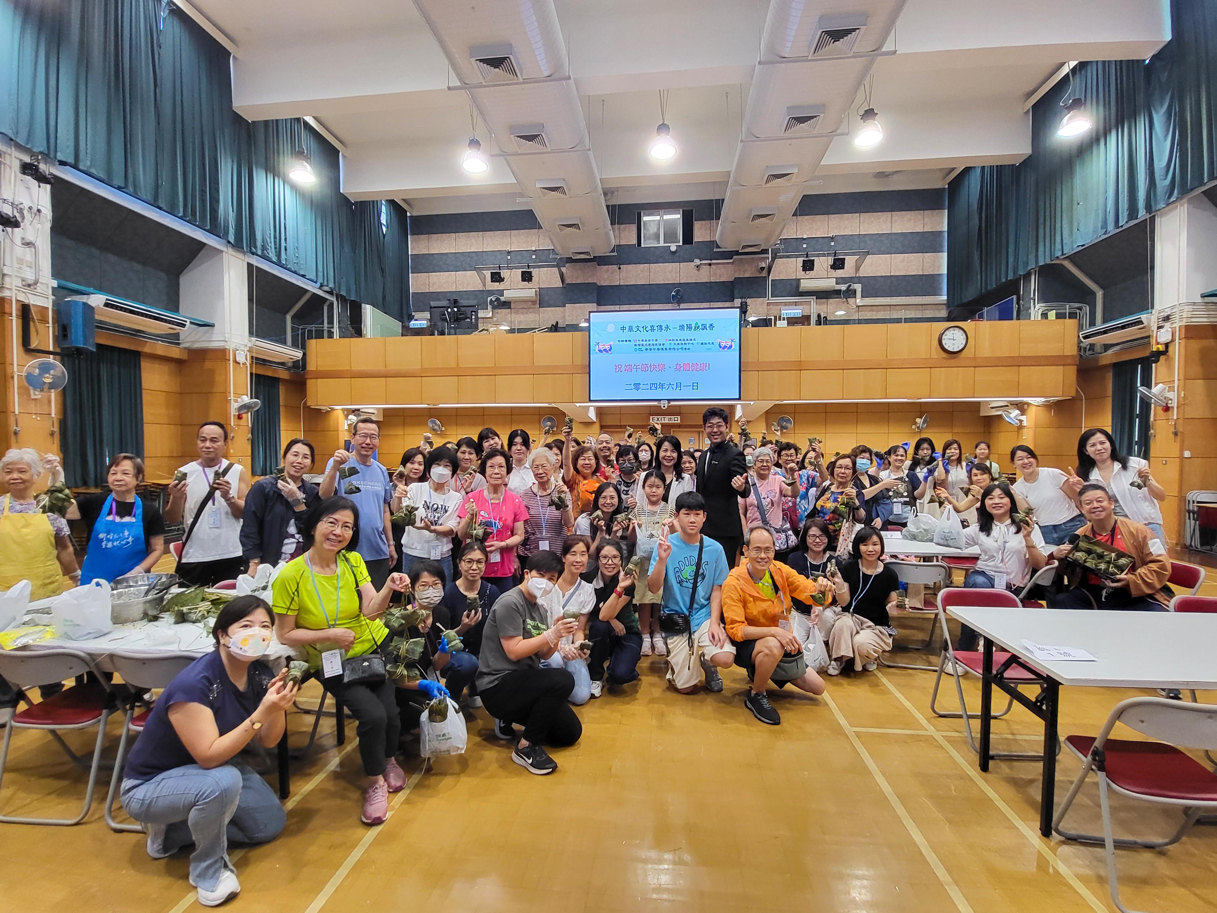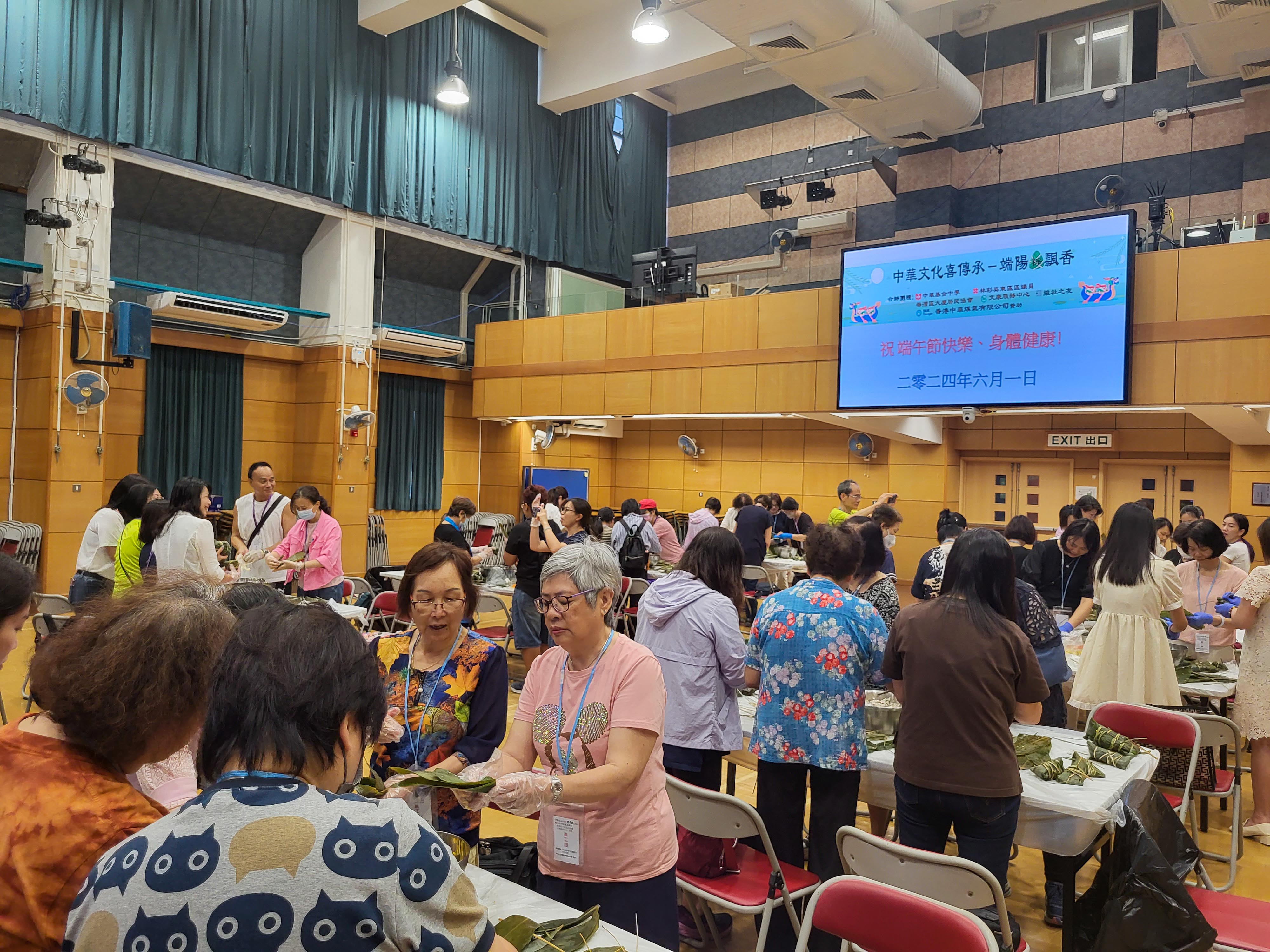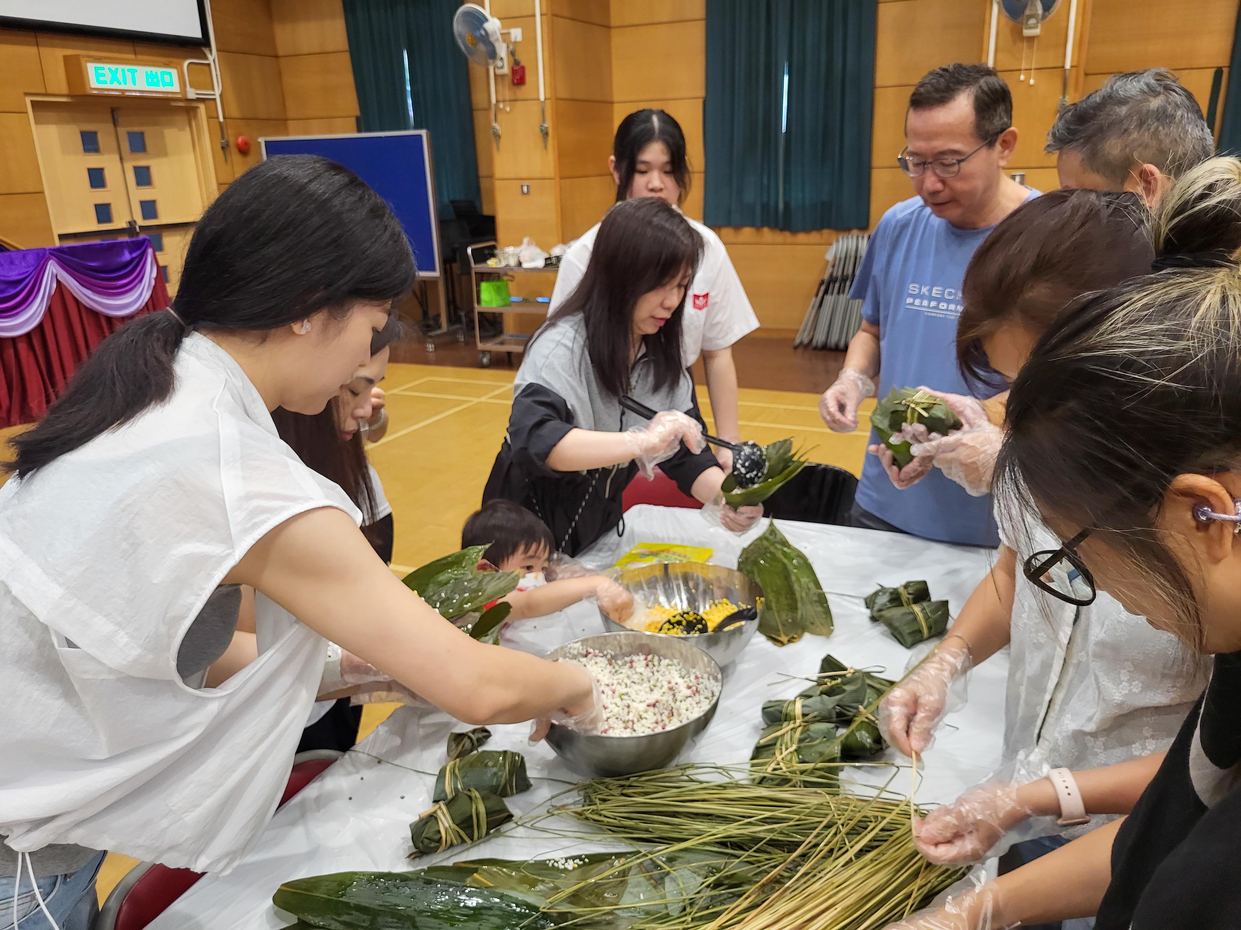 On June 1, 2024, our school collaborated with the Eastern District Council Member Ms Lin Cai-ying, Hong Kong and China Gas Company Limited, Residents Association of Chai Wan, Cultural and Recreational Service Center and Friends of Weishe to jointly organize a community voluntary service with cultural heritage significance, allowing a group of neighbors and friends from Eastern District with youngsters to pass on the skills of making rice dumplings to celebrate the Dragon Boat Festival.