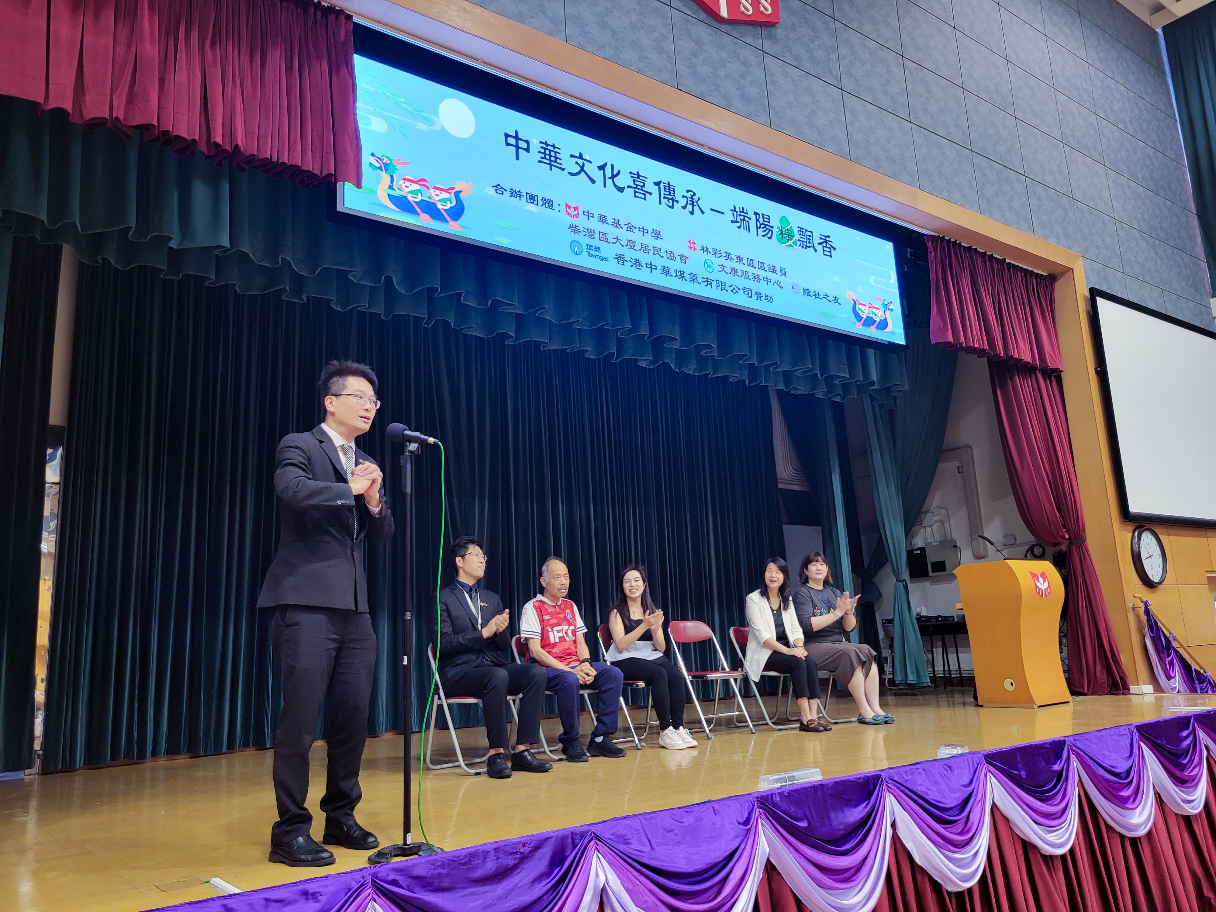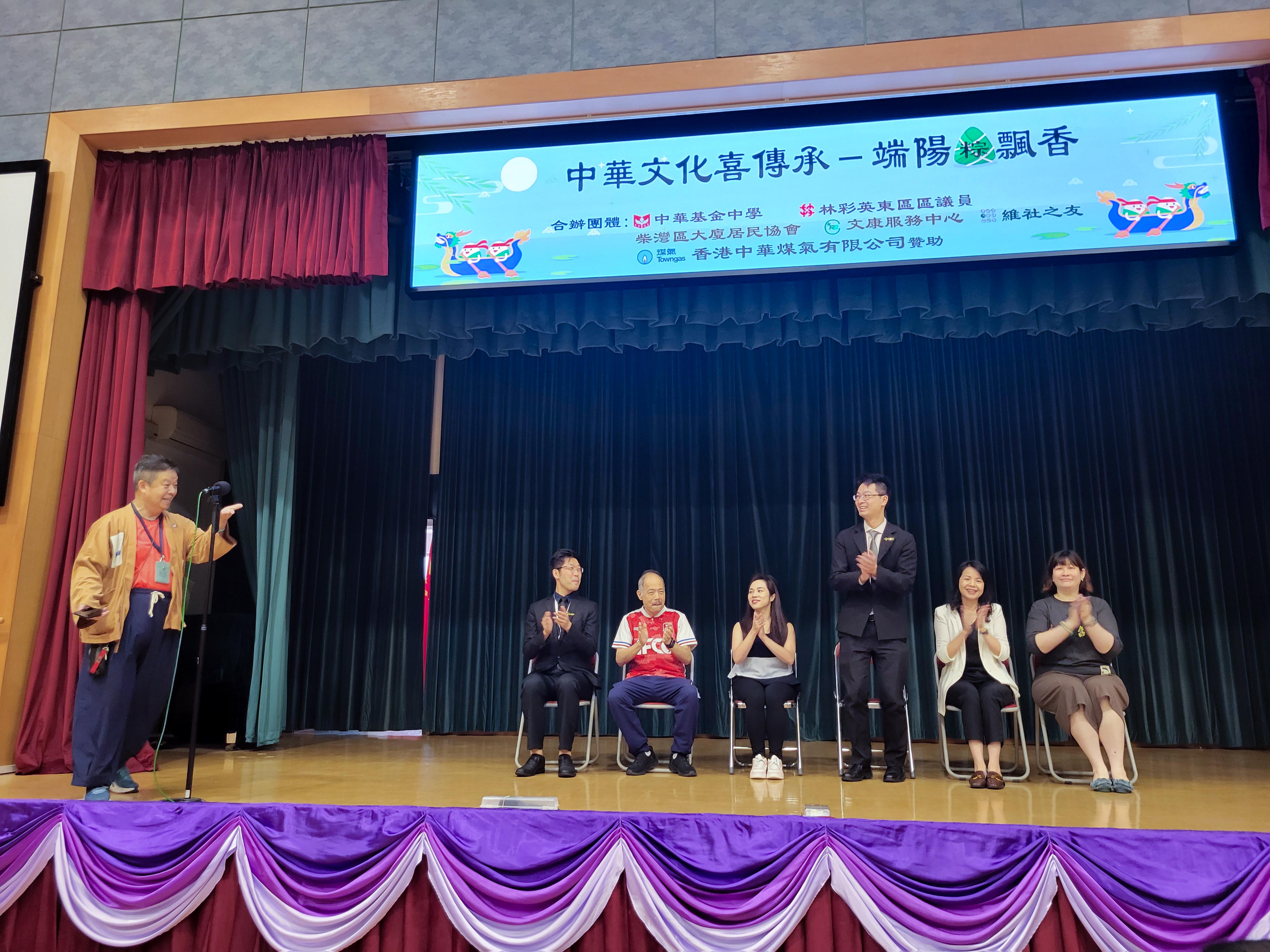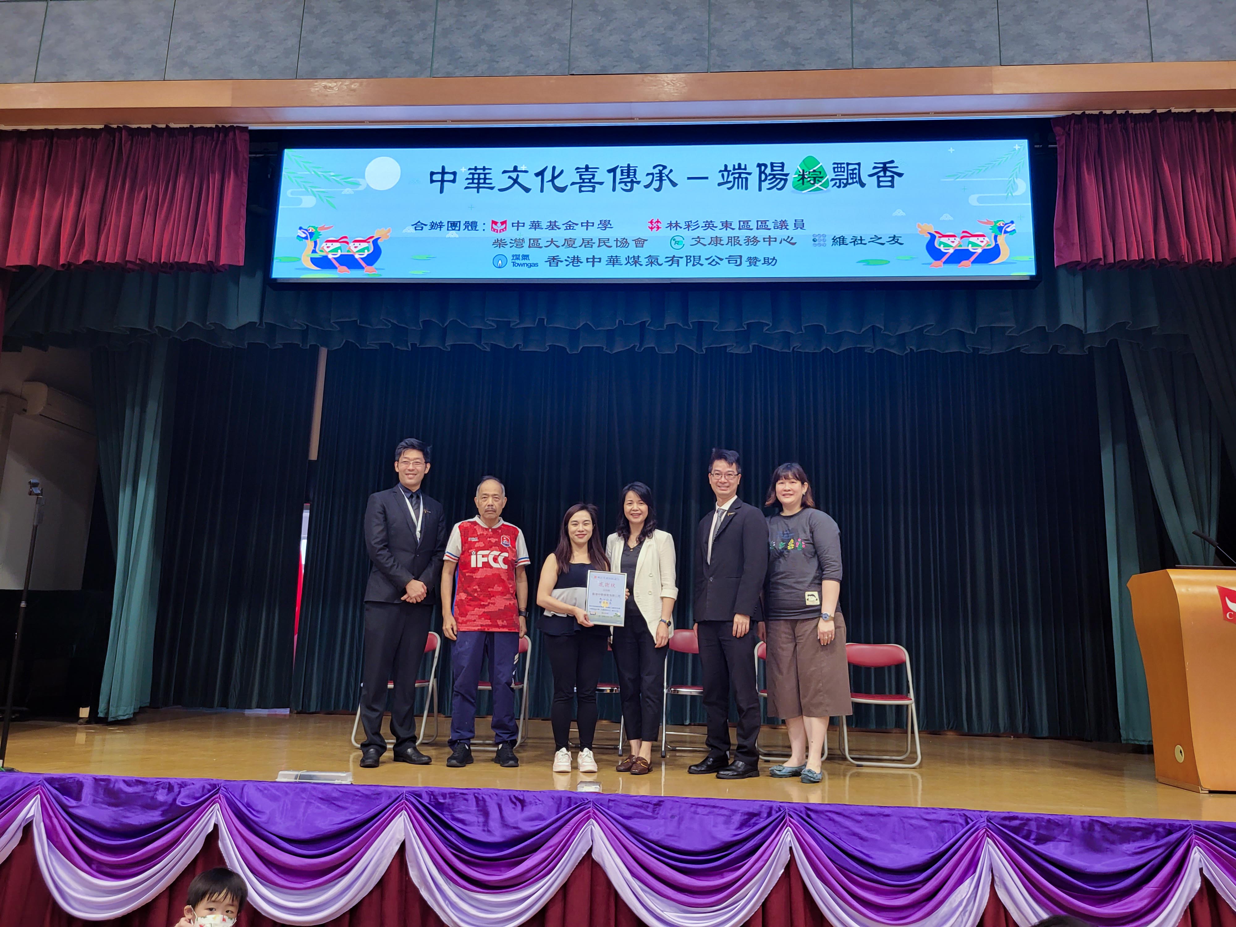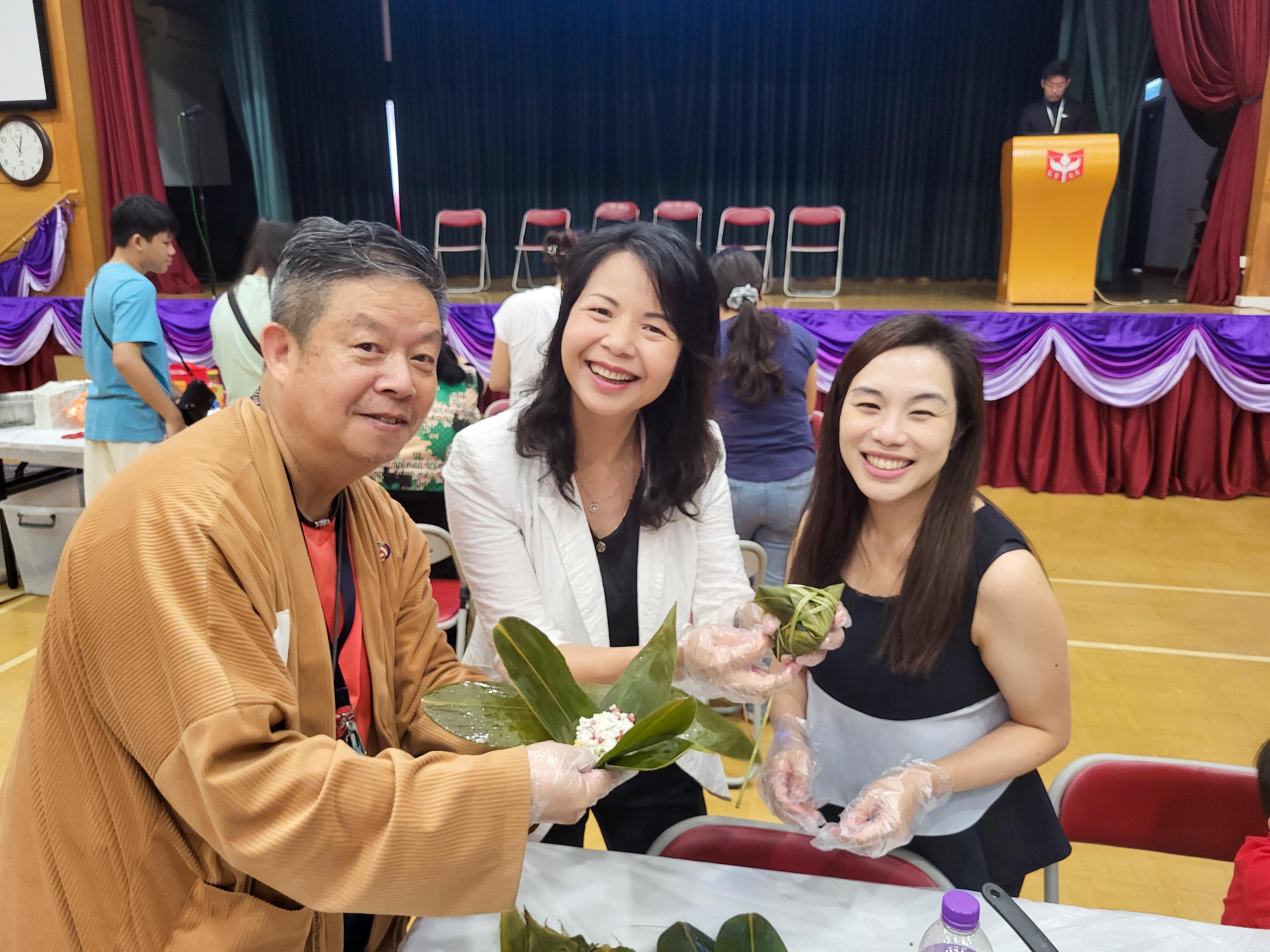 On June 1, 2024, our school collaborated with the Eastern District Council Member Ms Lin Cai-ying, Hong Kong and China Gas Company Limited, Residents Association of Chai Wan, Cultural and Recreational Service Center and Friends of Weishe to jointly organize a community voluntary service with cultural heritage significance, allowing a group of neighbors and friends from Eastern District with youngsters to pass on the skills of making rice dumplings to celebrate the Dragon Boat Festival.