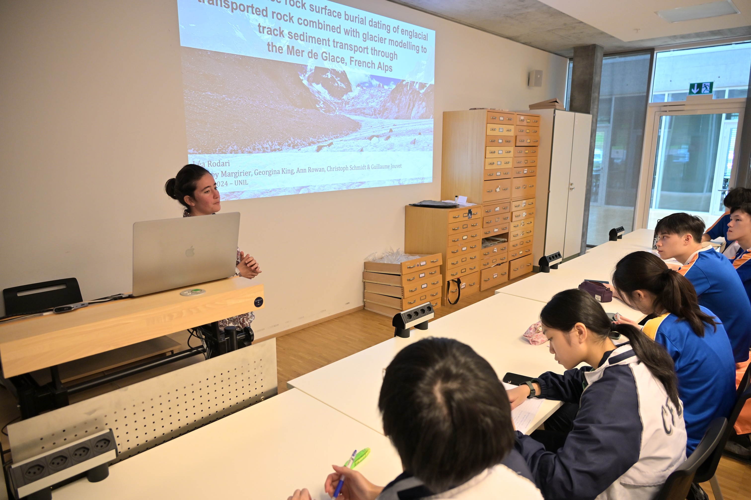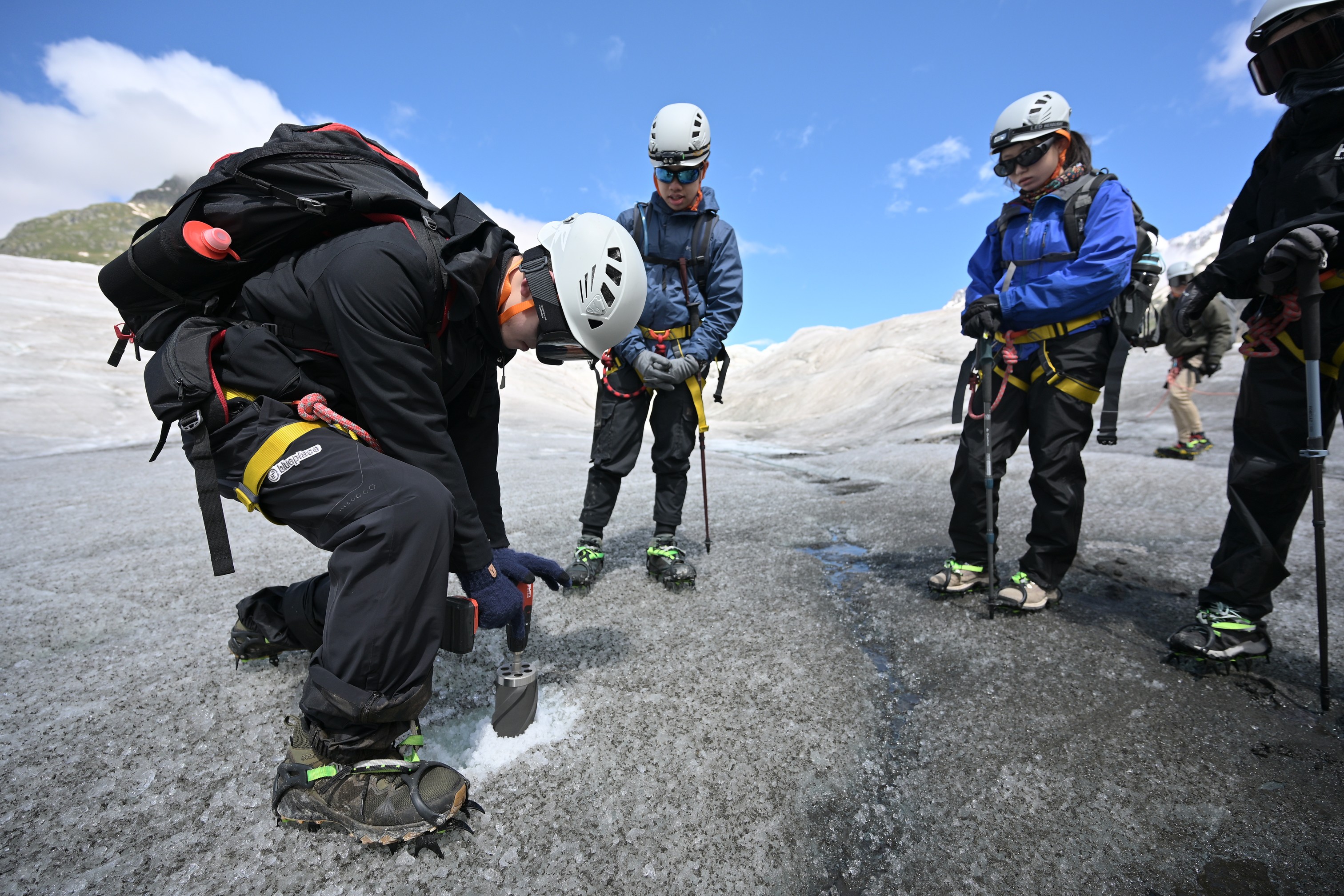 The trip began at the Institute of Earth Surface Dynamics at the University of Lausanne, where students engaged in glacier research. They then explored the Aletsch Glacier area and Saas Fee, participating in glacier studies and outdoor lectures. Students also practiced ice climbing skills, learned to use ice drills to interpret the stories told by ice cores, and observed the local flora and fauna in the Swiss mountains.