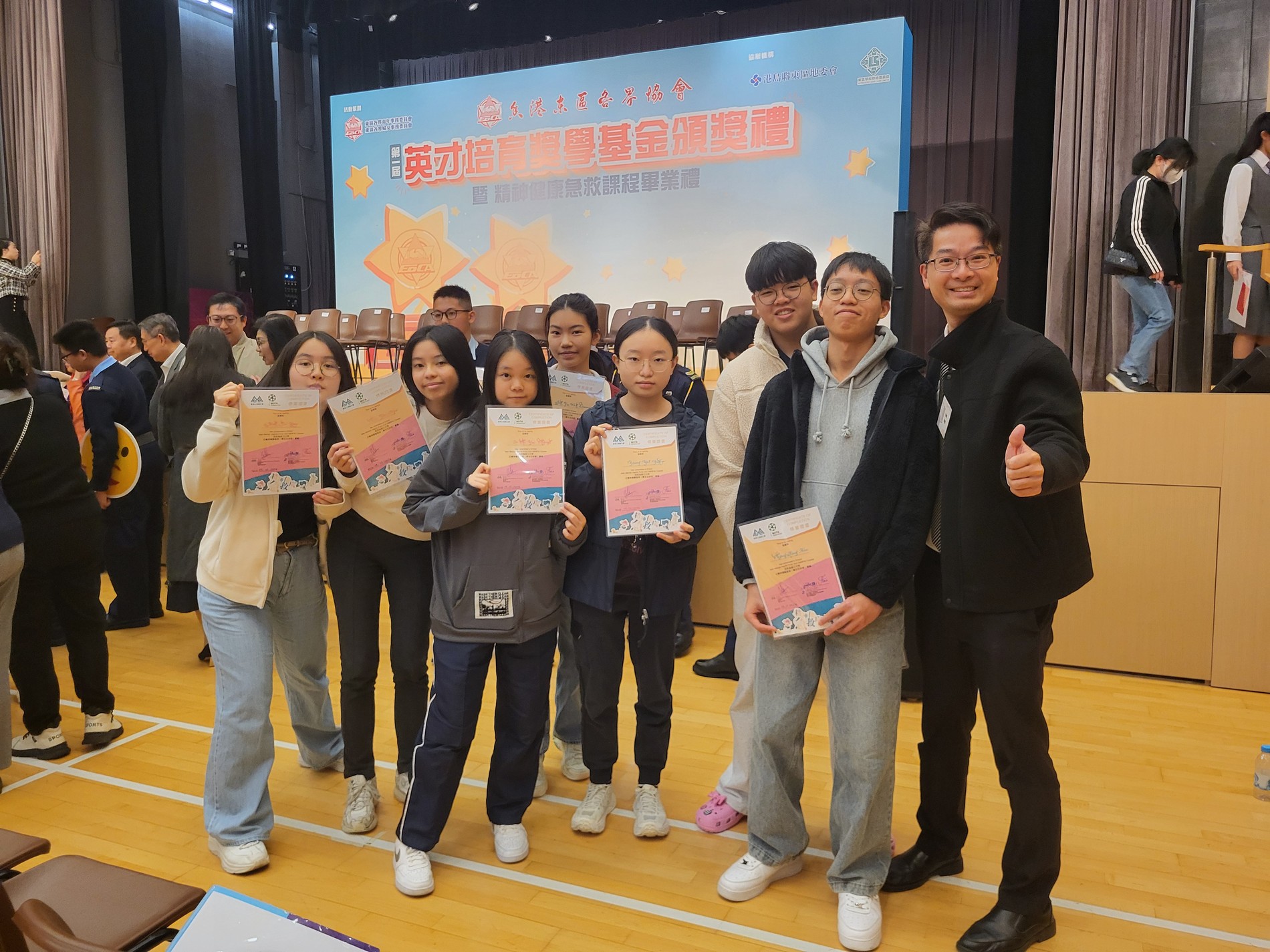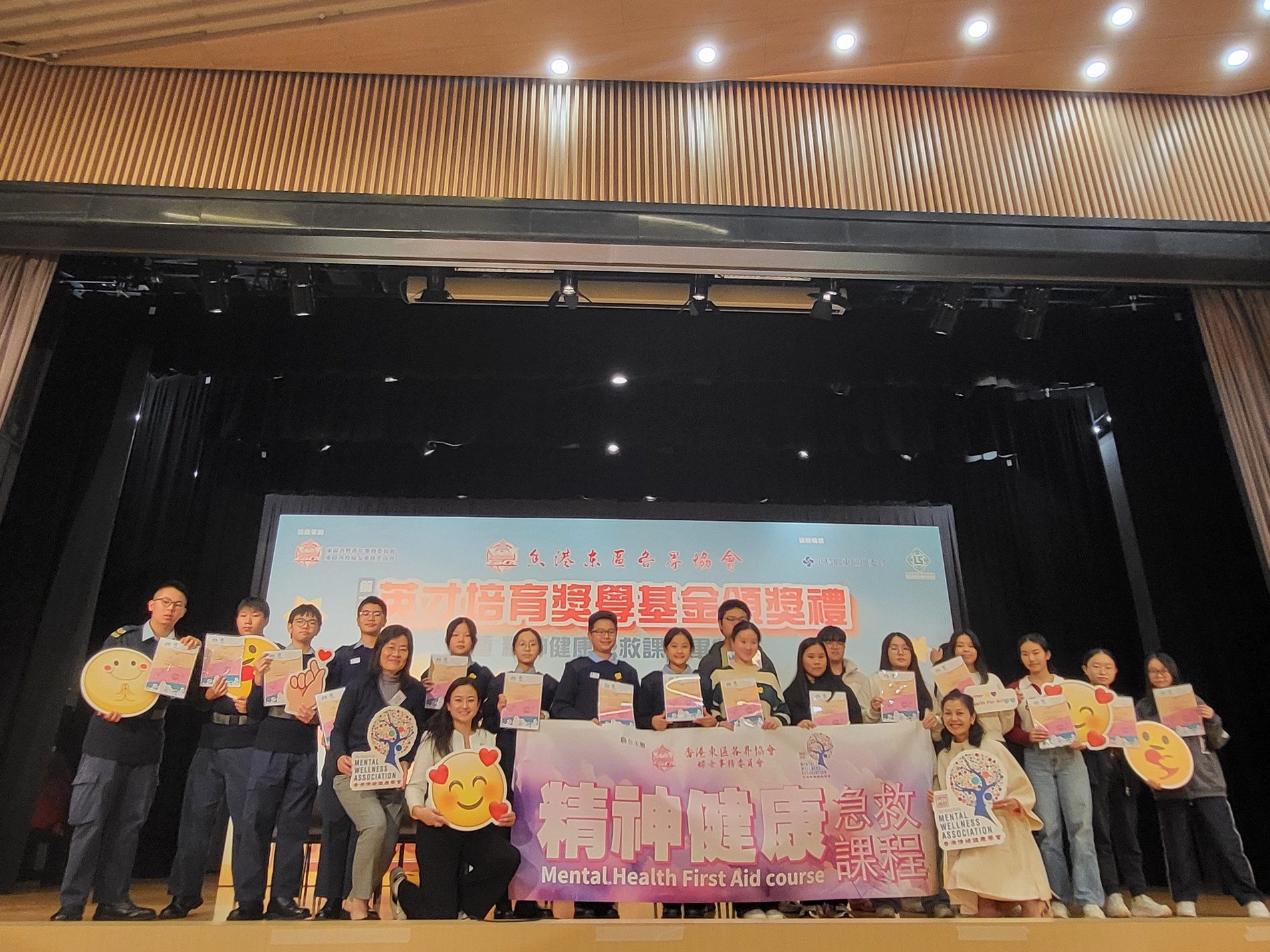 S.5D Yeung Wai Ching had outstanding performance in sports and won the "Talent Cultivation Scholarship" awarded by The Hong Kong Eastern District Community Association. In addition, the "Eastern District Community Association - Women's Commission" and the Hong Kong Mental Wellness Association (HKMWA) organized the "Mental Health First Aid Course (S-MHFA)®" for students free of charge. This is an internationally recognized certificate course. The association hopes to teach secondary school students through the course on adopting positive thinking to overcome difficulties and provide support for peers who may be experiencing mental distress until they receive professional or appropriate help, so that students can become "Mental Wellness Ambassadors" in school. A total of six CFSS students successfully completed the course and were awarded certificates at the graduation ceremony at the North Point Community Hall on December 15 (Sunday). Congratulations to the students for winning the award and completing the course!