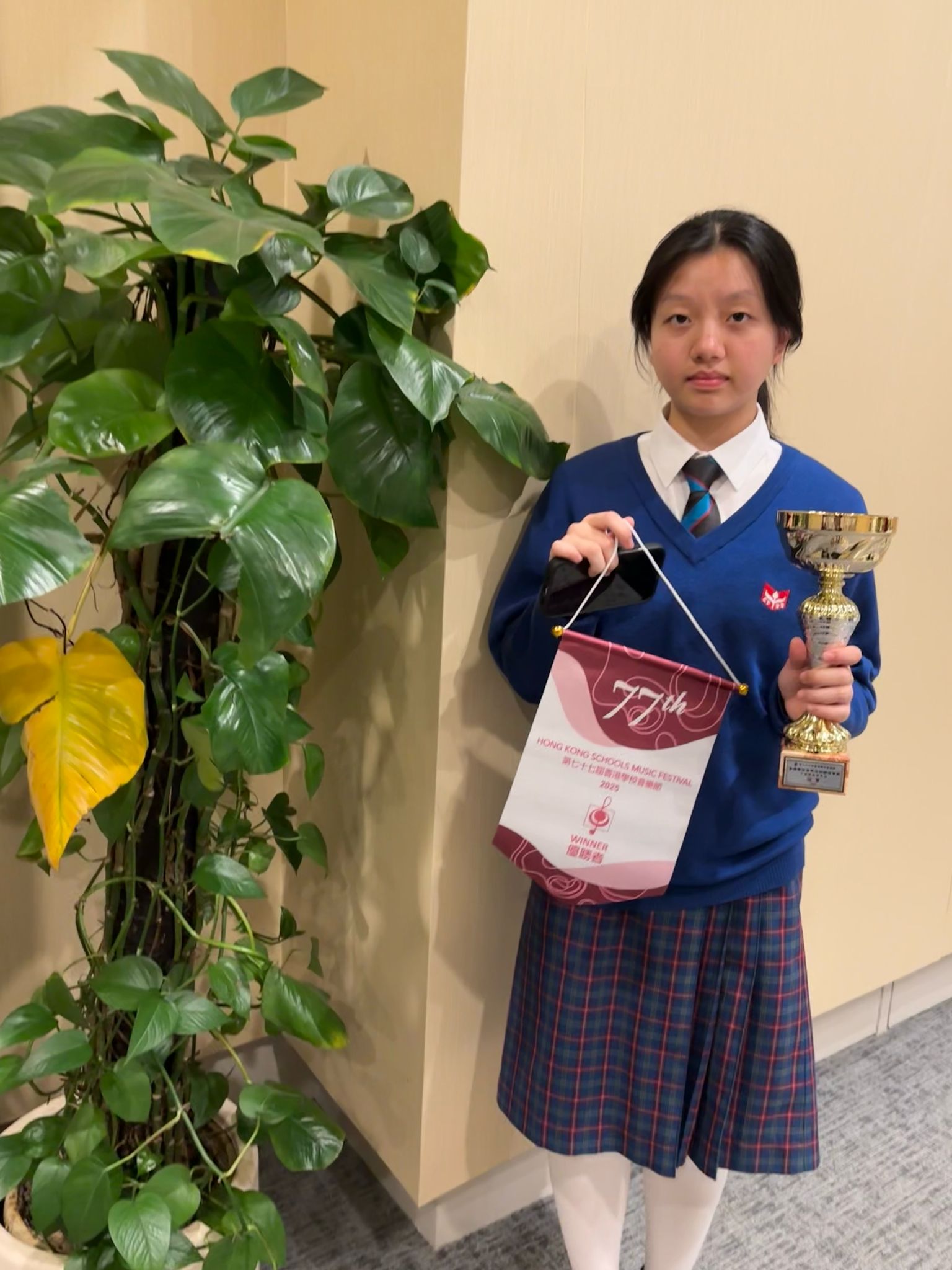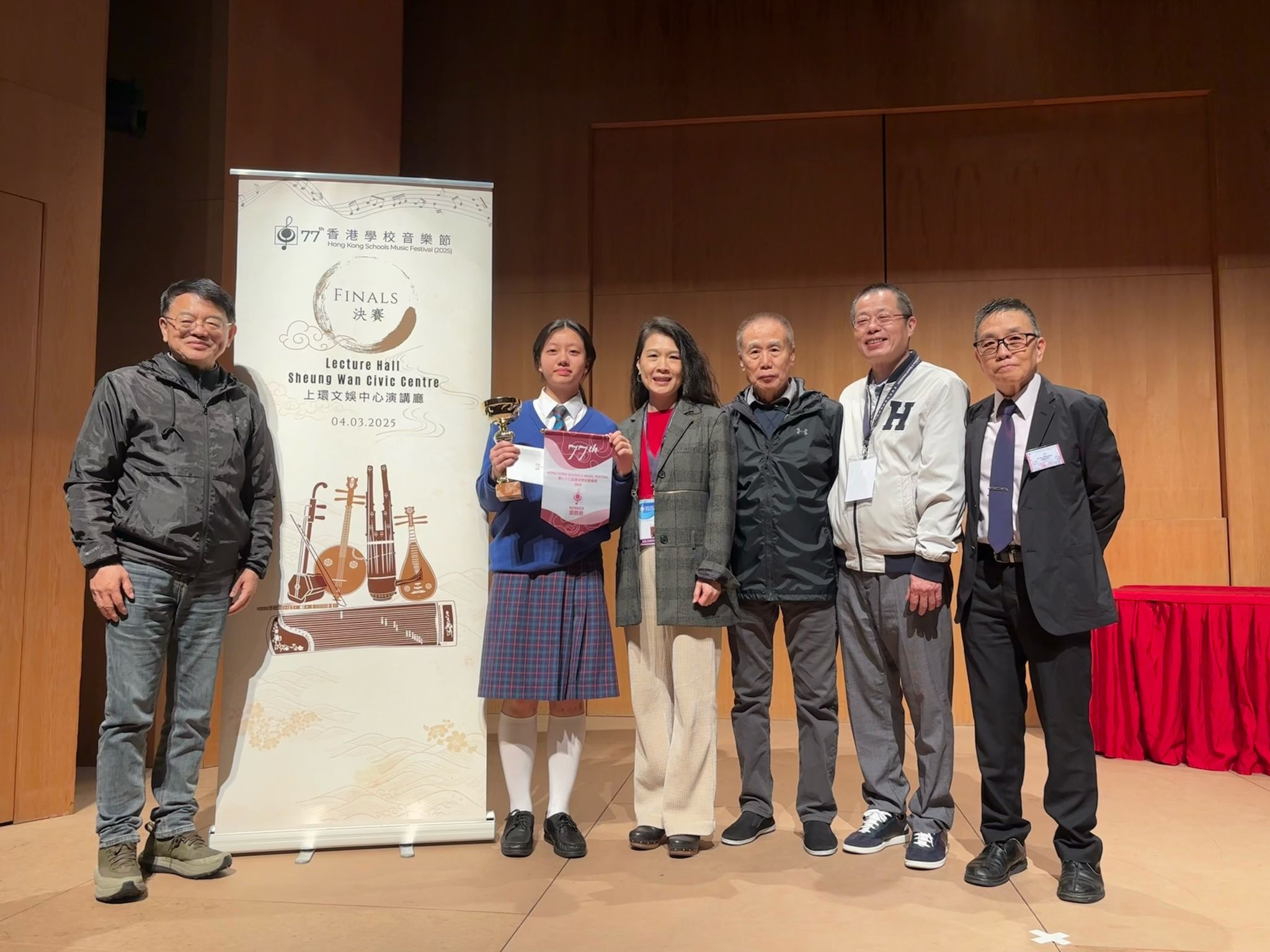 We are thrilled to announce that Yang Tsoi Yan from Class 4C has won the Chinese Instruments Scholarship Final champion at the 77th Hong Kong Schools Music Festival (2025). Her stunning guzheng performance captivated judges and audience members alike.