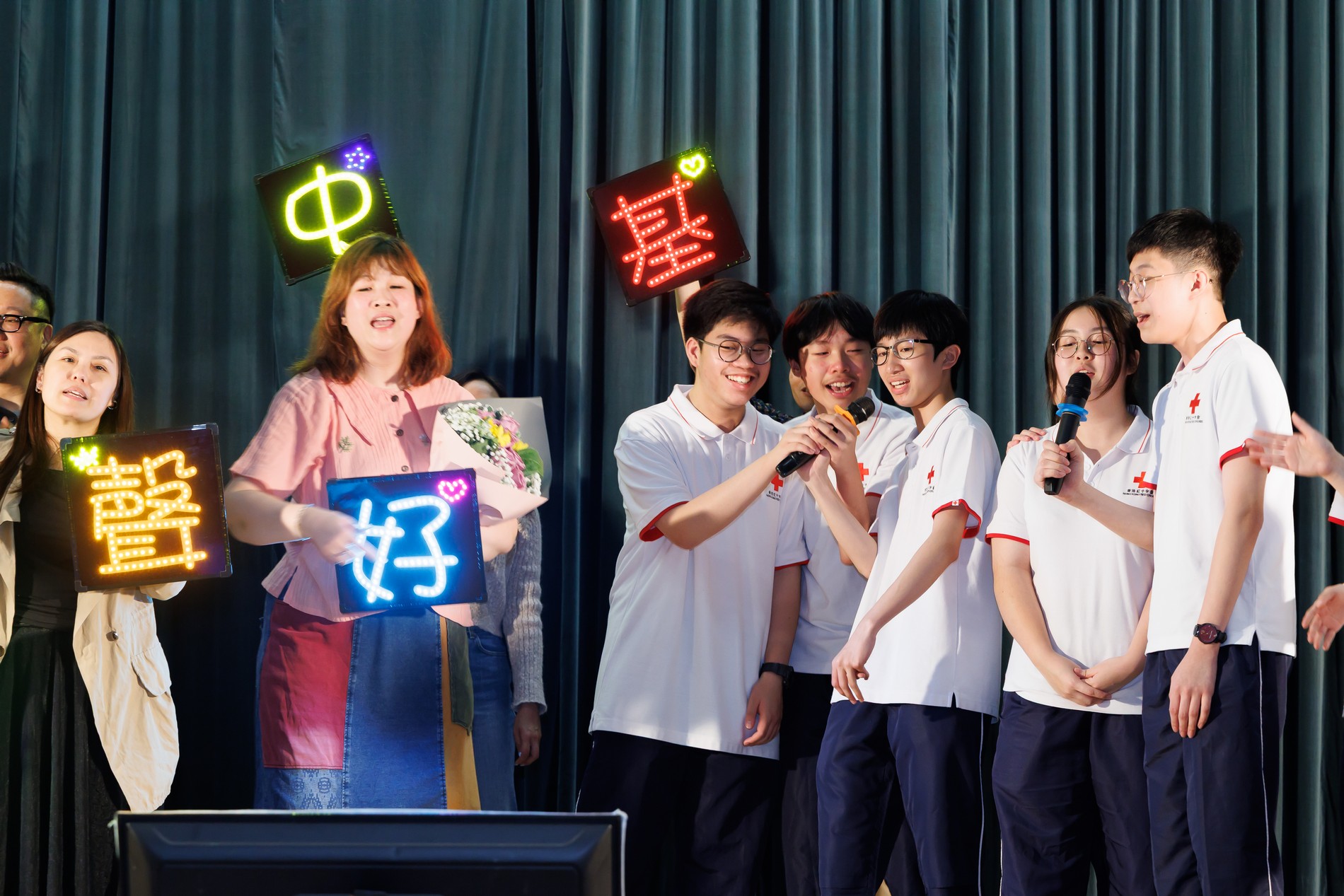 We highly commend the CFSS Red Cross Unit 233 for their dedication in preparing refreshments. Additionally, the CFSS Parent-Teacher Association (PTA) and Mr. Ho, School Principal participated in performances, with former PTA committee members presenting flowers and a roast pig-shaped cake, bringing the concert to an exciting climax!