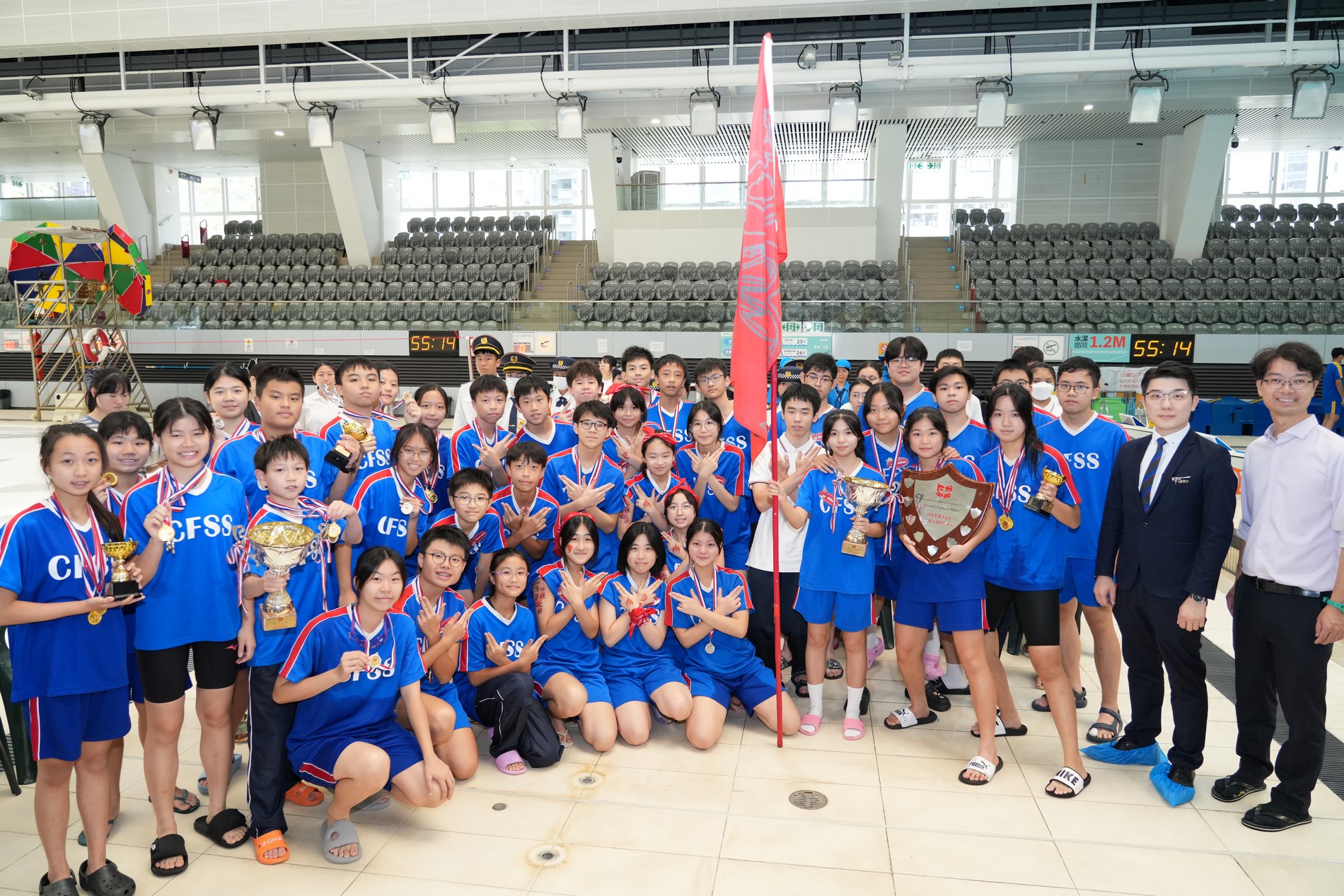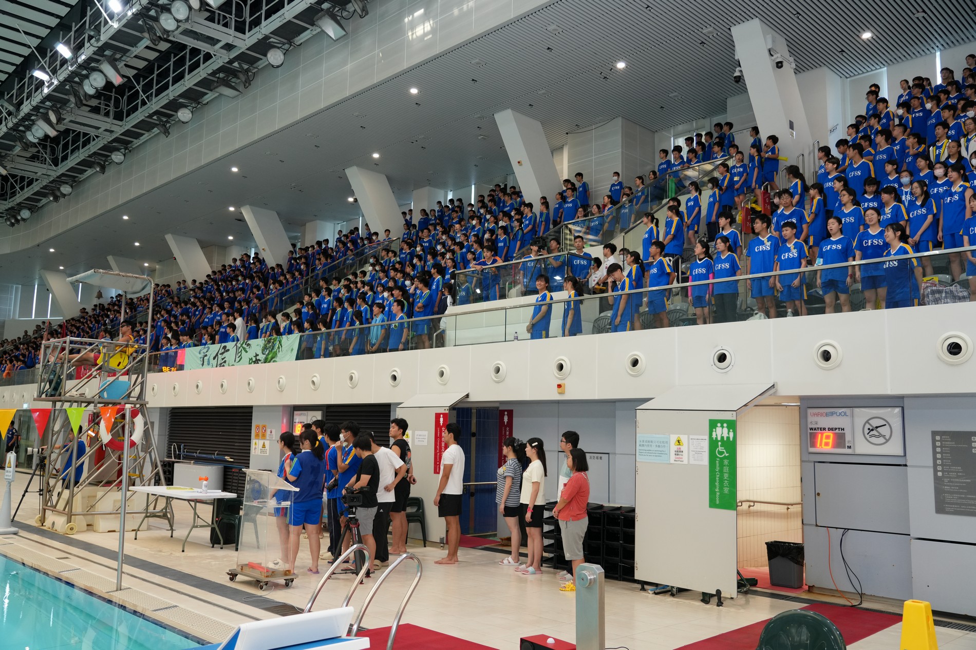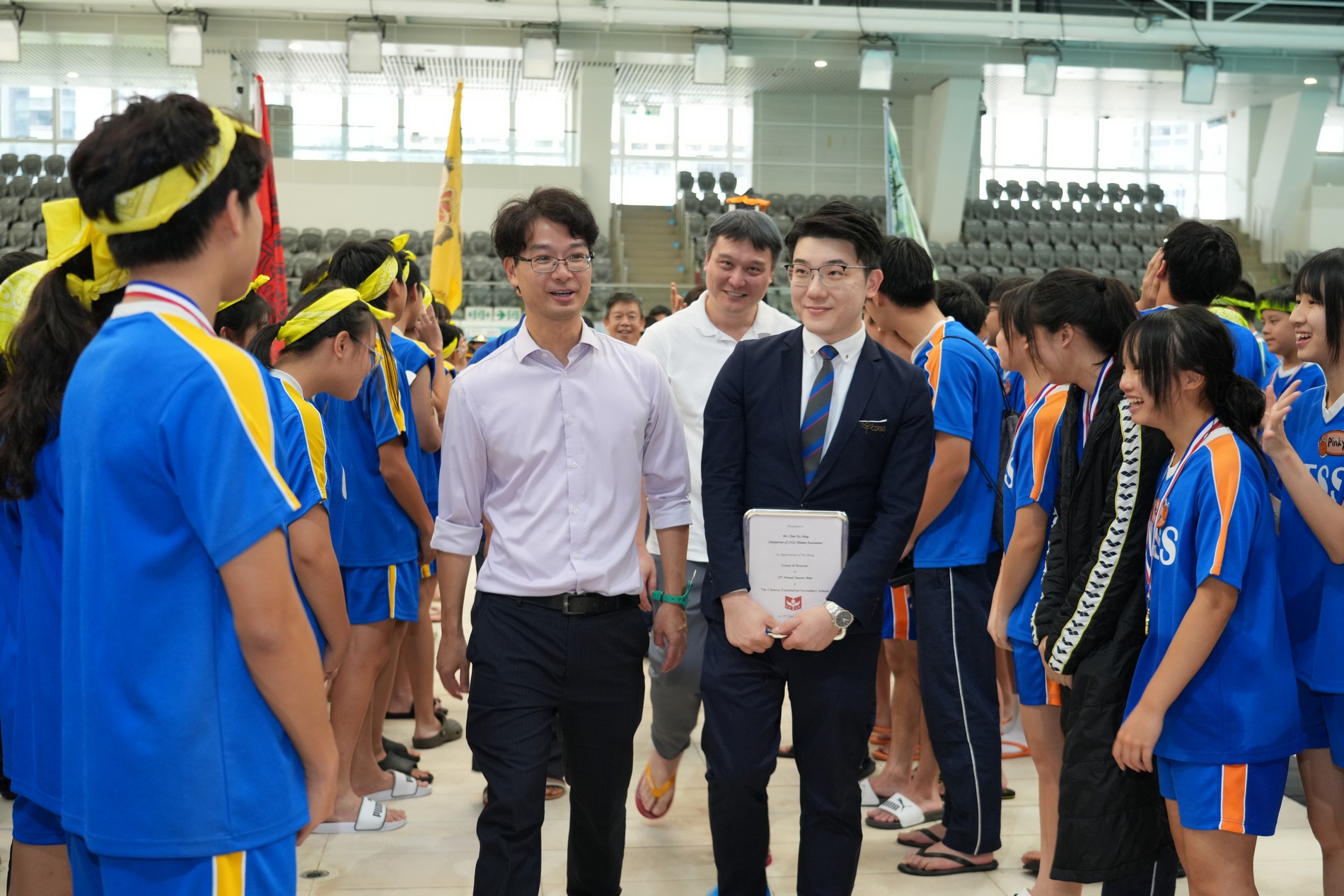 Subsequently, Principal Mr. Ho Tik Shun and Dr. Chan, together with the four House Captains, presided over the prize presentation, awarding winners of individual events and the overall champion house. The 25th Annual Aquatic Meet concluded on a solemn yet joyous note with the entire assembly singing the school song led by the Principal, the Guest of Honour, and the House Captains.