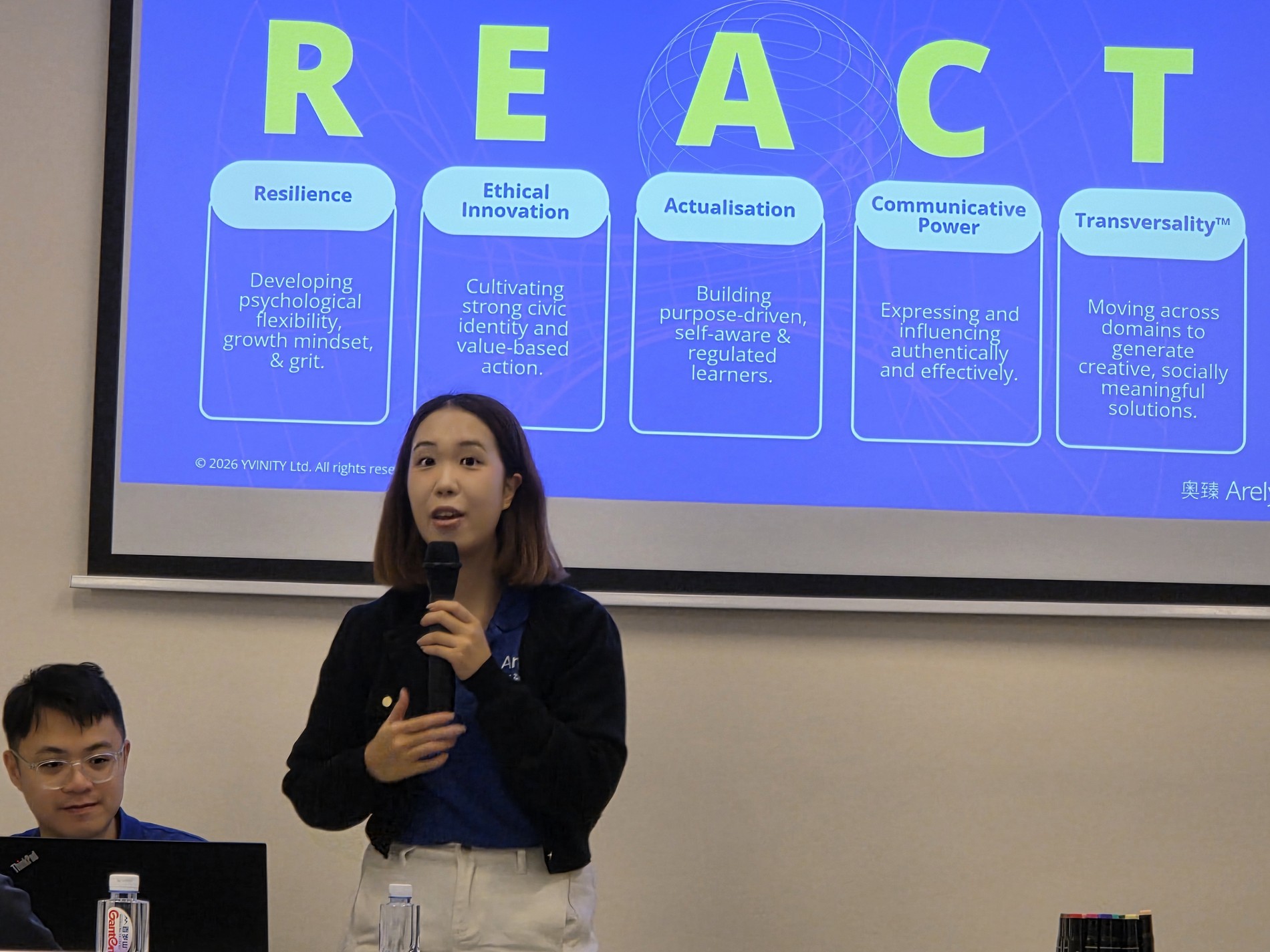 The "Arelyx Olympian Leadership Training Day Camp" was held on 23 January 2026 (Fri), brining the school's Discipline Prefect Team an inspirational journey of leadership growth. The event is honoured to invite Ms. Yvette Kong, the Hong Kong Olympic swimming representative and the winner of the《JESSICA》 Most Successful Women Awards 2019, to guide students through the experience of the "REACT Leadership Training" and to further enhance their leadership qualities from five dimensions: