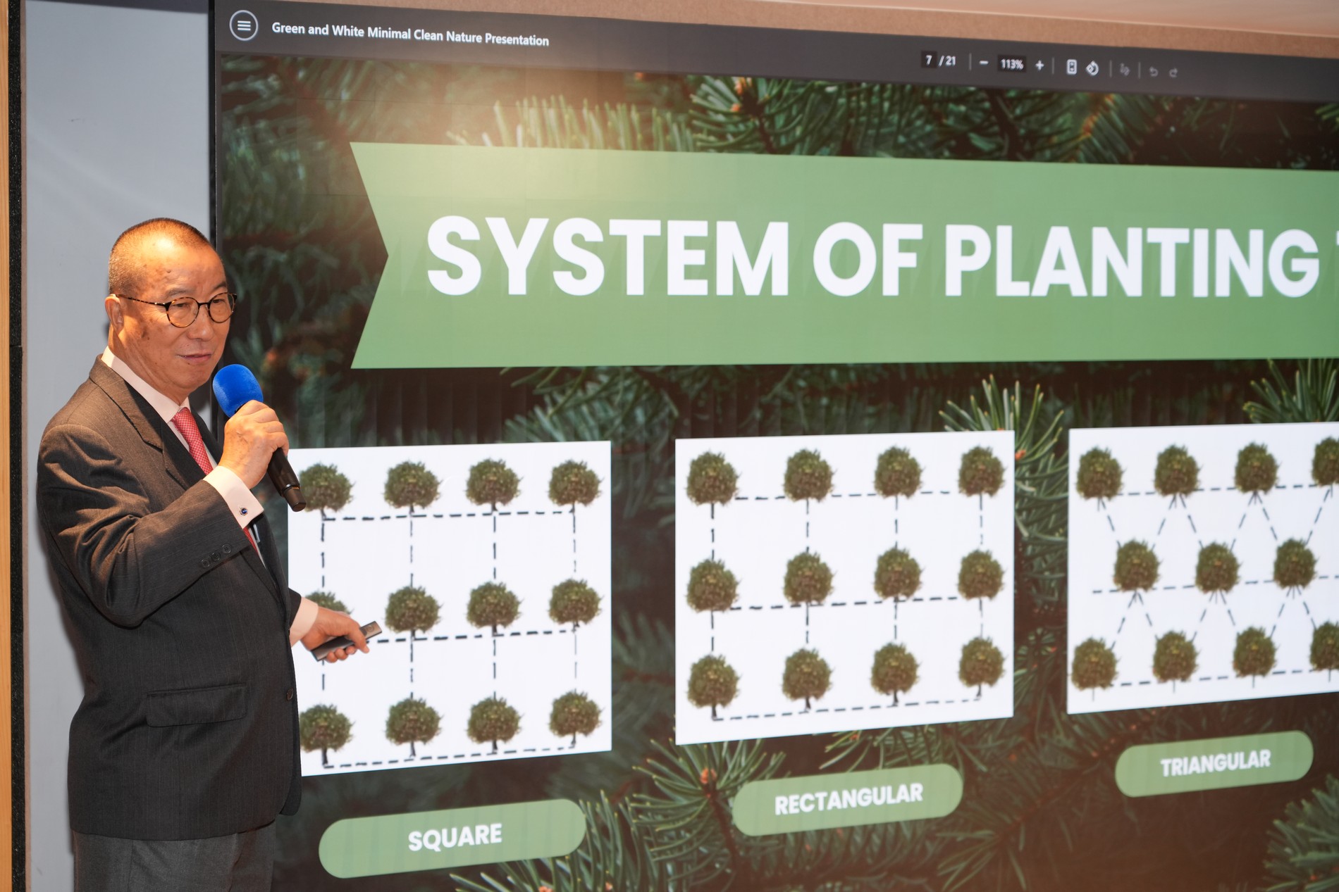 Mr. Chang began by outlining essential strategies for cultivating seedlings and the importance of planting trees at optimal density and in well-thought-out patterns. His insights illuminated the critical processes involved in ensuring healthy growth and sustainability in forestry practices.