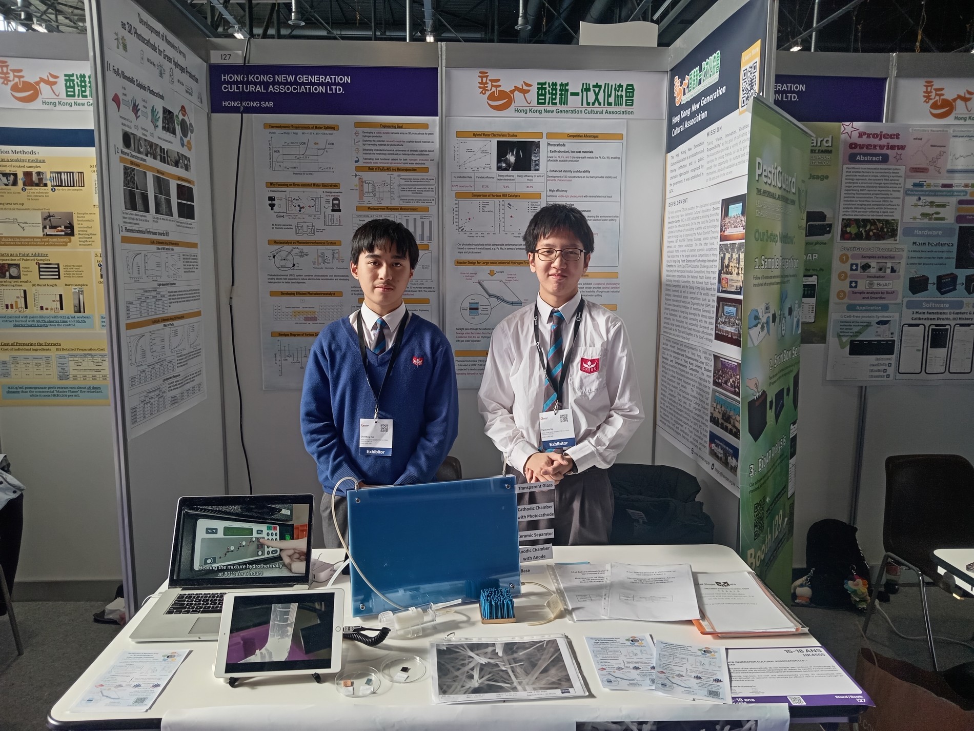 On 8th November 2025, Hugo Hui and Yat Ng from 5A participated in the International Science Competition Hong Kong Regional Selection, organized by the Hong Kong New Generation Cultural Association. They were selected as members of the Education Bureau of the Hong Kong SAR Representative Team (Secondary School Students). In March 2026, they took part in the 51st International Exhibition of Inventions of Geneva held in Geneva, Switzerland, and were awarded a Silver Medal for their project titled Development of Nanowire Array as 3D Photocathode for Green Hydrogen Production.