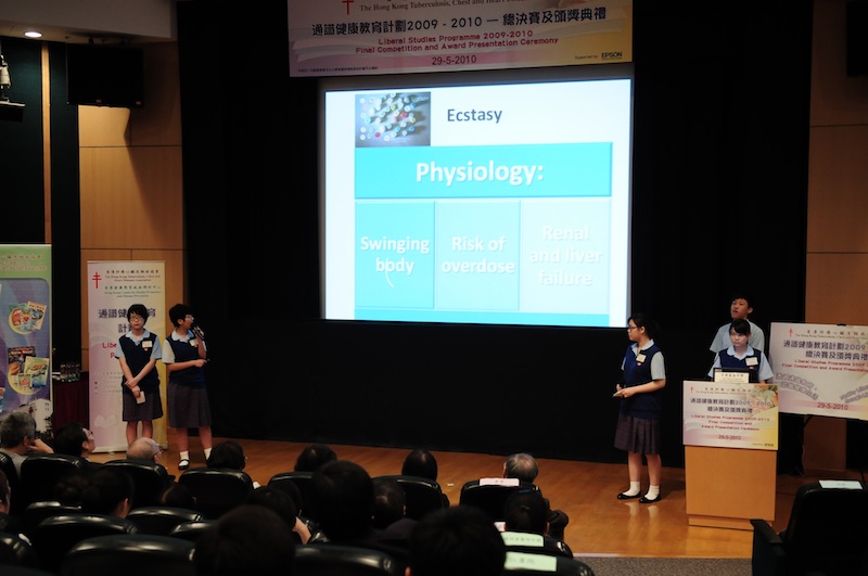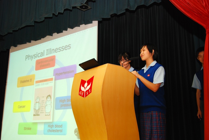 Two groups of our S.3A students have joined the Liberal Studies Competition entitled “Lifestyle and Health”, organized by the Hong Kong Tuberculosis Chest and Heart Disease Association. Students have to work on an investigative project related to “lifestyle and health” for more than half a year. The topics of the two groups are “Drug abuse problem of teenagers in Hong Kong” and “How diet and exercise affect the trend of overweight students among CFSS students”. They interviewed professionals and even recovered drug abuser and conducted surveys and statistical analysis in order to draw conclusive remarks for their projects.
