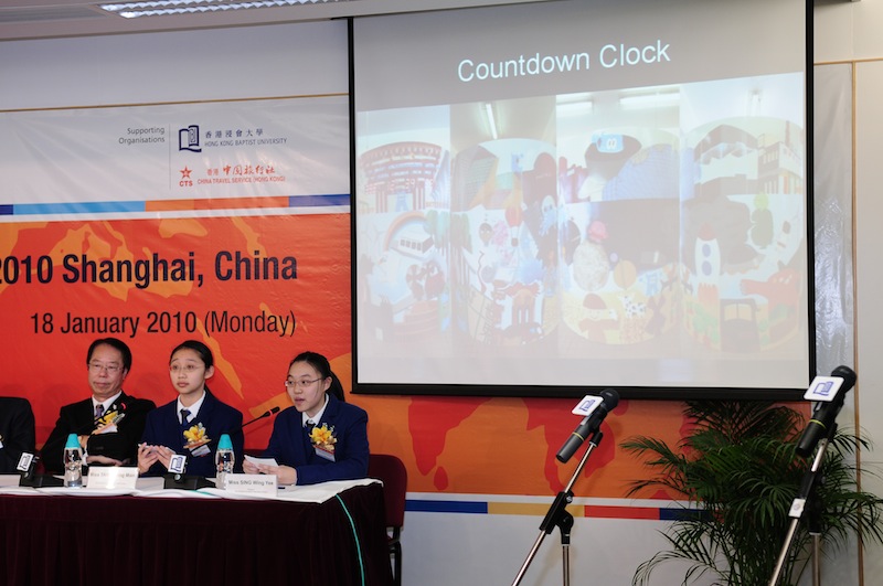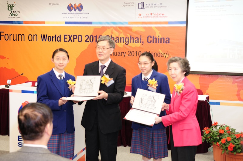 Our school was invited to join the “Forum on World EXPO 2010 Shanghai, China” organised by World Trade Centers Association Hong Kong on 18th January 2010 at Hong Kong Baptist University. Two of our students, Sing Wing Yee (5E) and Tang Wing Man (5E), talked about how the message of Expo is related to teenagers, and shared how CFSS promoted Shanghai Expo to our students.