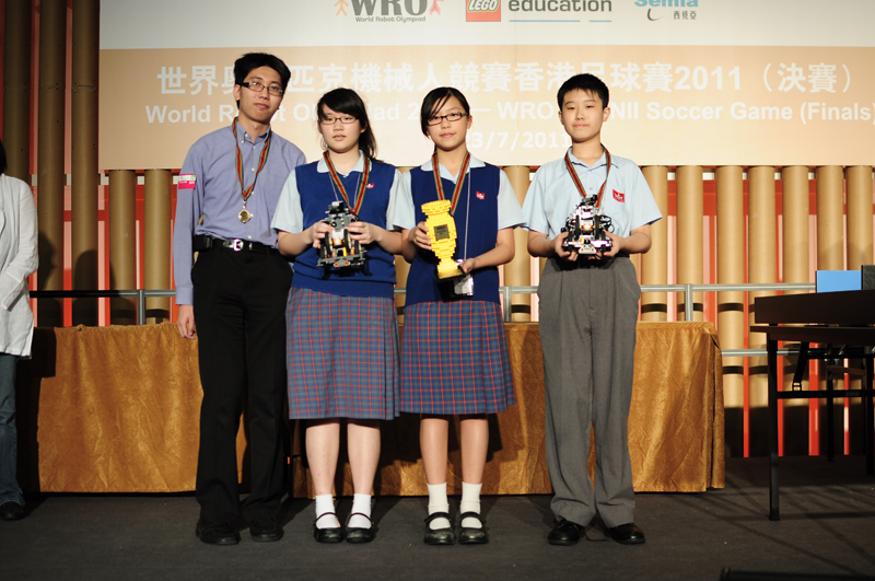 Our school team, consisting of Chan Ching Ki (S.2A), Lau Sin Fai (S.2A), Tu Ya Chi Jennifer (S.2A) and Ng Chi Hin (S.2E), was ranked first in this competition. They will represent Hong Kong in the WRO GEN II International Soccer Game 2011 to be organized in Abu Dhabi, United Arab Emirates. We wish them the best of luck in this large-scale competition.